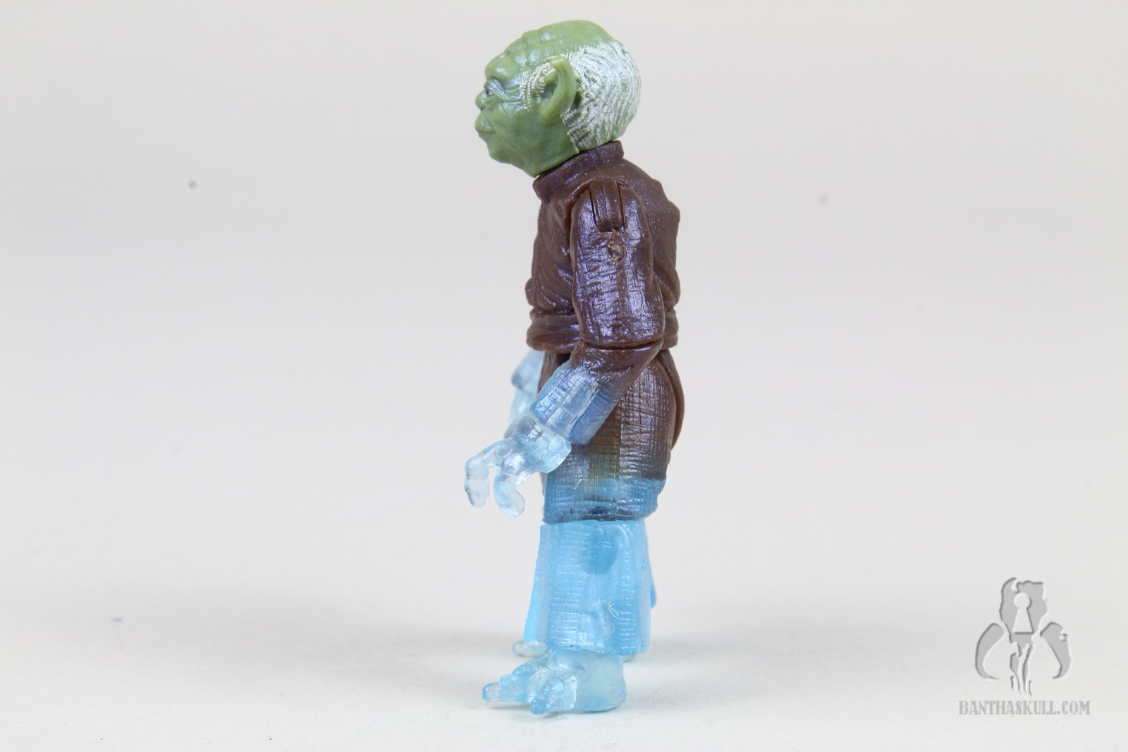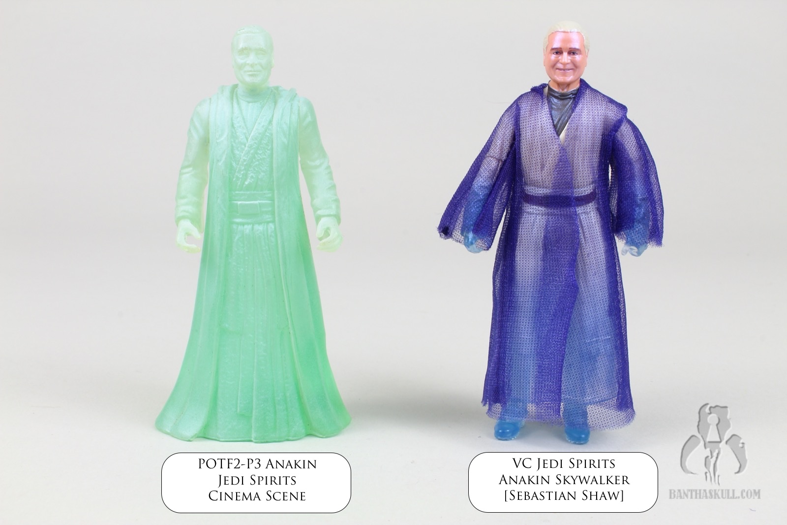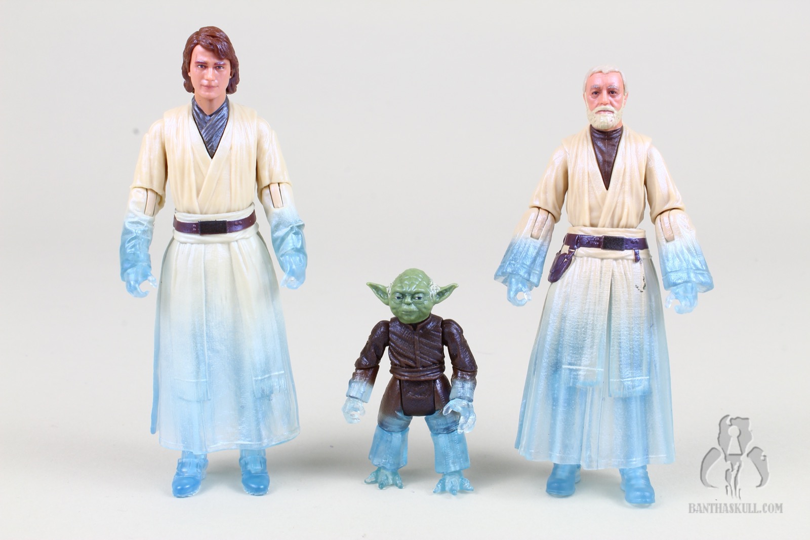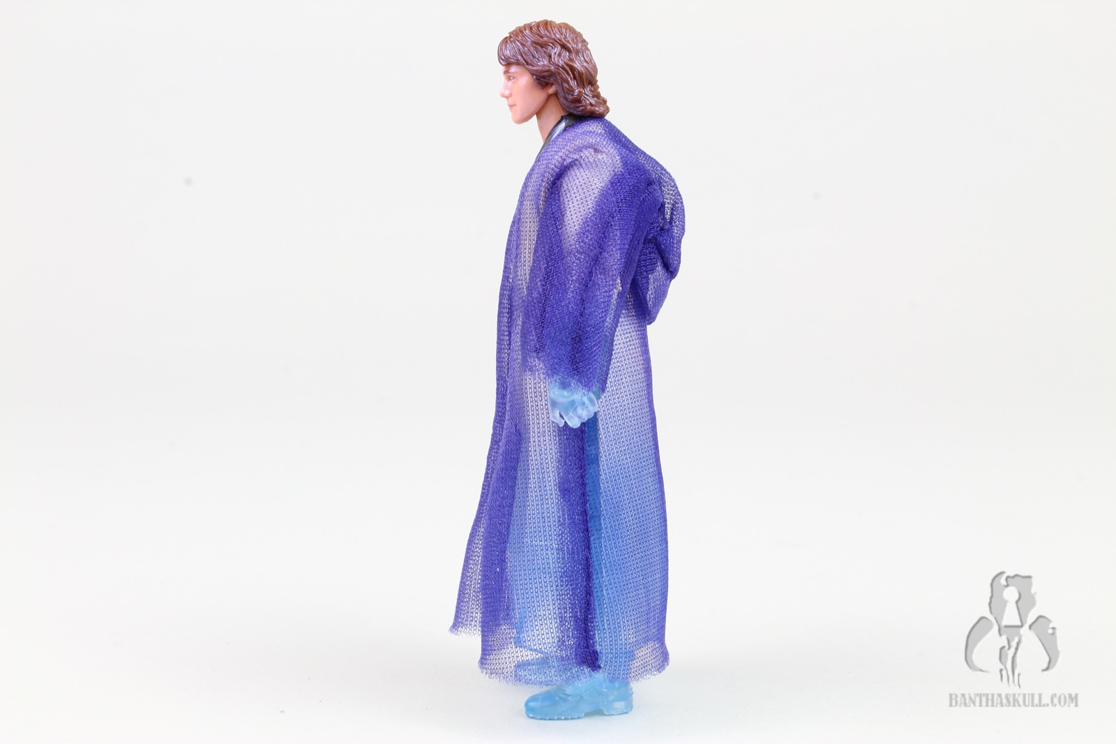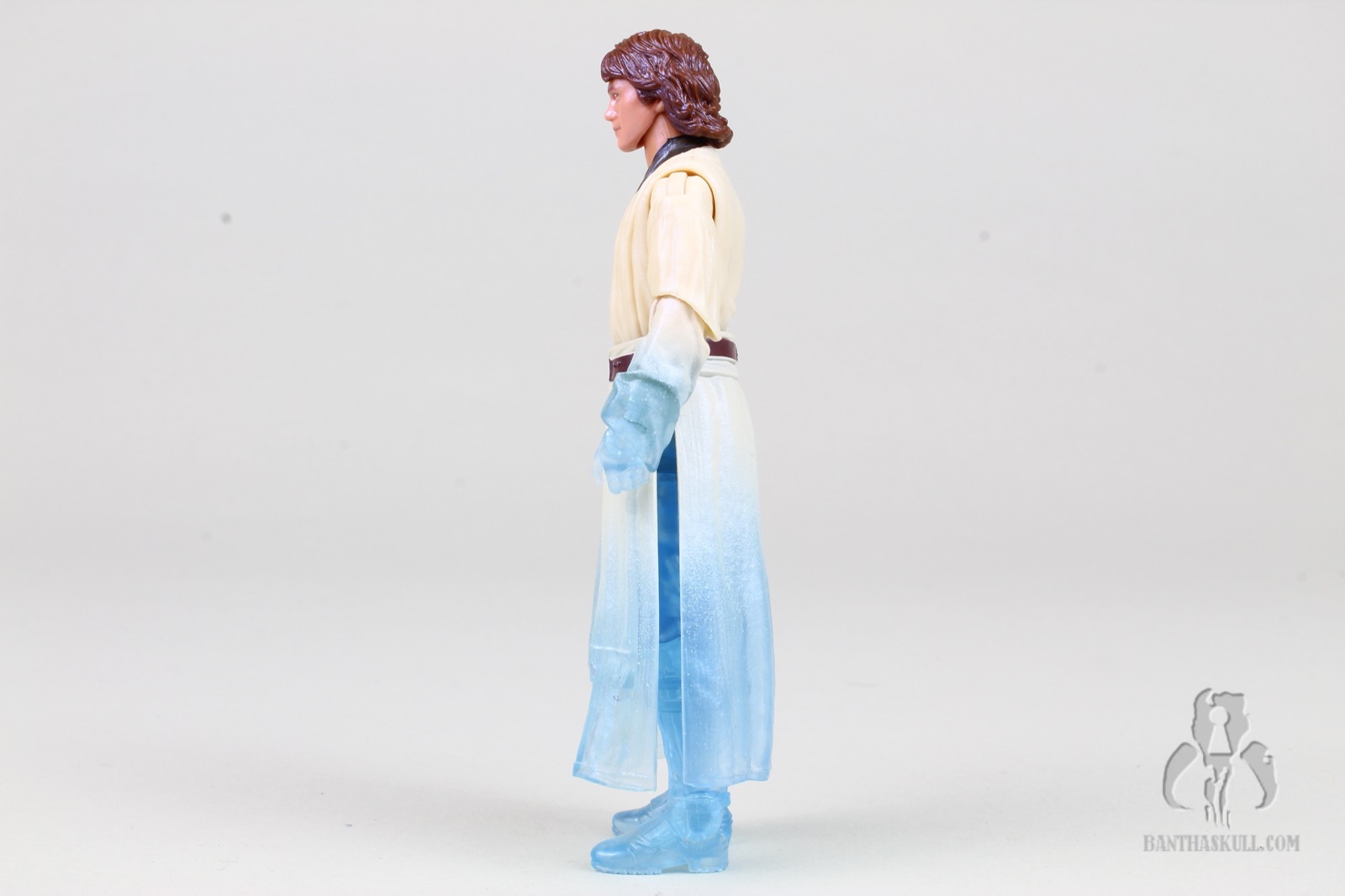 Anakin’s spirit has a convoluted history, of course. The first release was from 1998, as part of the POTF2 (Phase 3) Jedi Spirits Cinema Scene. The 3 figures were essentially statues cast in a translucent plastic and had no paint apps to speak of. My set has a “dusting” of white paint on the figures. I was never sure if this was intentional, or if I got a bad set. But otherwise, the the mini-statues are just solid, and the limited articulation (heads and arms) seem to be glued in place and I never wanted to test out potential movement for fear of breakage.