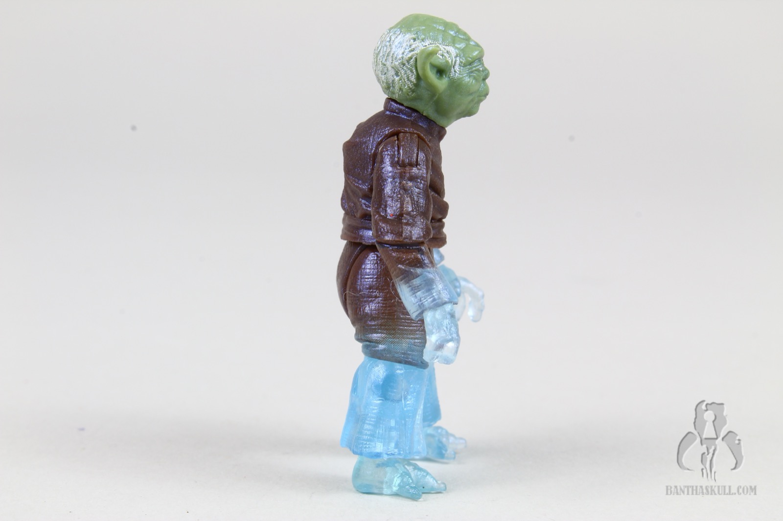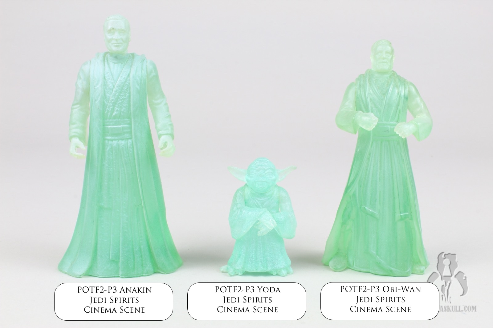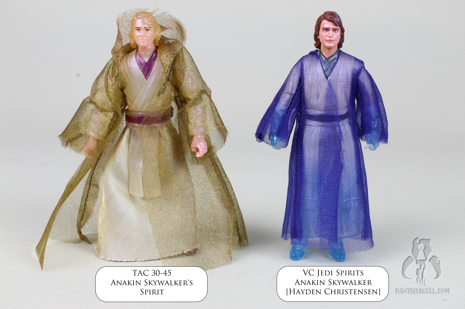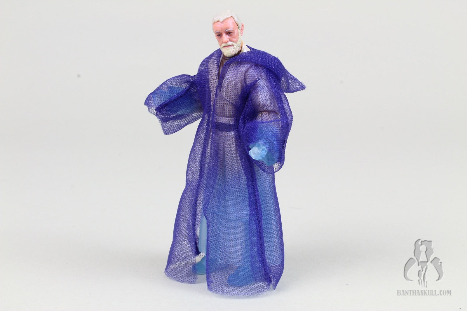 Anakin’s spirit has a convoluted history, of course. The first release was from 1998, as part of the POTF2 (Phase 3) Jedi Spirits Cinema Scene. The 3 figures were essentially statues cast in a translucent plastic and had no paint apps to speak of. My set has a “dusting” of white paint on the figures. I was never sure if this was intentional, or if I got a bad set. But otherwise, the the mini-statues are just solid, and the limited articulation (heads and arms) seem to be glued in place and I never wanted to test out potential movement for fear of breakage.