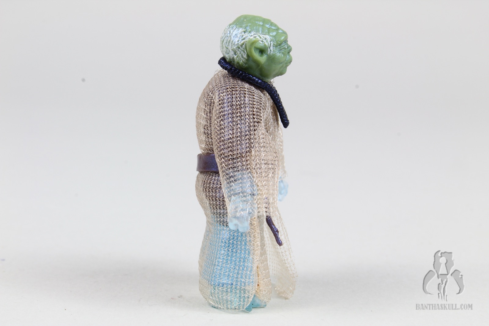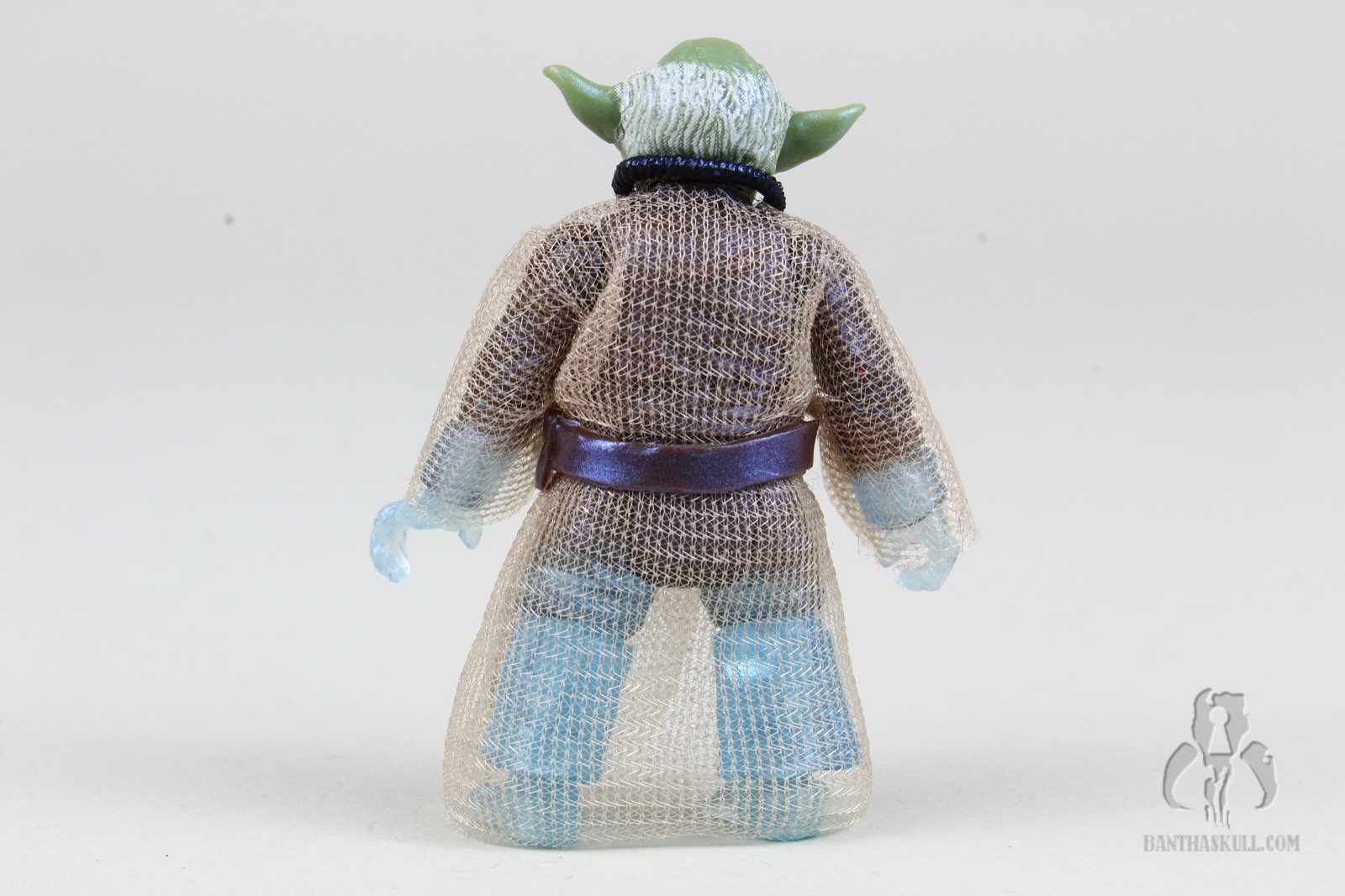 Yoda’s other accessories are somewhat questionable. He comes with a mesh robe, just like Anakin. But unlike blue, this one is golden - just like the TAC Anakin. It’s an odd choice, because it means it doesn’t match the other figures in the set. I’m not sure why Hasbro went this route, perhaps because they thought it looked better when contrasted with the darker undergarments sported by Yoda. The removable belt and necklace are much darker in coloring than the cane, but are still coated in a shimmering blue.