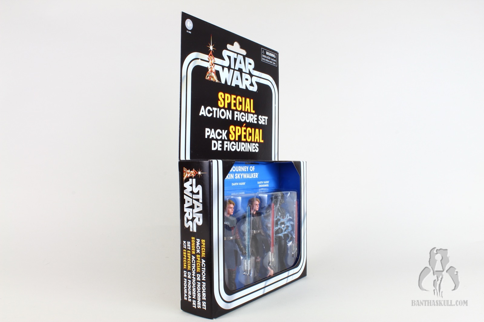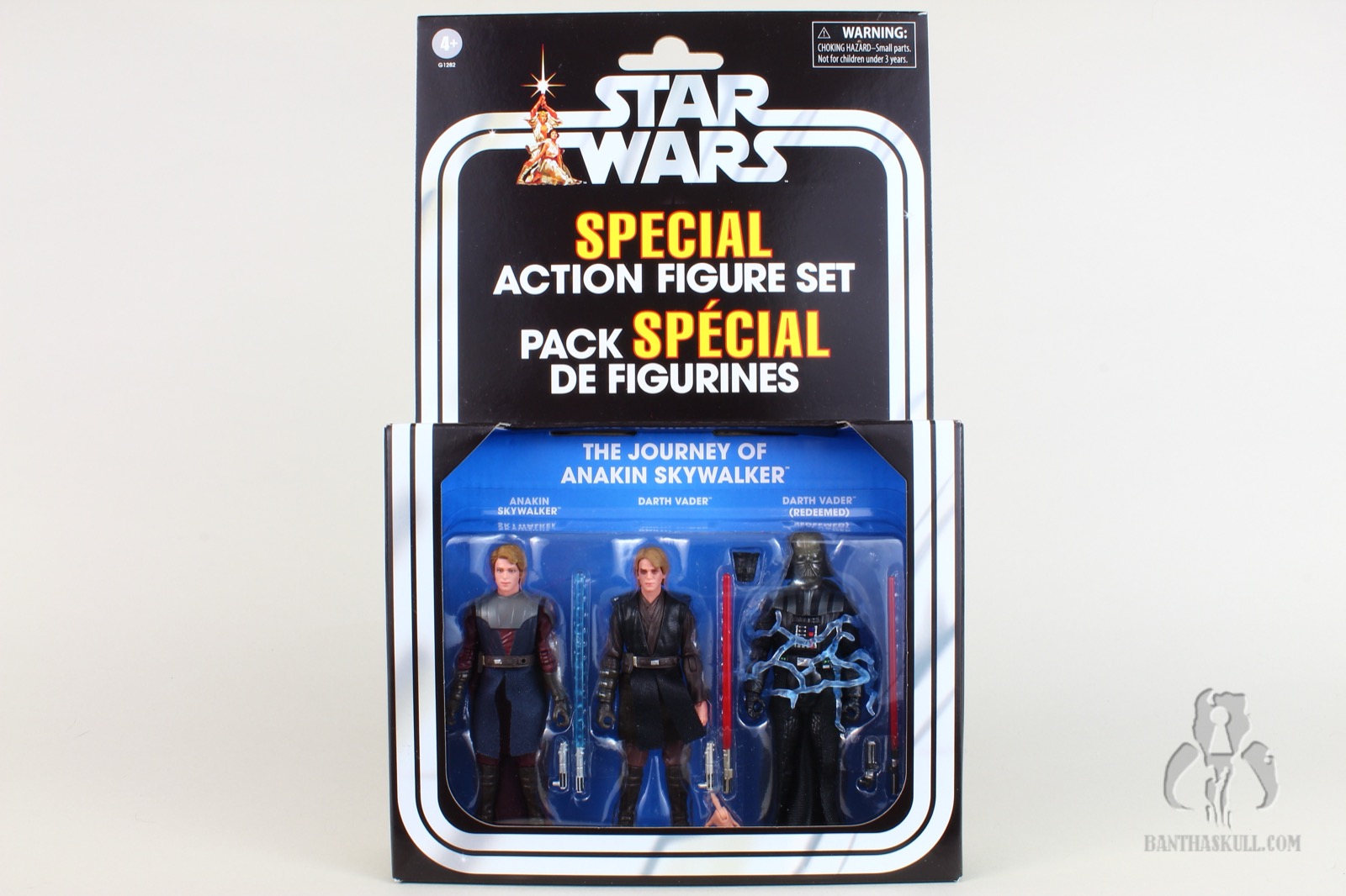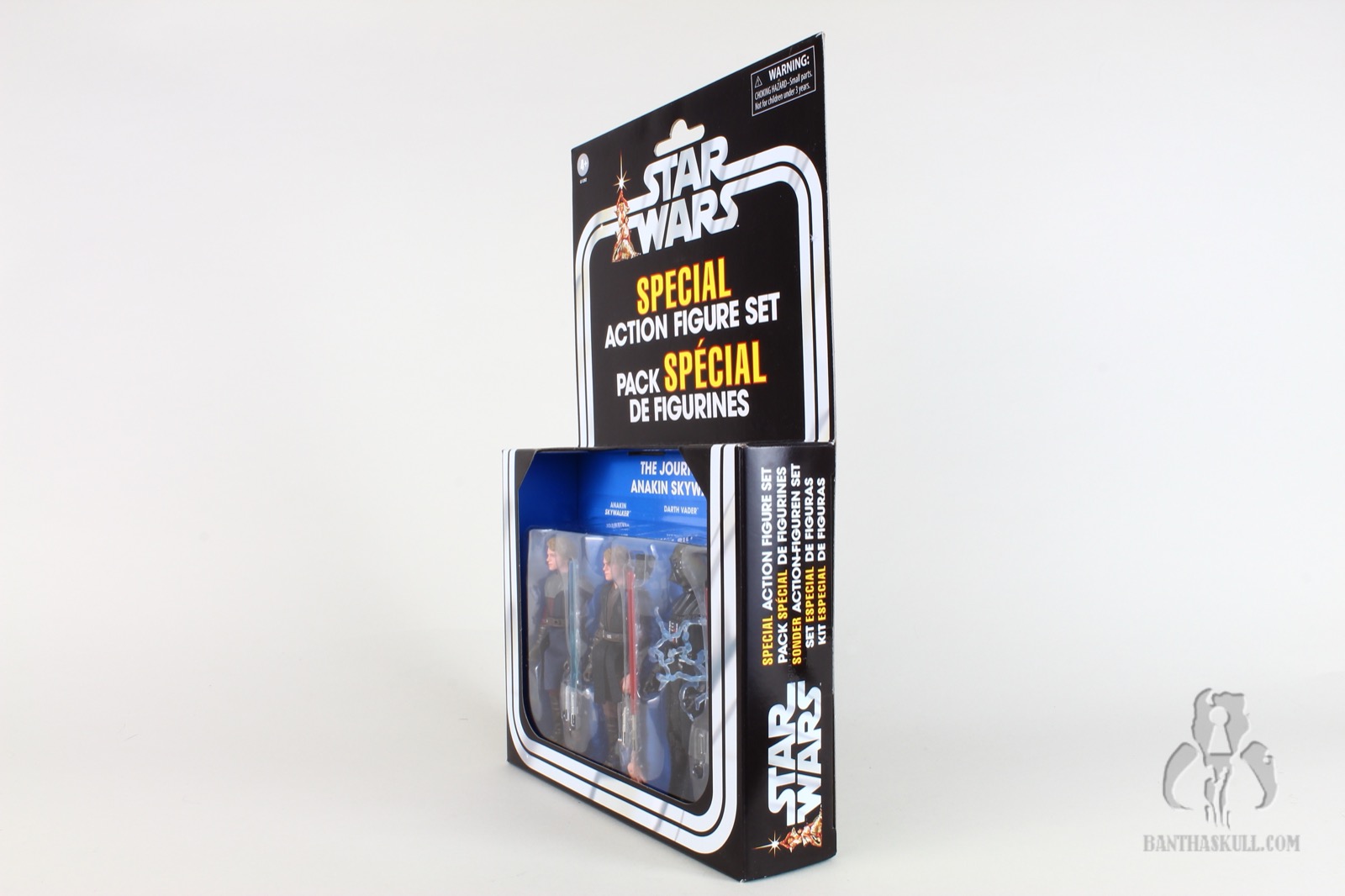 As for the product of the day, we’ve got The Journey of Anakin Skywalker. This is in the “Special Action Figure Set” Kenner-style format, as opposed to the “box in a box” multipack that contains individually carded figures. I’m not entirely sure how Hasbro decides which format is more appropriate for a particular set of figures. I had assumed that they typically plan on re-releasing these figures (which typically, although not always, are a convention exclusive) as individually carded figures in the main line. But even that isn’t always the case (at least not yet). And then of course there was the Shriek-Hawk 4-pack, and there would seem to be almost zero chance any of those would ever be single-carded. But who knows. Certainly not me. I’m not sure Hasbro even knows.