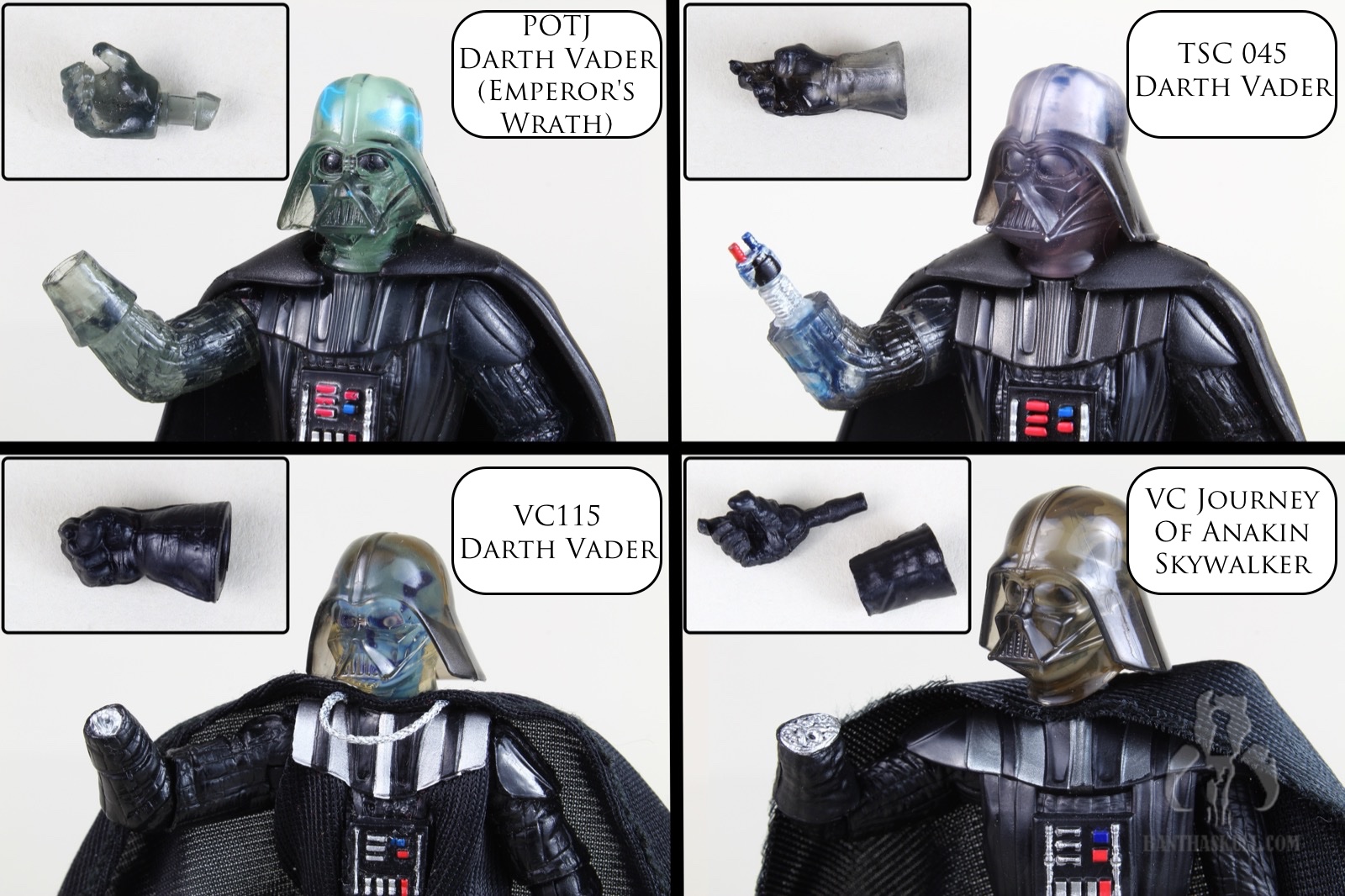It maintains the lightsaber and hilt accessories, but also includes two Sith lightning effects. Interestingly, both are just recast from an existing figure, VC115. This time, the plastic is very light a flexible, but also a lighter shade of blue. The original effects were a more stiff plastic, and a deeper blue. I like this version better.