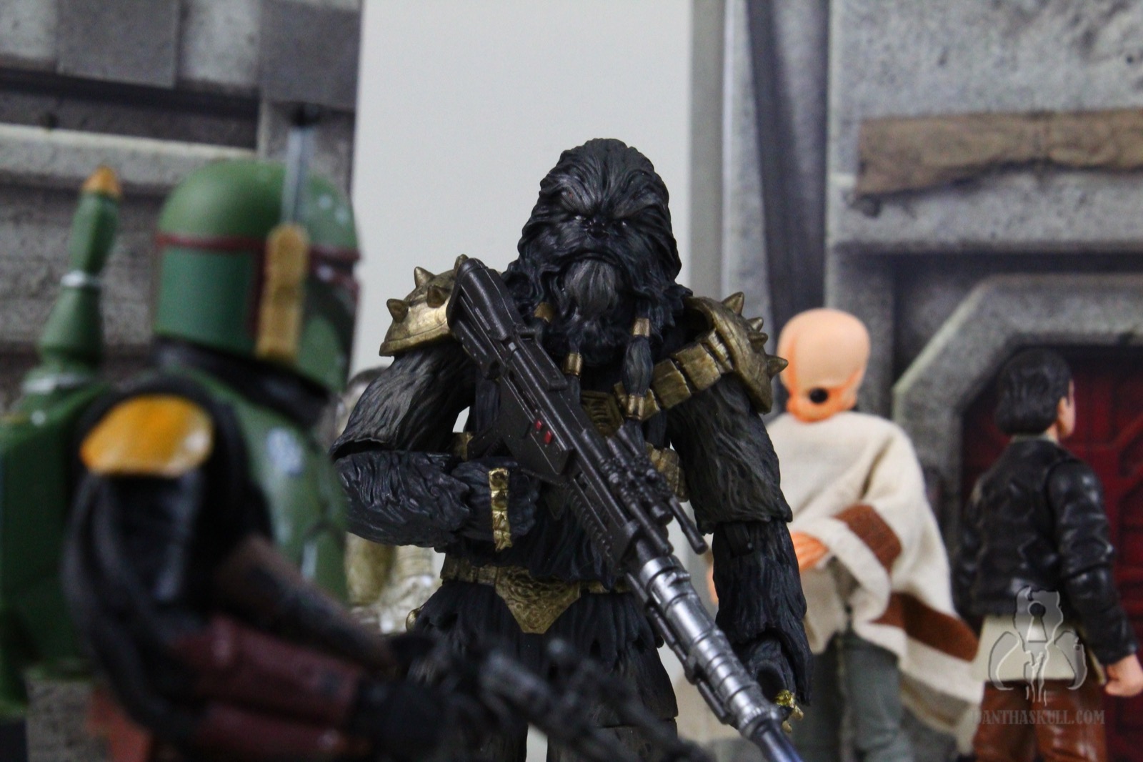 The figure itself is pretty impressive, but I can’t help but feel it’s a bit smaller than I would have liked. I’ve seen some folks on the interwebs defend the size by saying it is in scale with the actor, and when you see a screen shot like THIS, it does kind of seem like he’s not insanely tall. But the way his scenes are shot do seem to emphasize his tremendous stature. The figure is larger than Paz Viszla, however, it is shorter than Chewbacca, and even shorter so and perhaps less massive than Tarrful. Despite perceptions of proper scale, the figure is pretty hefty no matter how you slice it.