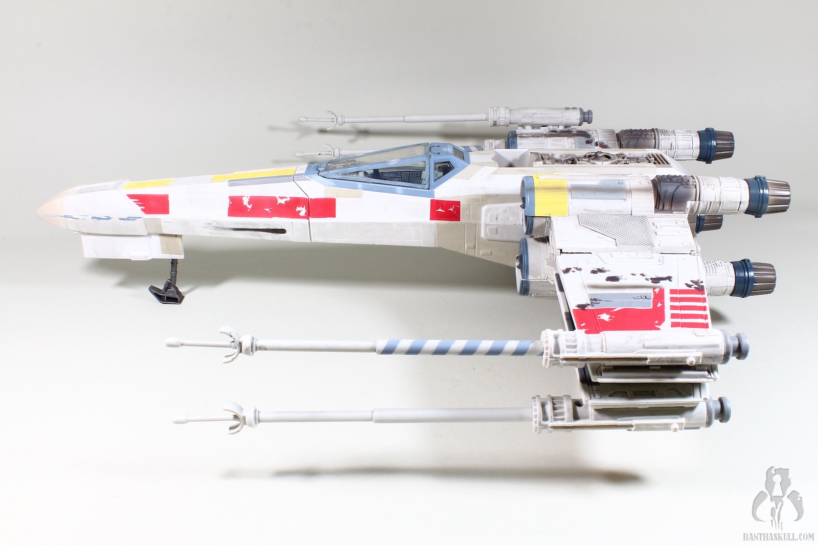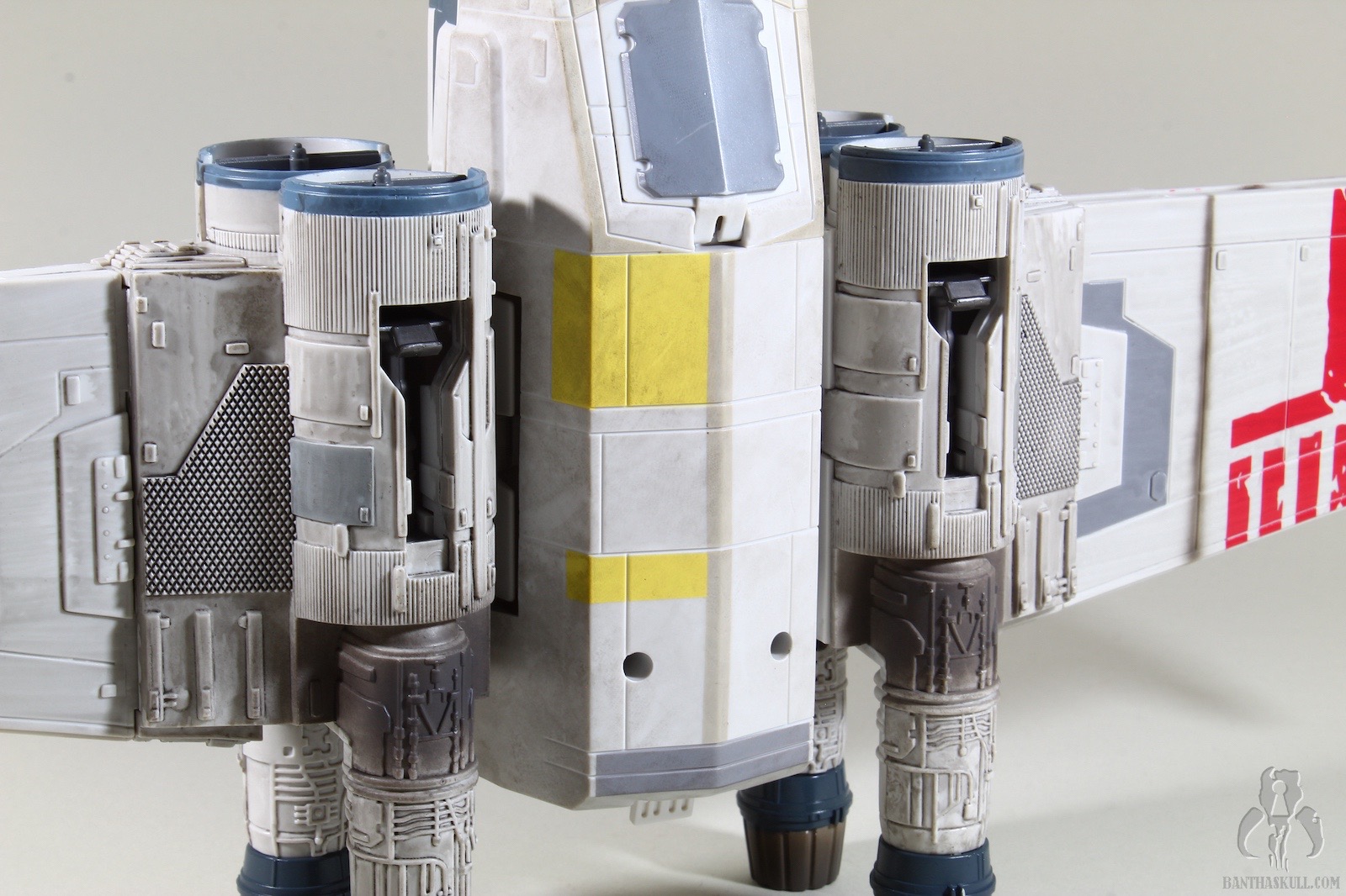 As stated, it’s a straight repaint of its two predecessors. It’s got the same identification markings (obviously) as the 2011 version, but the paint applications, weathering, and battle damage are significantly improved. Enough to warrant a purchase if you already own the 2011 Red 5? Probably not. But if you’re an X-Wing fan, this is an opportunity to pick it up for less than the secondary market of either the 2011 (sponsored) or 2013 (sponsored) releases. If you’re a customizer, you could also pick this one up and repaint it in the colors and markings of other members of Red Squadron that don’t exist yet at all, or that do exist but are based on older molds, like Red Leader (Garven Dreis) and Red 2 (Wedge).