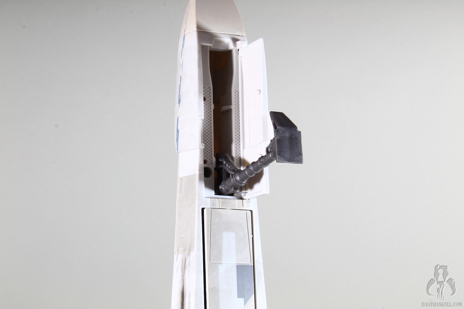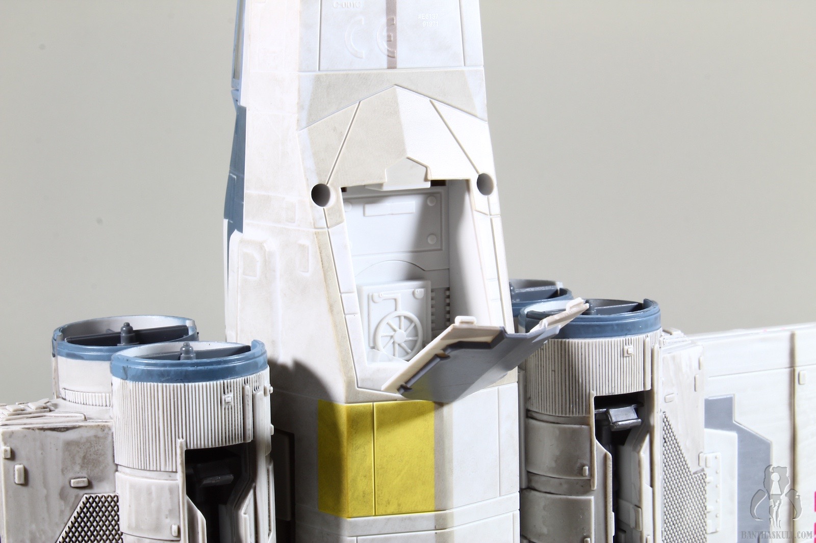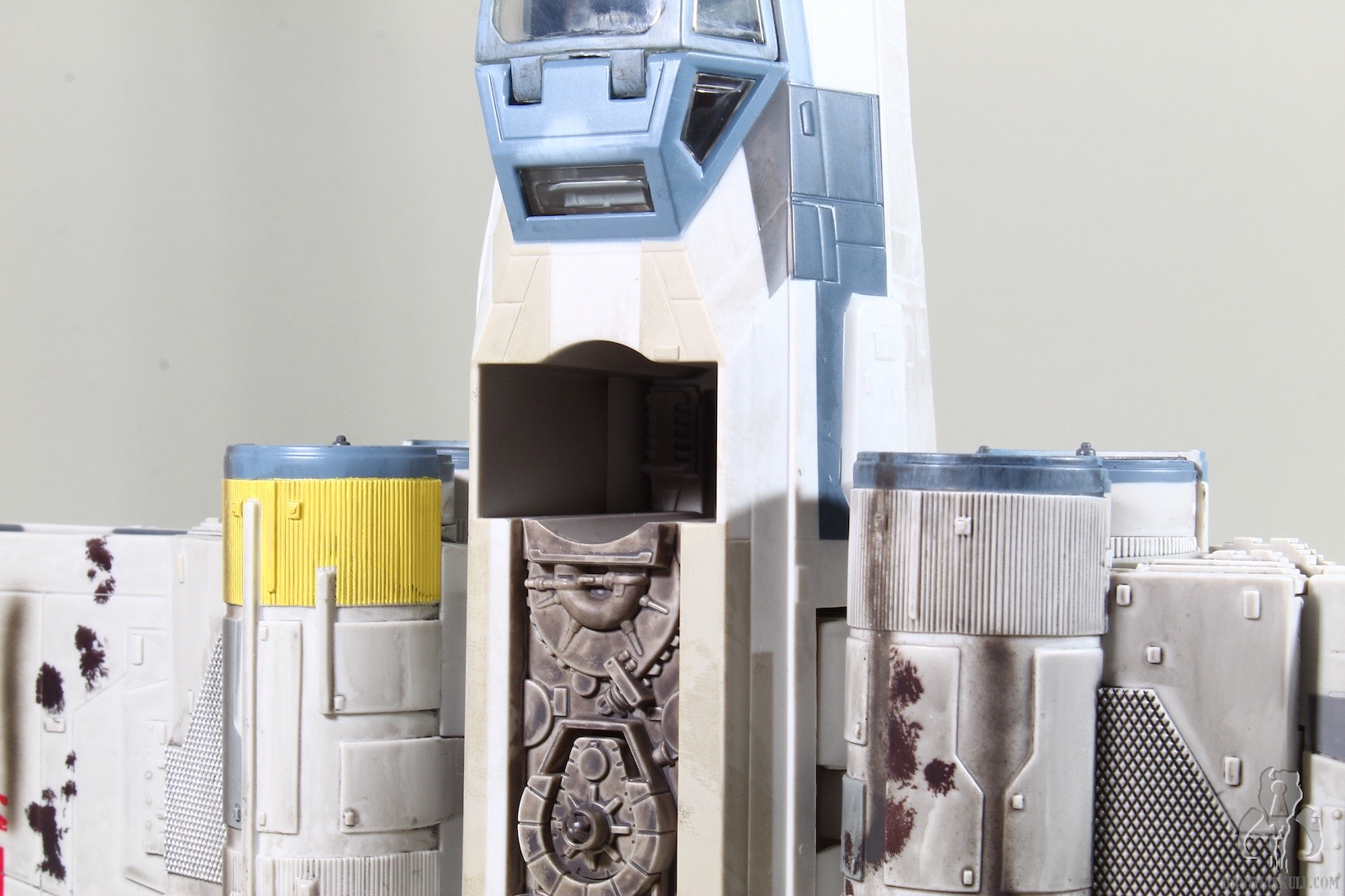 With a great sculpt, an awesome cockpit with removable dashboard and targeting computer, hidden front landing gear, flip out torpedo launcher, and fantastic paint applications, this is the premiere OT X-wing available. The drawbacks are that the landing gears don’t “lock” well into the open position, so it’s easy for the ship to collapse if you move it, which could trigger a frustrating domino effect in your displays if you aren’t careful. The S-foil mechanism isn’t that crisp, as the wings don’t come together that well, as they seem misaligned or out of whack. As for the set itself, while it’s a repaint of the 2013 version, it would still be nice if Hasbro could have added something of a sweetener to help buyers accept the $99.99 price tag. Even just the two ladders would be helpful. A clear display stand would be neat as well, since you can’t display the ship with the foils in the attack position on your shelf.