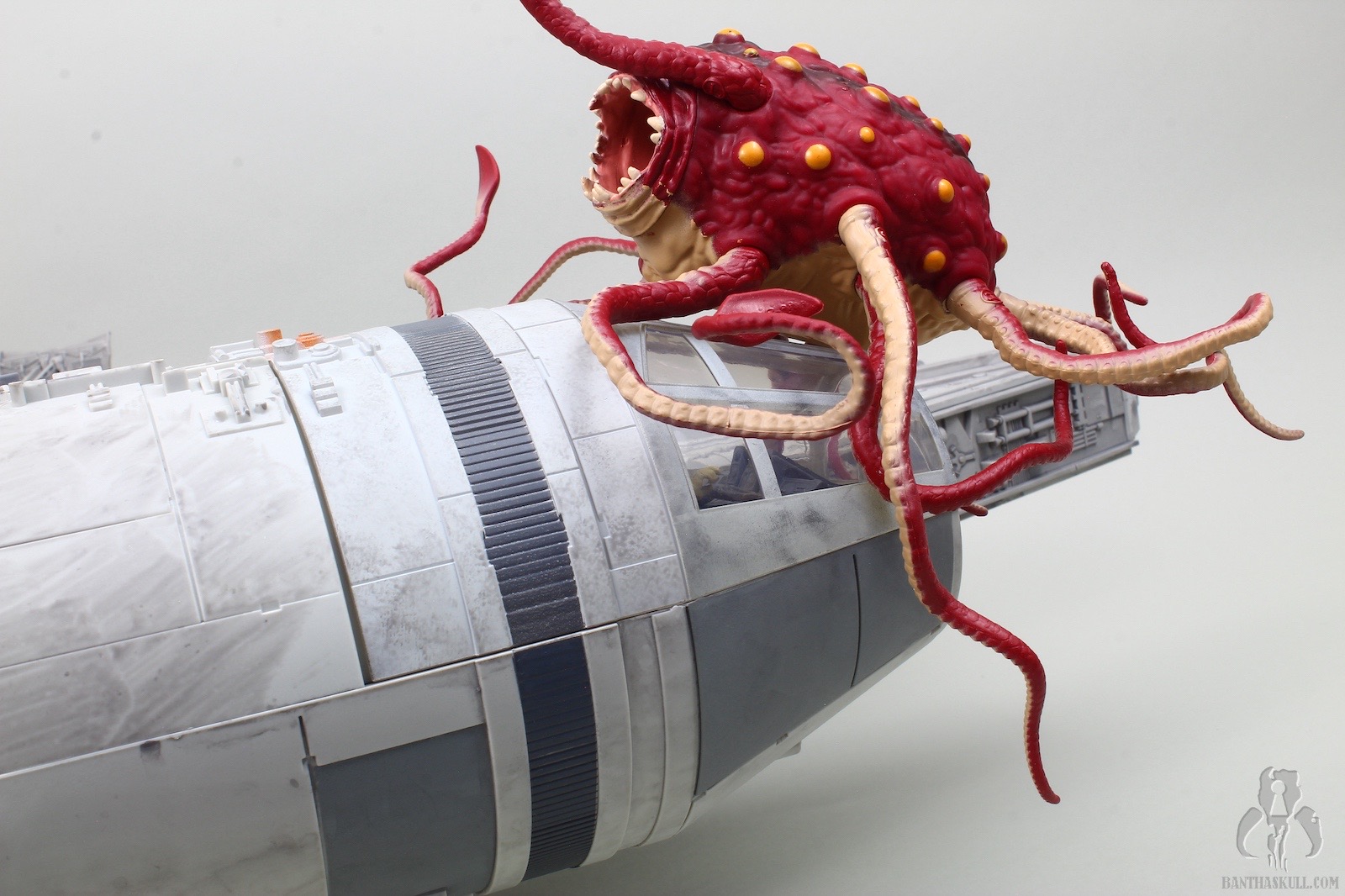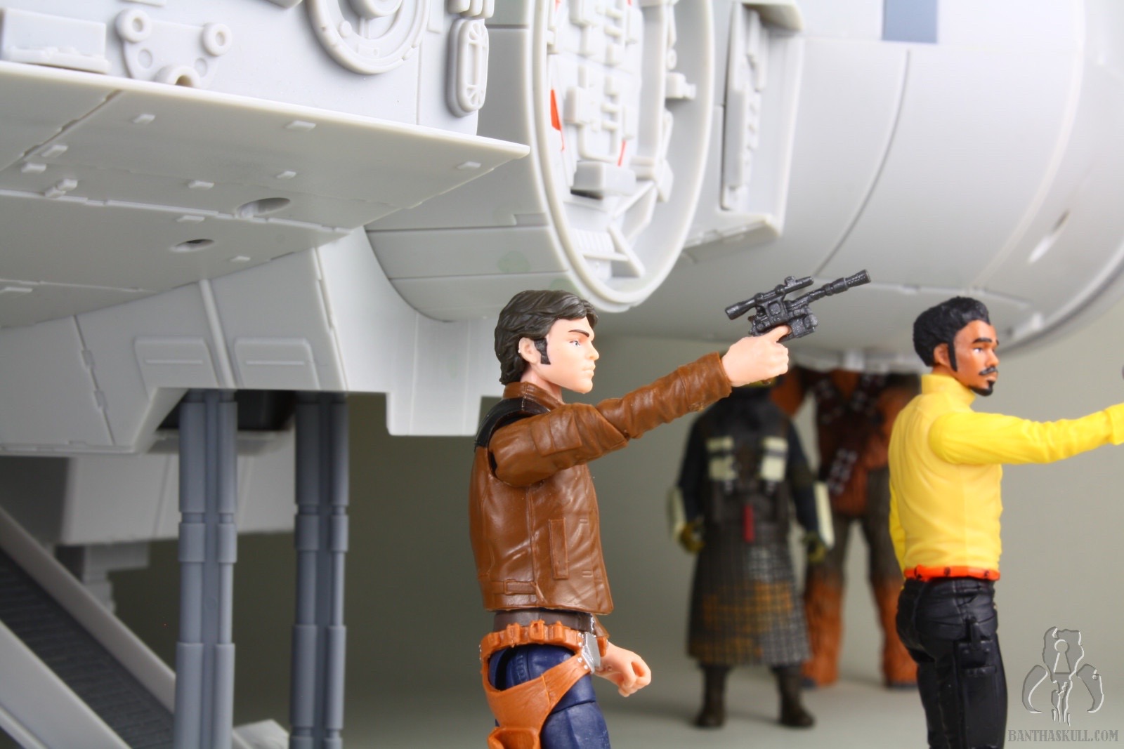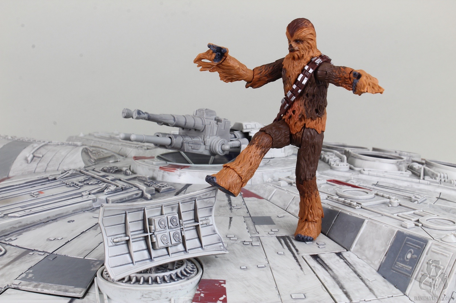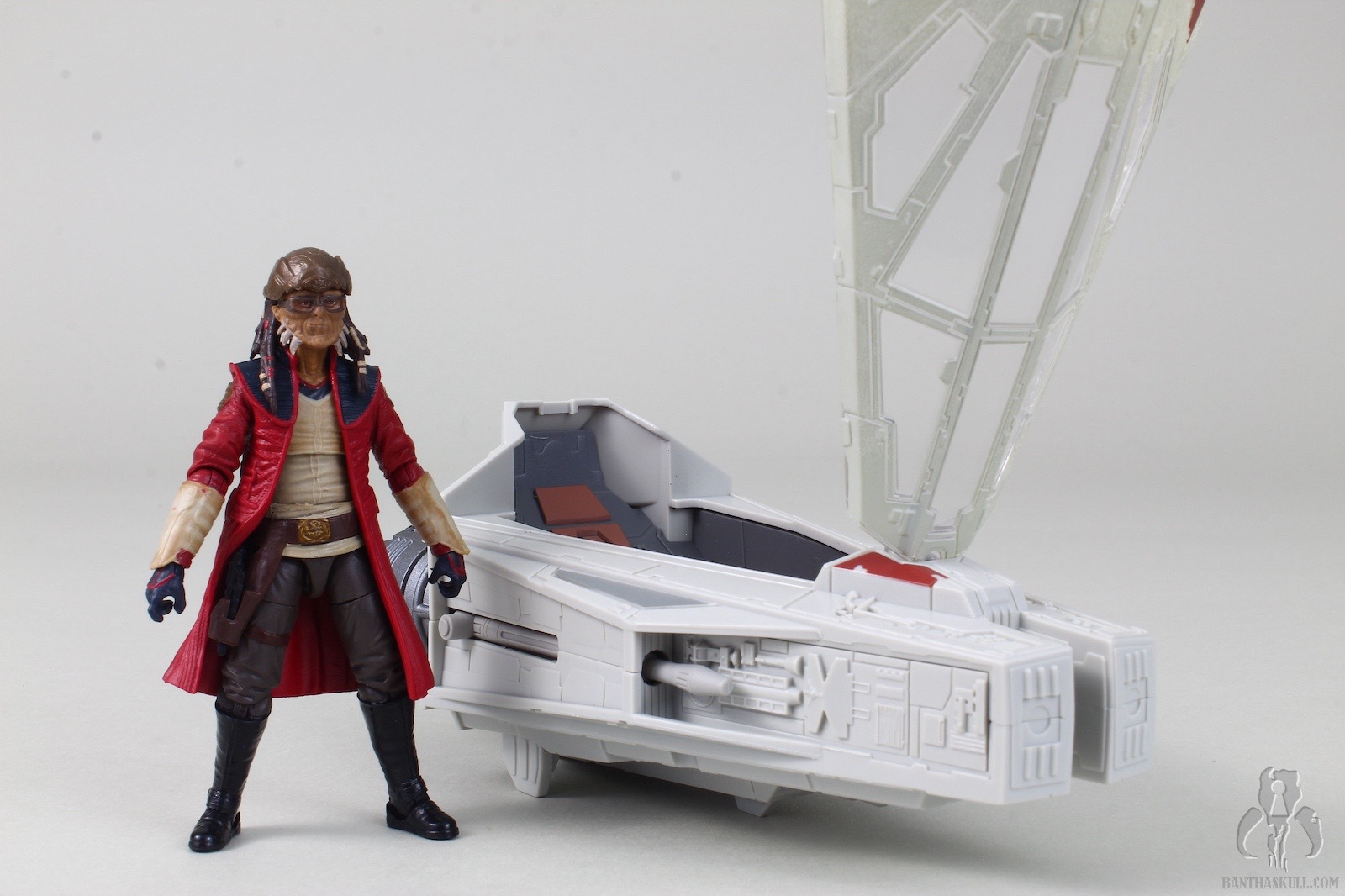 The figures included are new, as well. They are sourced from Galaxy’s Edge. Hondo Ohnaka and Chewbacca are teamed up as they are during the events of GE. The Hondo figure is excellent, although sadly, the plastic is a little soft. The cape is a bit limiting, but the plastic used is thin and pliable, so you can still get some solid posing out of him. It was already revealed that Hondo will also be released in the next wave of TVC figures, so fan’s not willing to shell out $400 for this BMF can still get it separately in a few weeks. We’ll go into more detail when the figure is available.