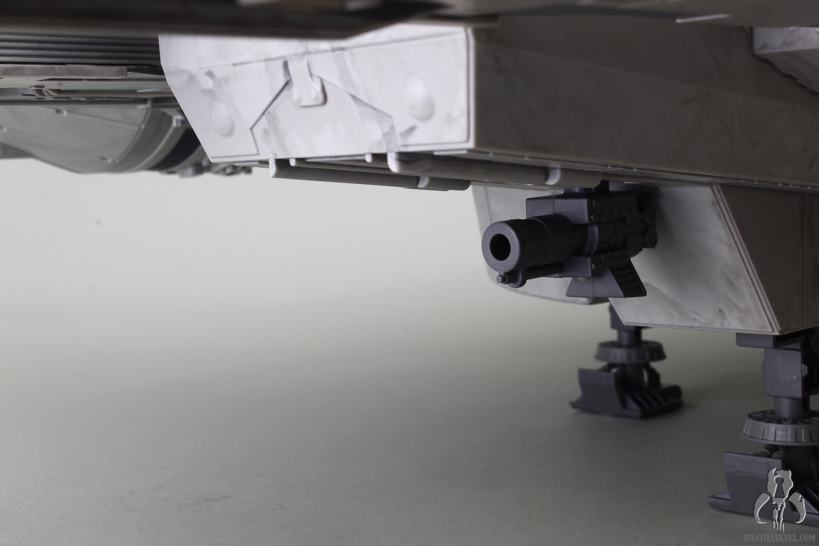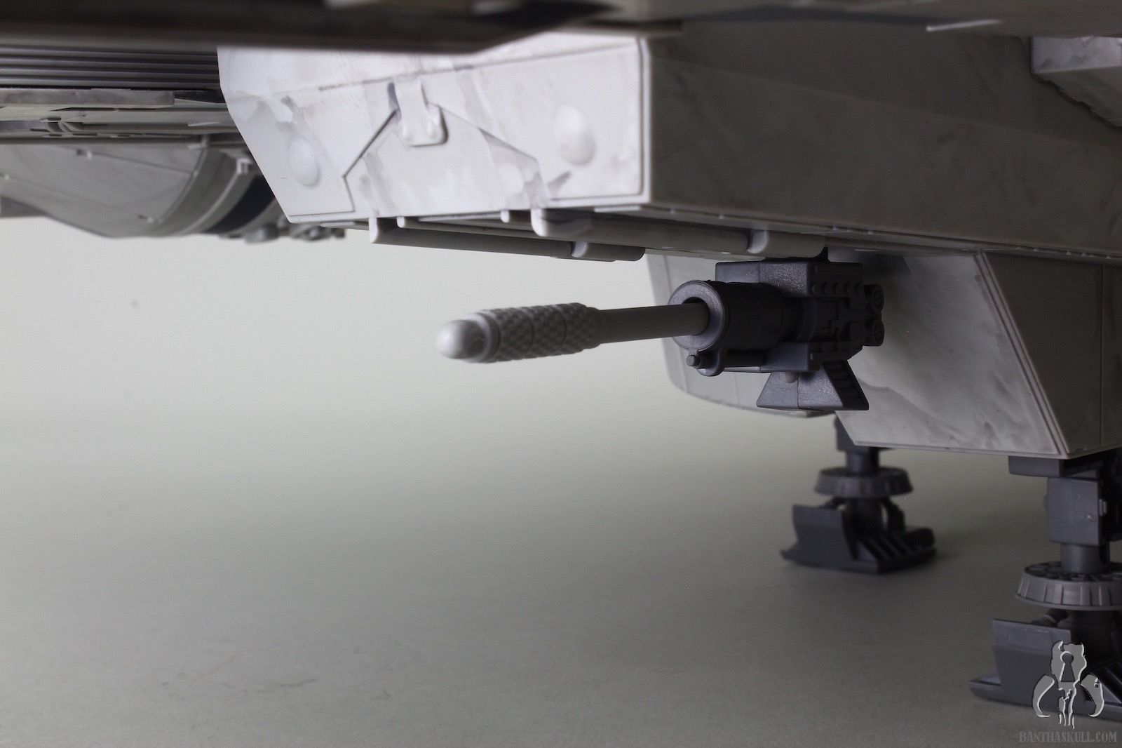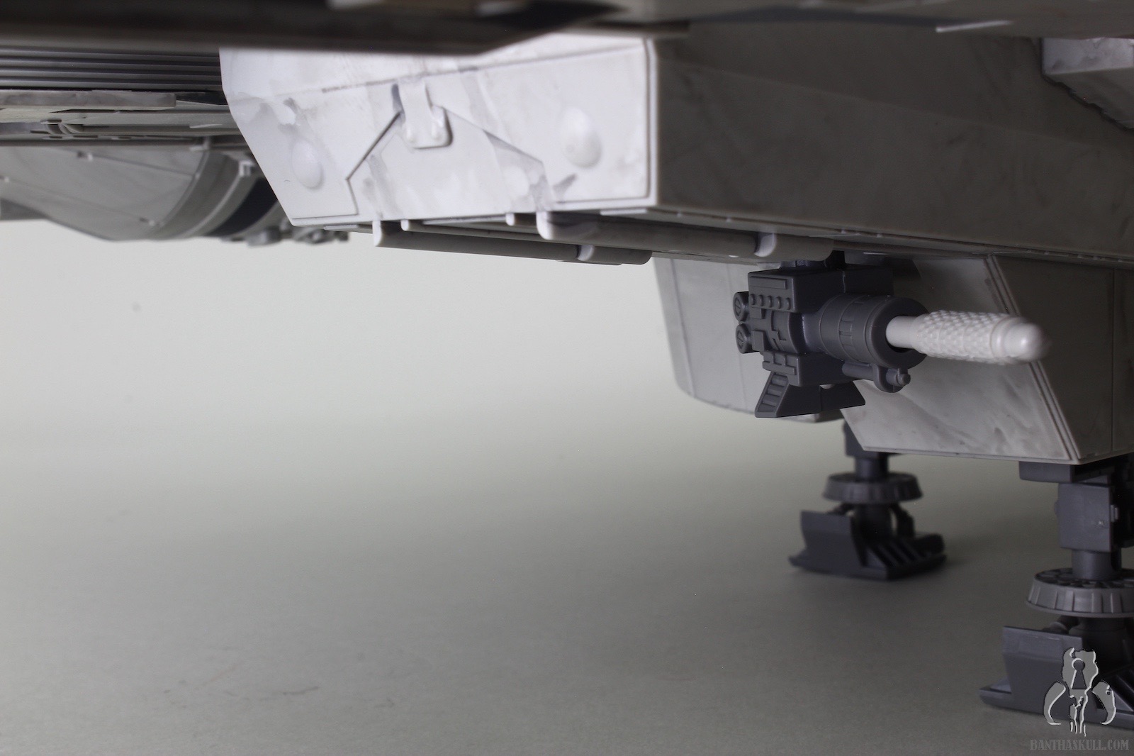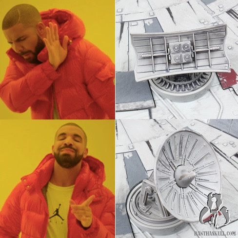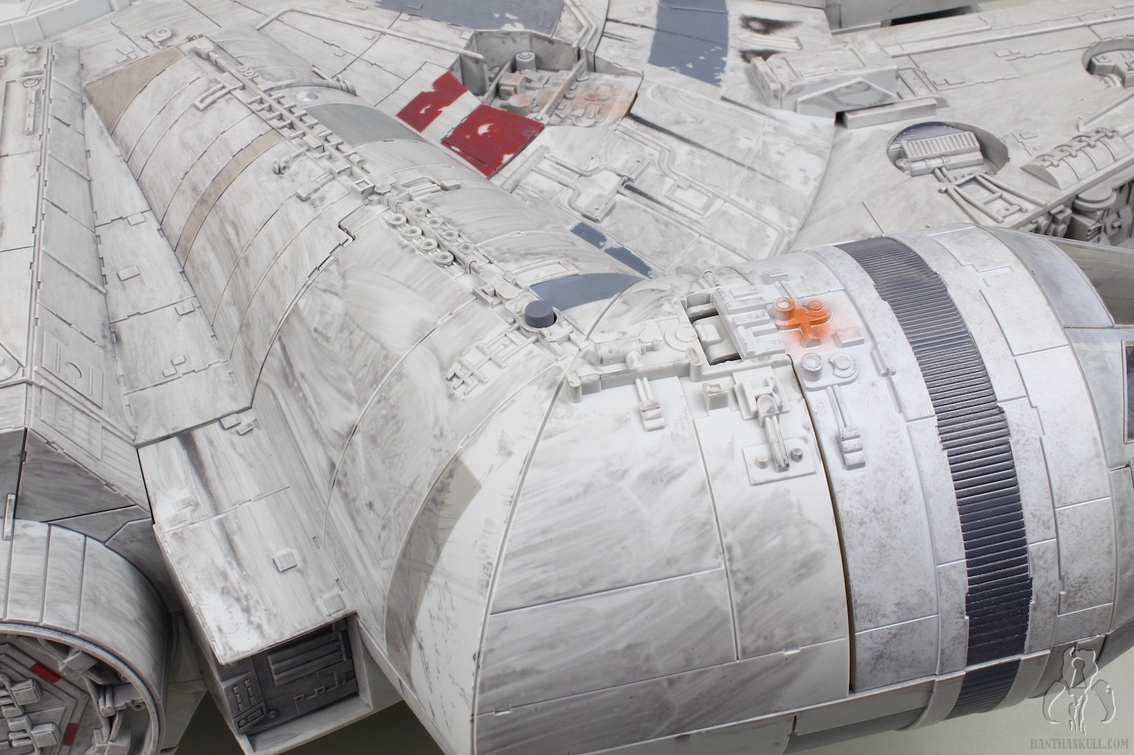 Not content with giving you just the radar dish options, Hasbro also updated the on board electronic sounds. On the previous releases, there was a main on/off switch. Now, there is no “off” option, but instead you use the same switch to toggle between OT and GE sounds. And here’s the very minor change to the sculpt I mentioned earlier. Previously, the switch was labeled with “ON” and “OFF” embossed into the plastic. These words have now been replaced with symbols. Anyway, this is excellent, as it allows fans of the OT to essentially ignore the alternative, and display/play with this ship as if it’s an upgraded OT BMF. The only thing you might want to avoid is applying the included stickers, which have a few images that feature Hondo Ohnaka.