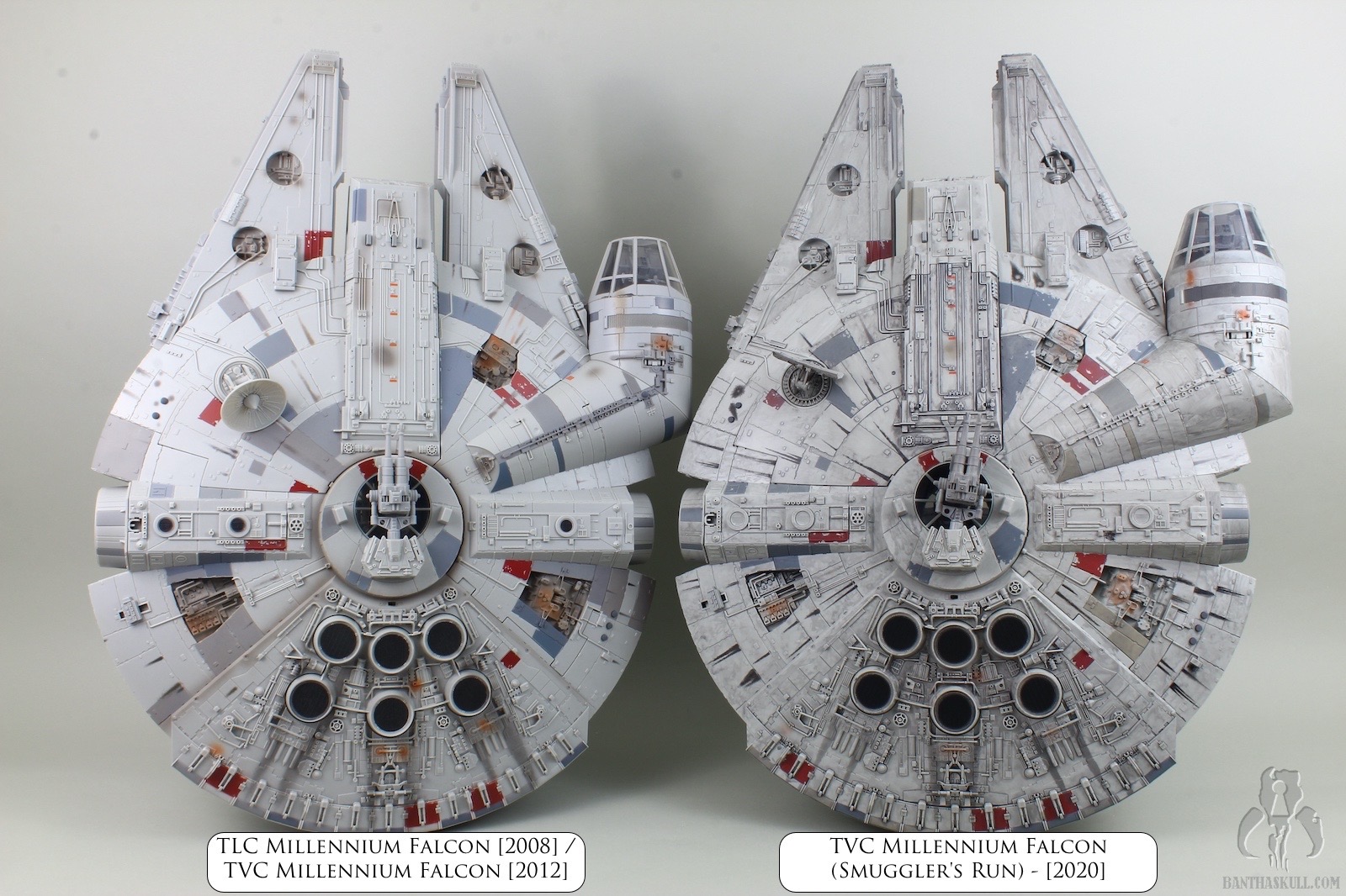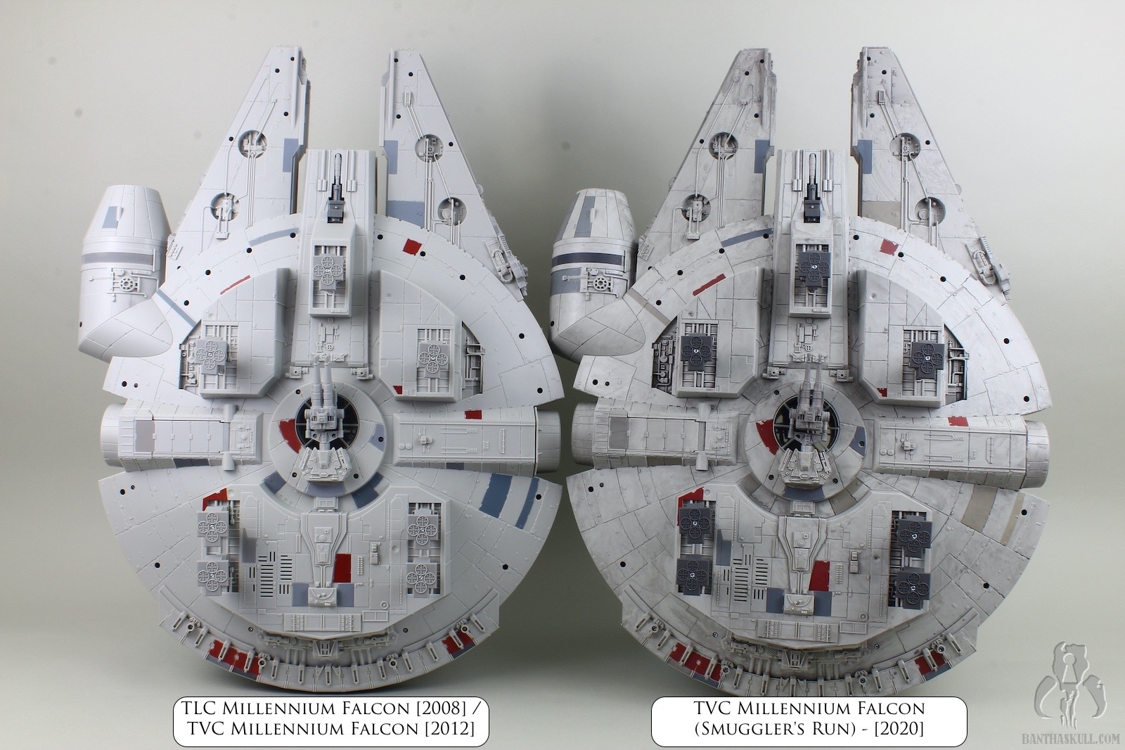You probably know the basics about the Falcon. It’s been released twice before. In 2008, it debuted in The Legacy Collection (available during Midnight Madness - Clone Wars Edition), and was an absolute revelation and gift to fans. It was huge, had a ton of features and play value, and worked overtime to provide collectors with a realistic and workable display environment for your figures, allowing you to recreate almost any scene involving the Falcon from the OT (although the electronic sounds included were specific to ANH). It was $149, a big price that matched the big size of the ship. Fans balked then, but the Falcon was so spectacular, few could pass on it. In 2012, as The Vintage Collection was withering away, Hasbro repacked the BMF in TVC packaging. It was beautiful, and gave the community a second chance to score it at retail. This time, however, it was a Toys R Us exclusive, and the price was jacked up to $249.99. That may have turned off some collectors, but it was still a successful run.