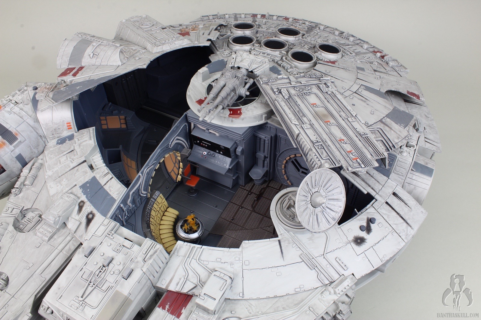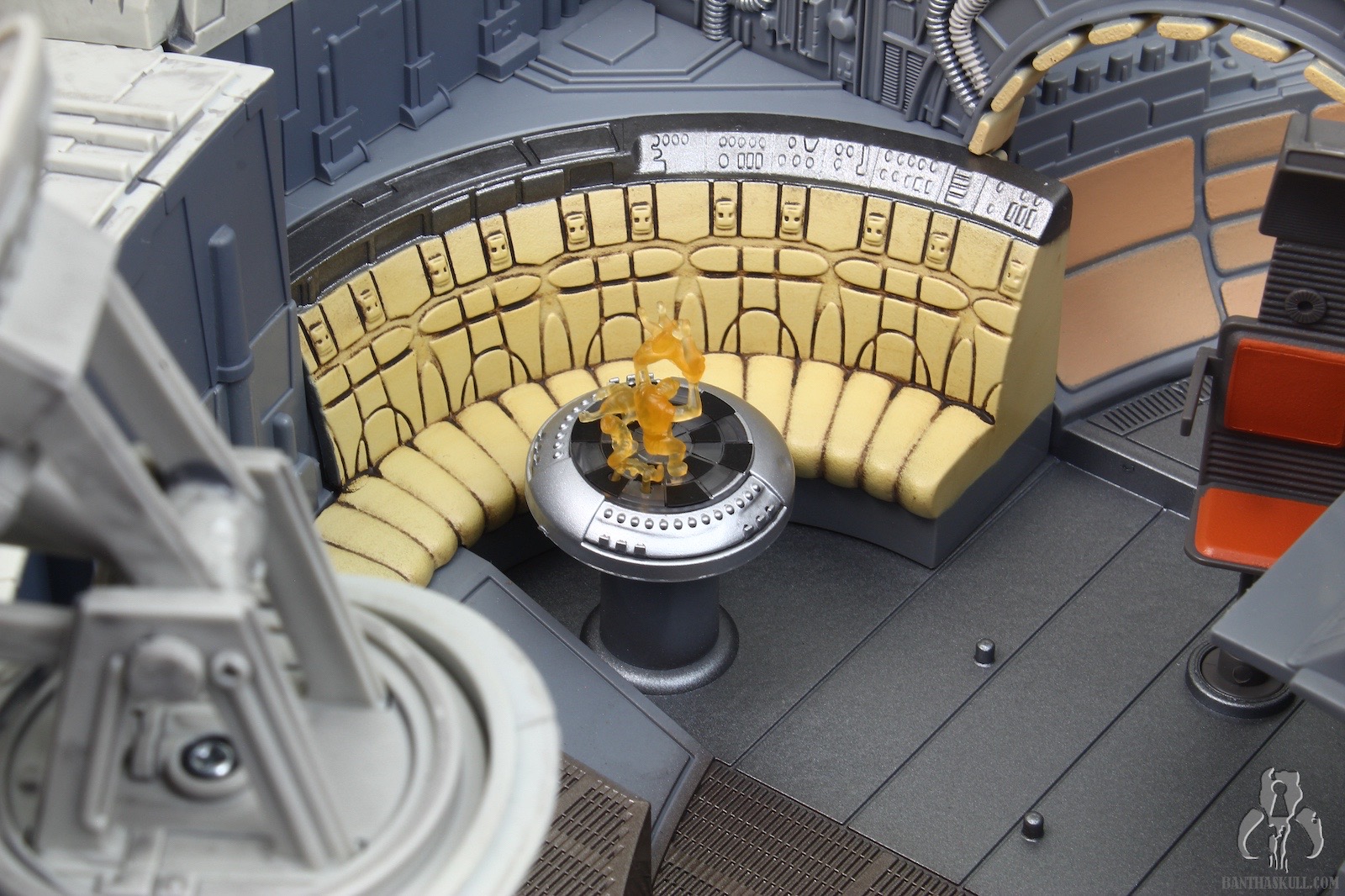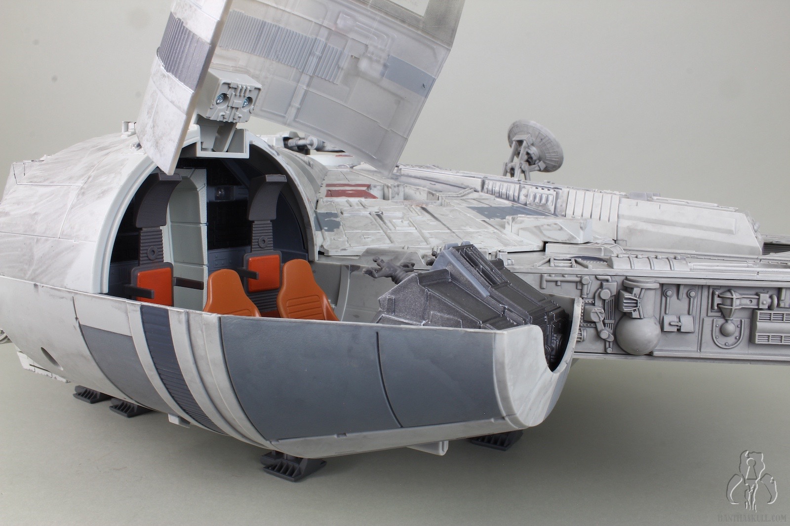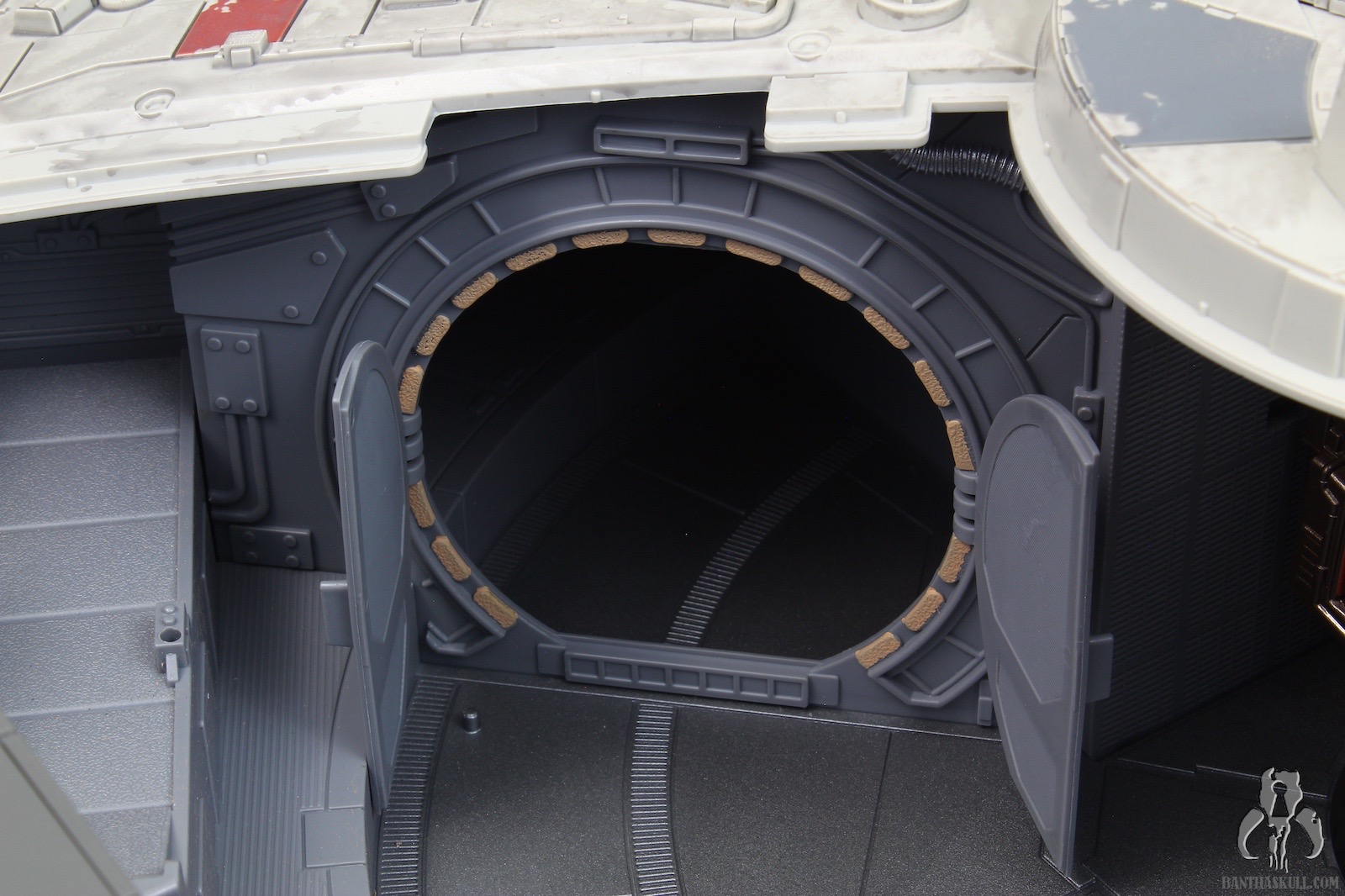 The basics are the same, and since the aforementioned reviews are up, I won’t go into too much detail. But in a nutshell, you get the same 24” x 32” mold, opening crew compartment with seating areas, a bed, dejarik table, chair/console, training remote, and hidden storage areas. There’s a large cockpit that seats 4 figures. You also get a drop down ramp, escape pod, movable quad cannons, and multiple firing missiles. The BMF includes an array of lights and sounds, including dialogue straight from ANH. Also in the package were two re-packed figures of Han Solo and Chewbacca. Both were previously available separately. All of this was tremendous in 2008 when it debuted, and it really hasn’t lost its luster since. The BMF is a centerpiece of many collections, perhaps only being supplanted by the HasLab Sail Barge.