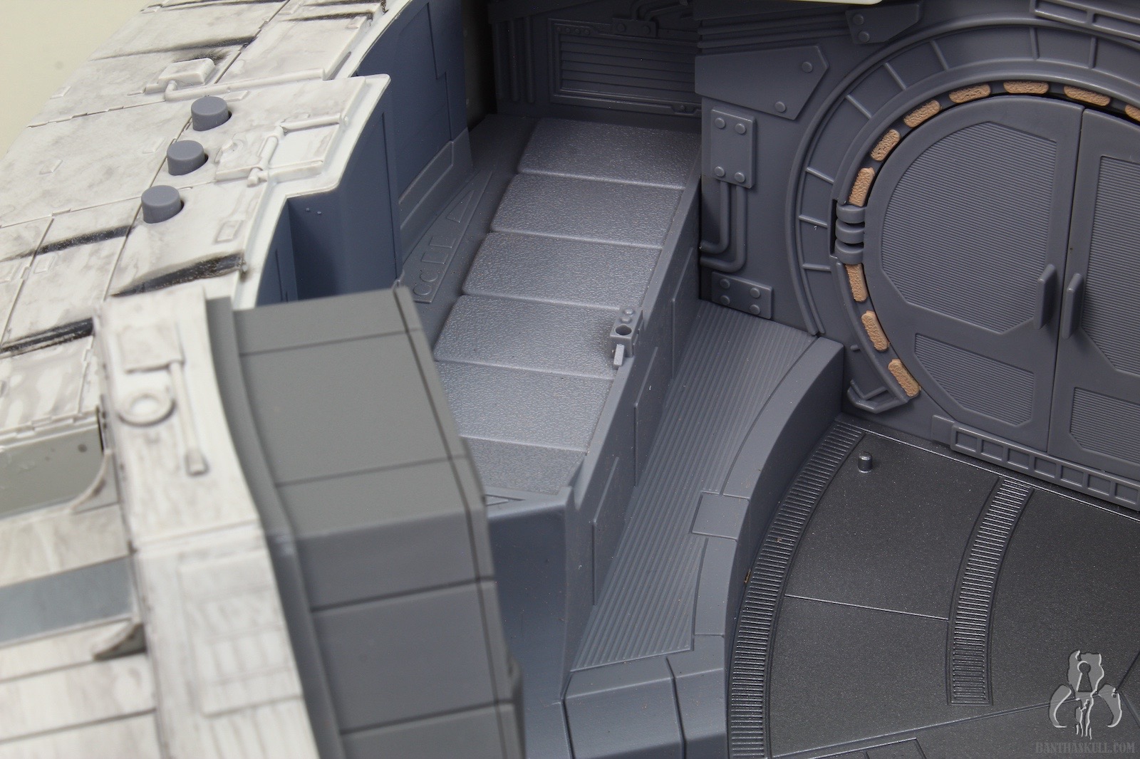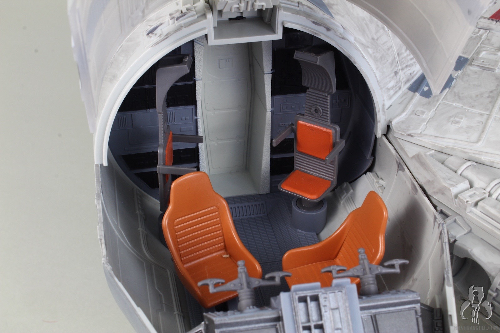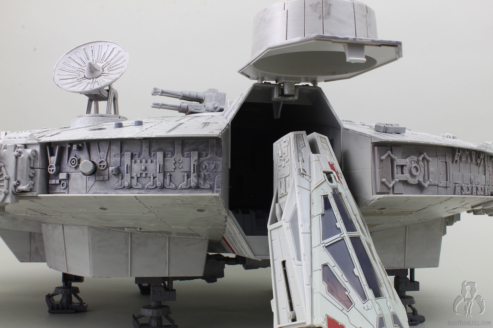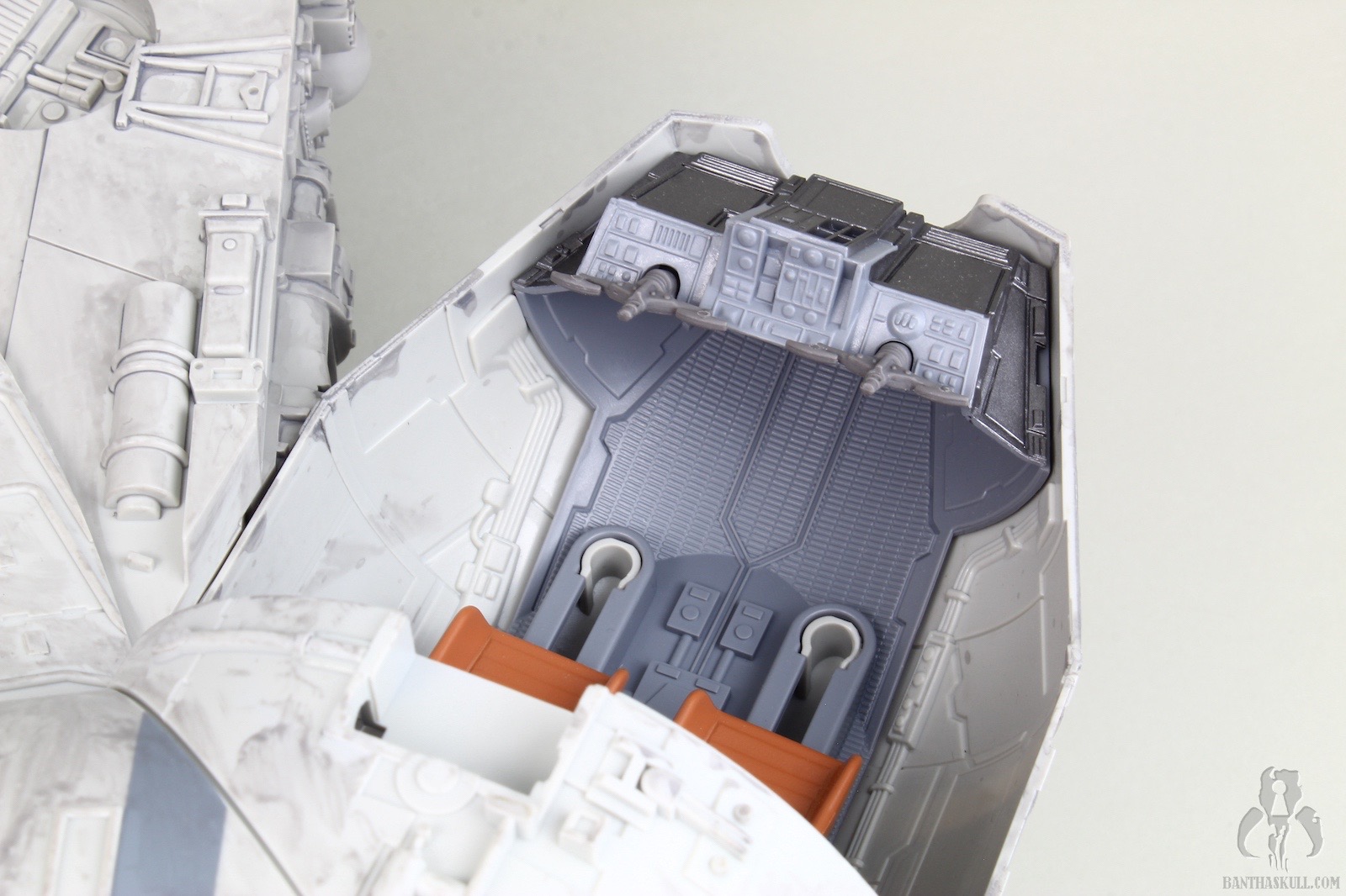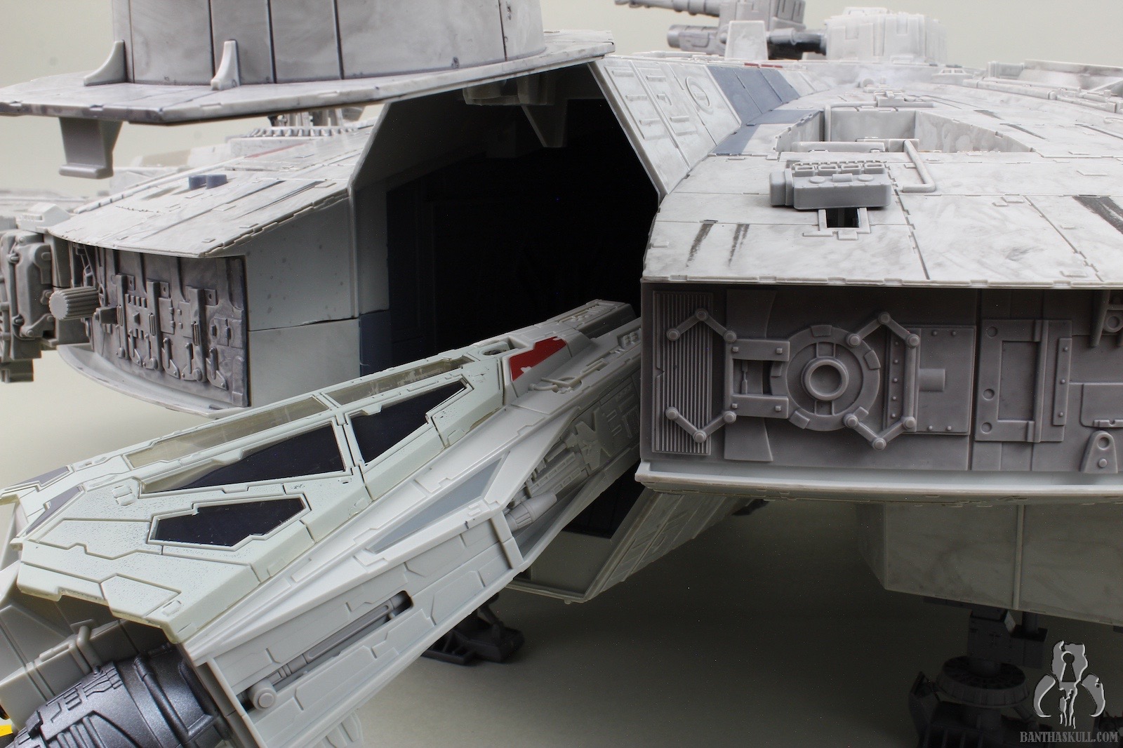 The basics are the same, and since the aforementioned reviews are up, I won’t go into too much detail. But in a nutshell, you get the same 24” x 32” mold, opening crew compartment with seating areas, a bed, dejarik table, chair/console, training remote, and hidden storage areas. There’s a large cockpit that seats 4 figures. You also get a drop down ramp, escape pod, movable quad cannons, and multiple firing missiles. The BMF includes an array of lights and sounds, including dialogue straight from ANH. Also in the package were two re-packed figures of Han Solo and Chewbacca. Both were previously available separately. All of this was tremendous in 2008 when it debuted, and it really hasn’t lost its luster since. The BMF is a centerpiece of many collections, perhaps only being supplanted by the HasLab Sail Barge.