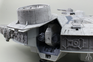 Hasbro included an alternate radar dish, so that you can display the ship with the rectangular version that the Falcon sported later on during the Sequel Trilogy/Galaxy’s Edge era, or you can stick with the more iconic circular dish from the Original Trilogy era.