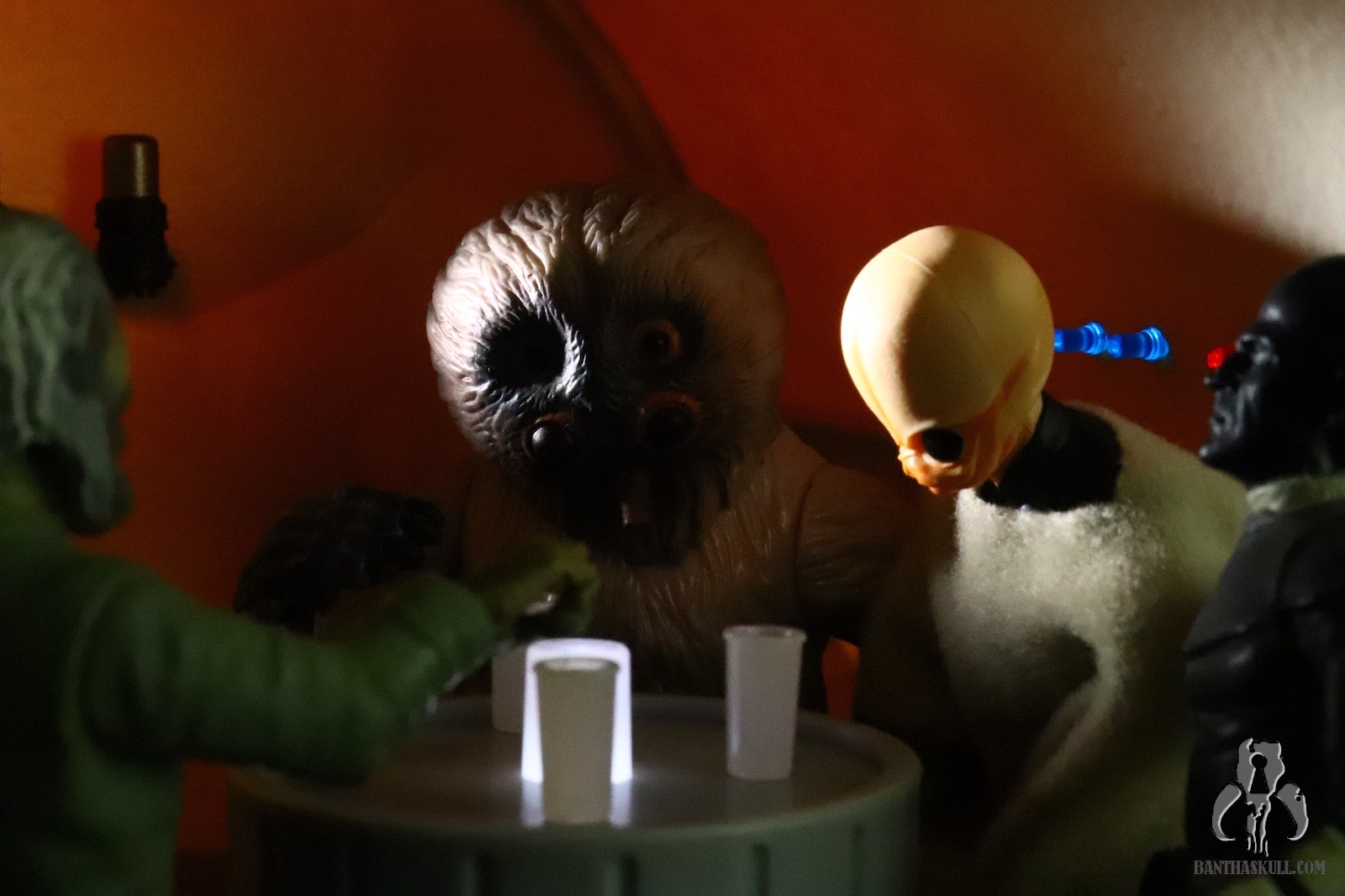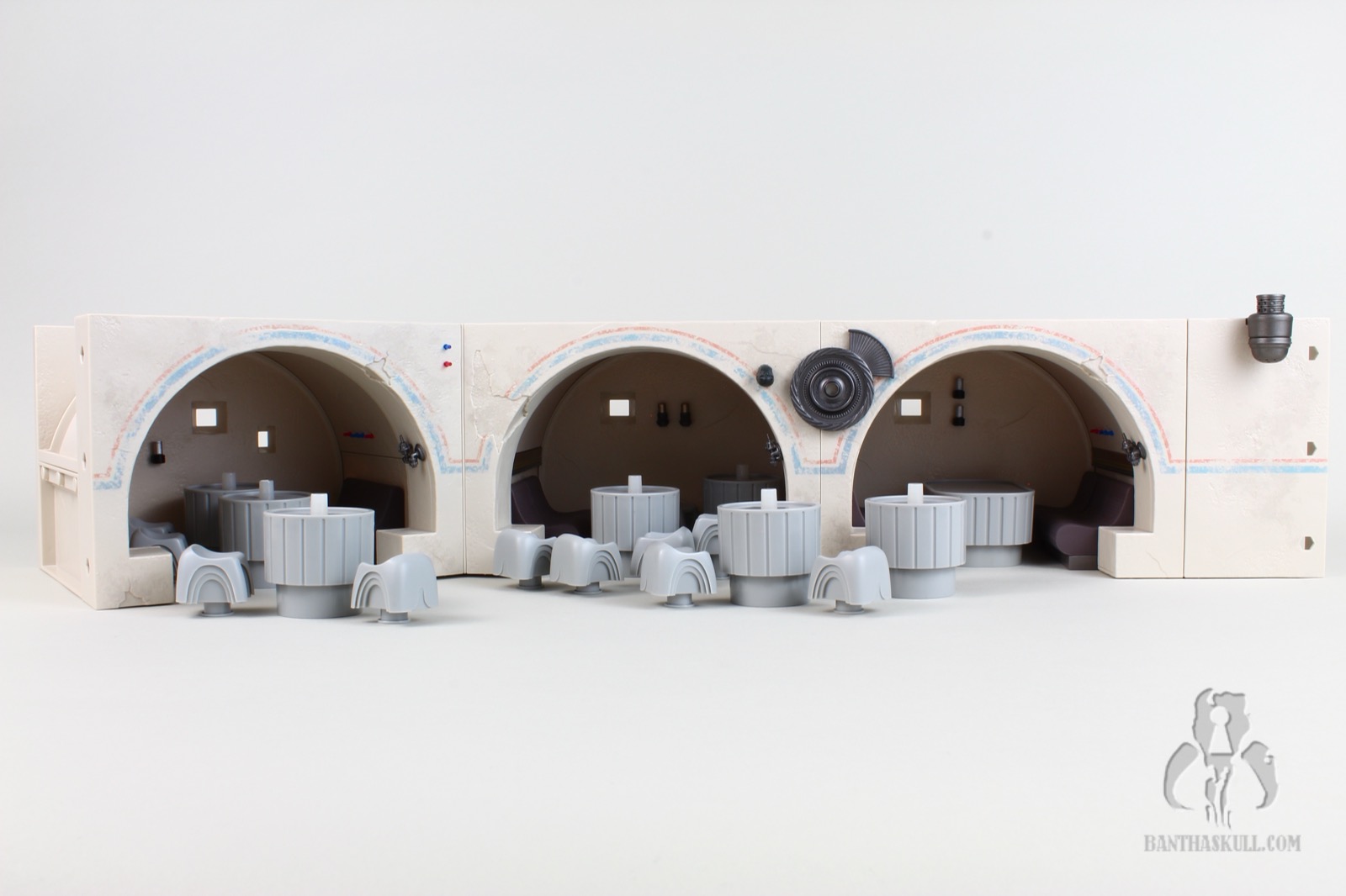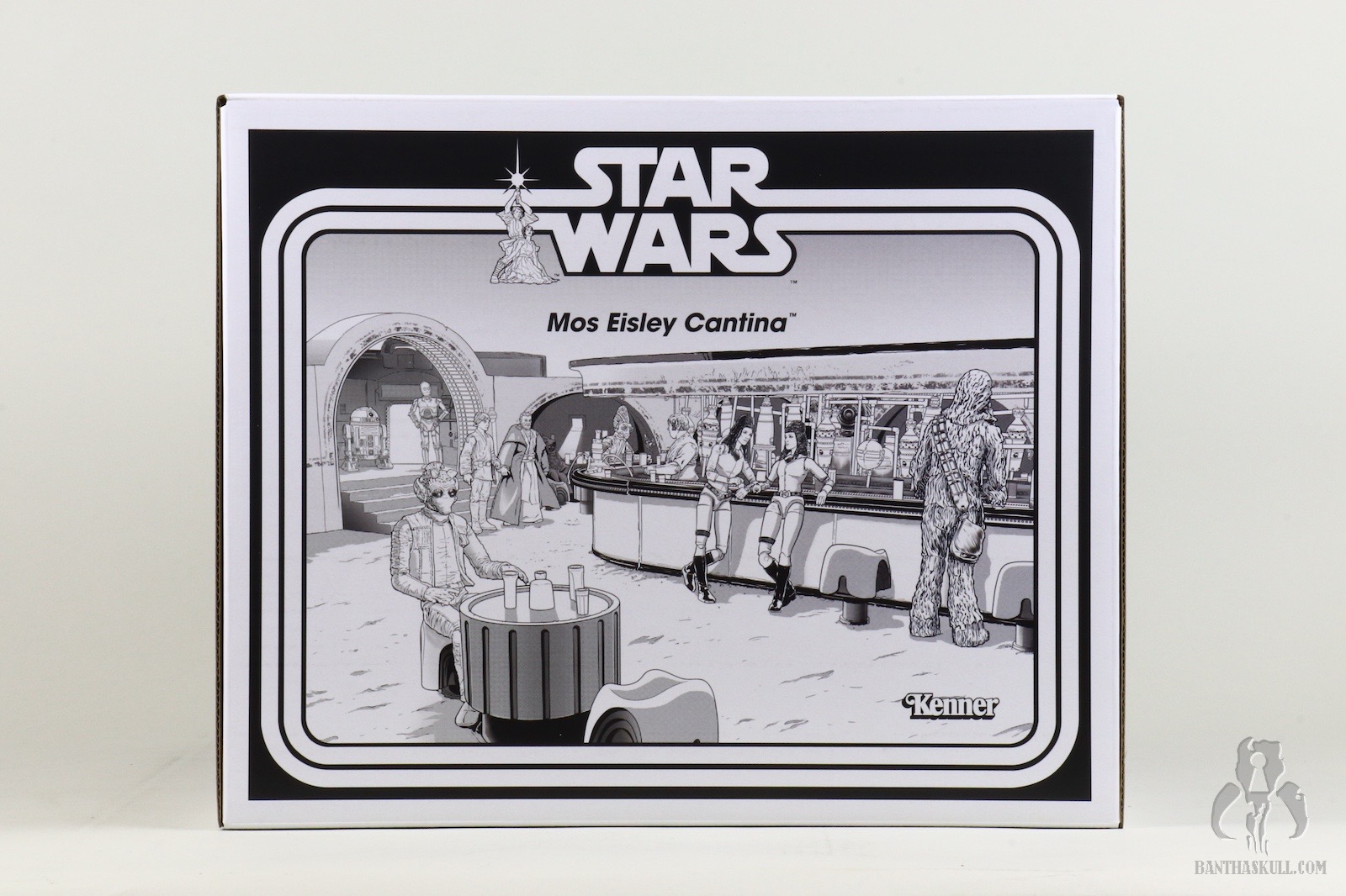 The Cantina represents an unprecedented moment in the entire history of 3.75” Star Wars figures, and it will likewise be an unprecedented moment for Bantha Skull as both Bret and I will be reviewing it. There are other items in our galleries that we’ve both reviewed, but in those cases it’s because it was initially reviewed by one person, and then re-reviewed later by the other. This marks the first time we’ll both be providing the inaugural review. -Chris