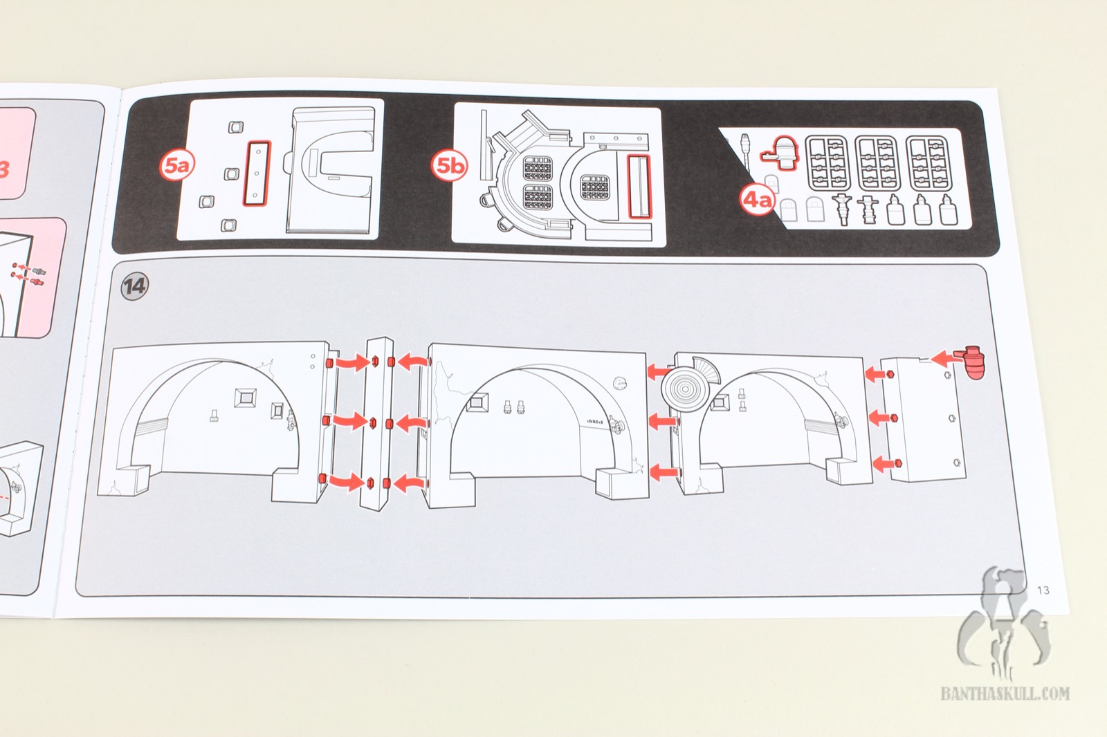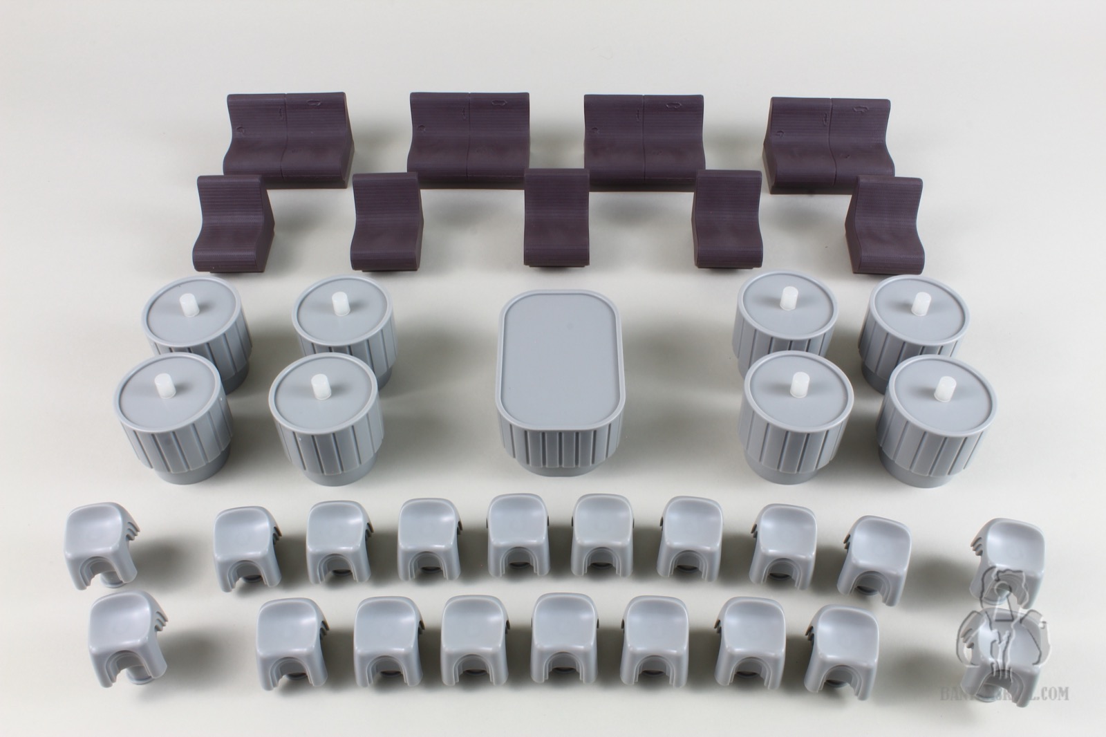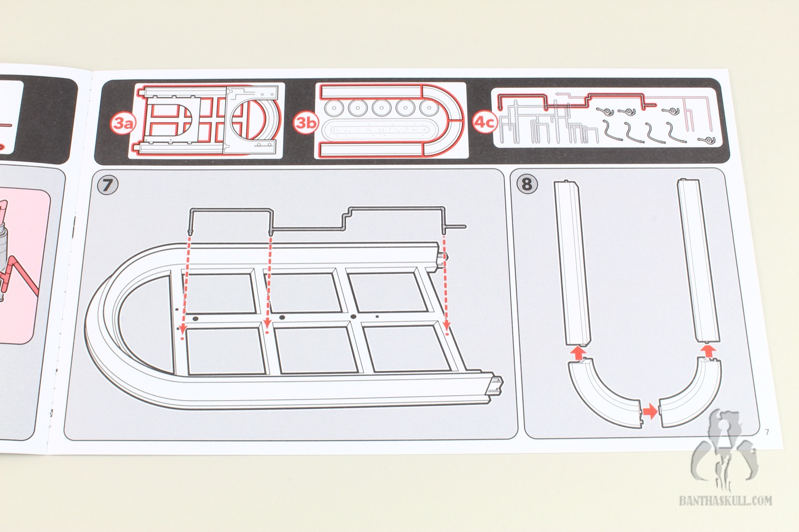 Also, as Chris mentioned, the 4 translucent bar pieces don’t really stay together with a satisfying click, and if there’s any shifting of the bar should you decide to move it, it will likely pop apart. And based on the shape and the connection design, there isn’t a good way to leverage a proper amount of force to put them back together once the entire thing is fully assembled, as they’re just not very cooperative. If you do this after you’ve set up all the cups (Oh god, the cups! Why are there so many cups?), you will likely tip over 90% of them. Some cups are certainly necessary, although I don’t think we needed fourteen thousand of them. They become a nuisance rather quickly, so you’ll likely decided to store about half of them in a bin. While not quite the same deal, getting them in place for the final set up was reminiscent of the aforementioned Razor Crest weapons locker. I used long tweezers to position them around the bar and on tables in the alcoves. It was like playing Operation: “Don’t touch the sides, or…BUZZZZZZ” and all the other cups fall down.