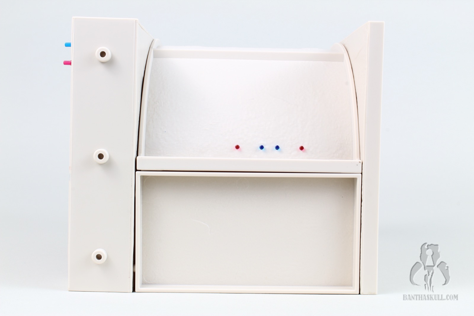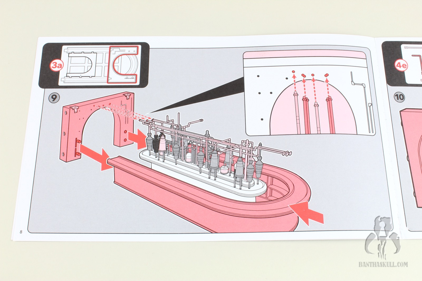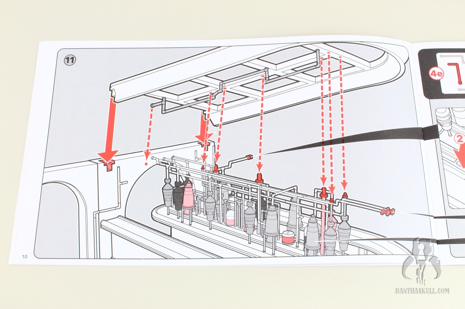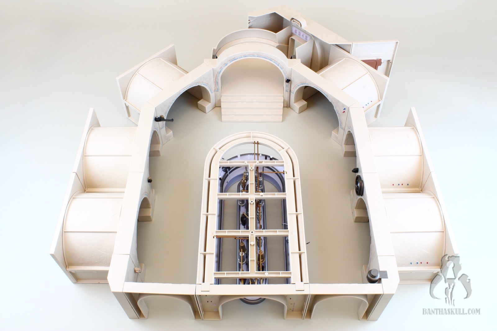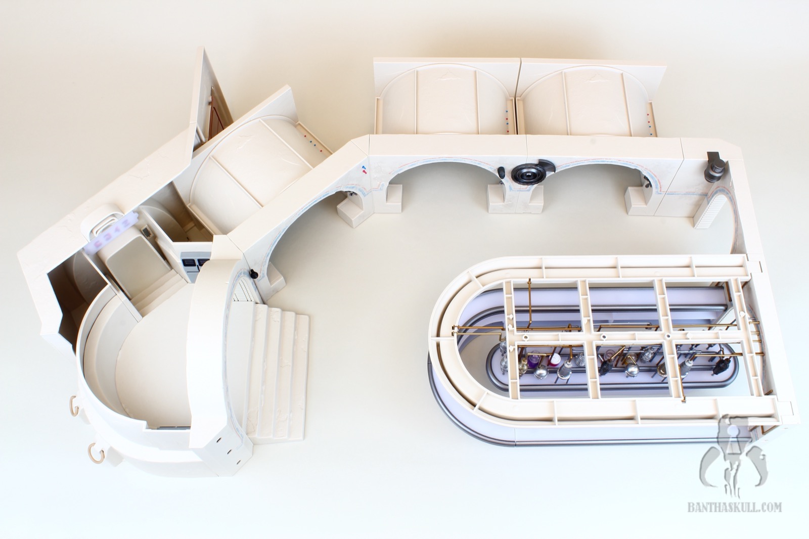 I’m almost completely gray, but assembling the distillery section of the Cantina cost me most of the remaining pigmentation in my hair. It’s an exercise that feels like you’re flirting with breakage the entire time. You have to push a series of millimeter-thick plastic pipes into peg holes, and it takes a decent amount of force to get them to stick. And here’s the best part: I got to put it together three times. Once initially, a second time when I tried to remove the roof which ended up tearing half the pipes out, and a third time when too many pieces became dislodged trying to move it from my “photo studio” to my display. I’m a pro at it now.