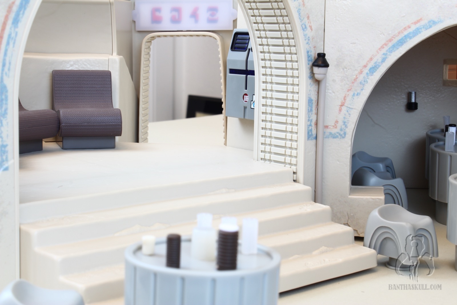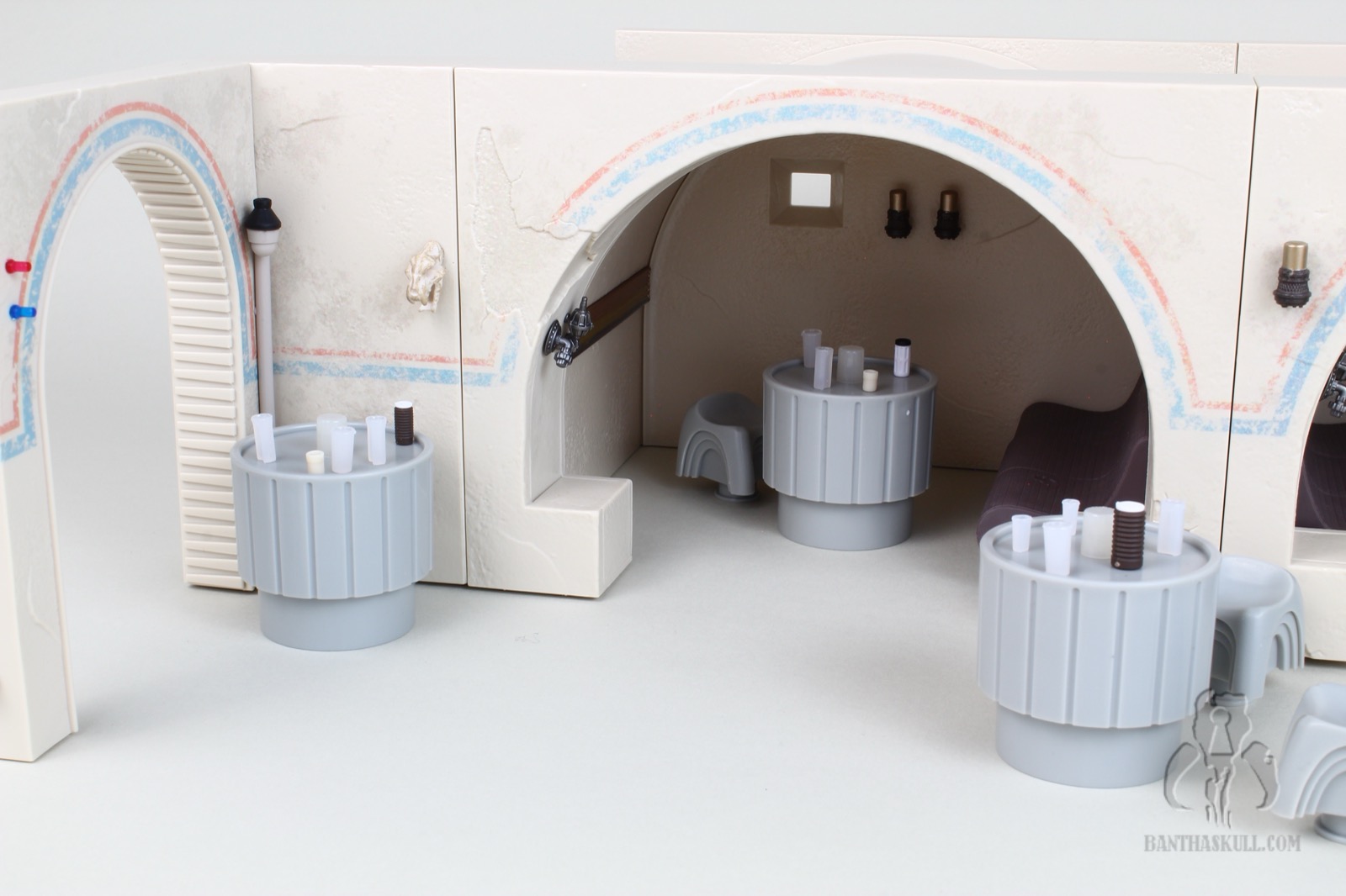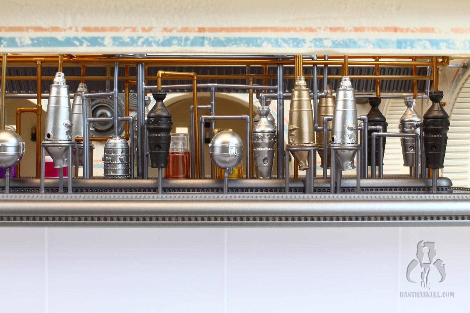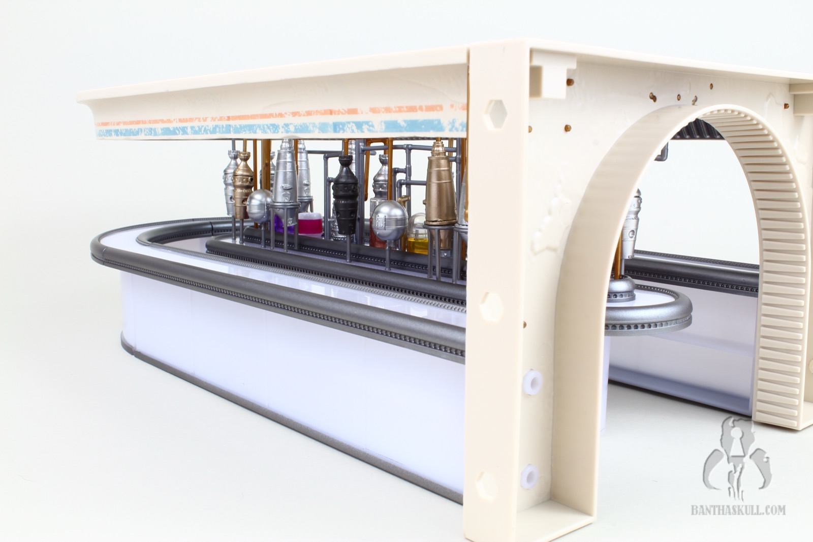 To that last point, it’s difficult to move the Cantina in general. The bar sections do not stick together well. Any movement pulls the sections apart. If you merely look at the hookahs, you’re going to dislodge one or more of the pipes. At one point I actually considered super gluing the hookah pipes in place, but I don’t want to lose the utility of being able to rotate them as needed for display. I may glue the bar together. I’m still debating wether or not I should. I probably won’t. But here’s the good thing. This isn’t a vehicle or something destined to be moved. It’s a display piece. You just need to set it up, leave it in place, and bask in its glory.