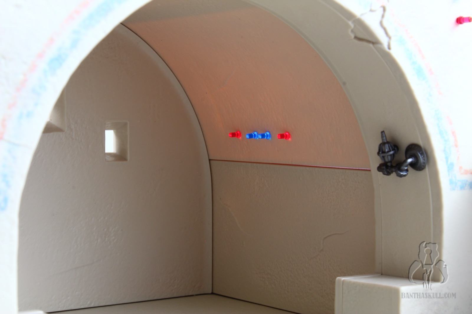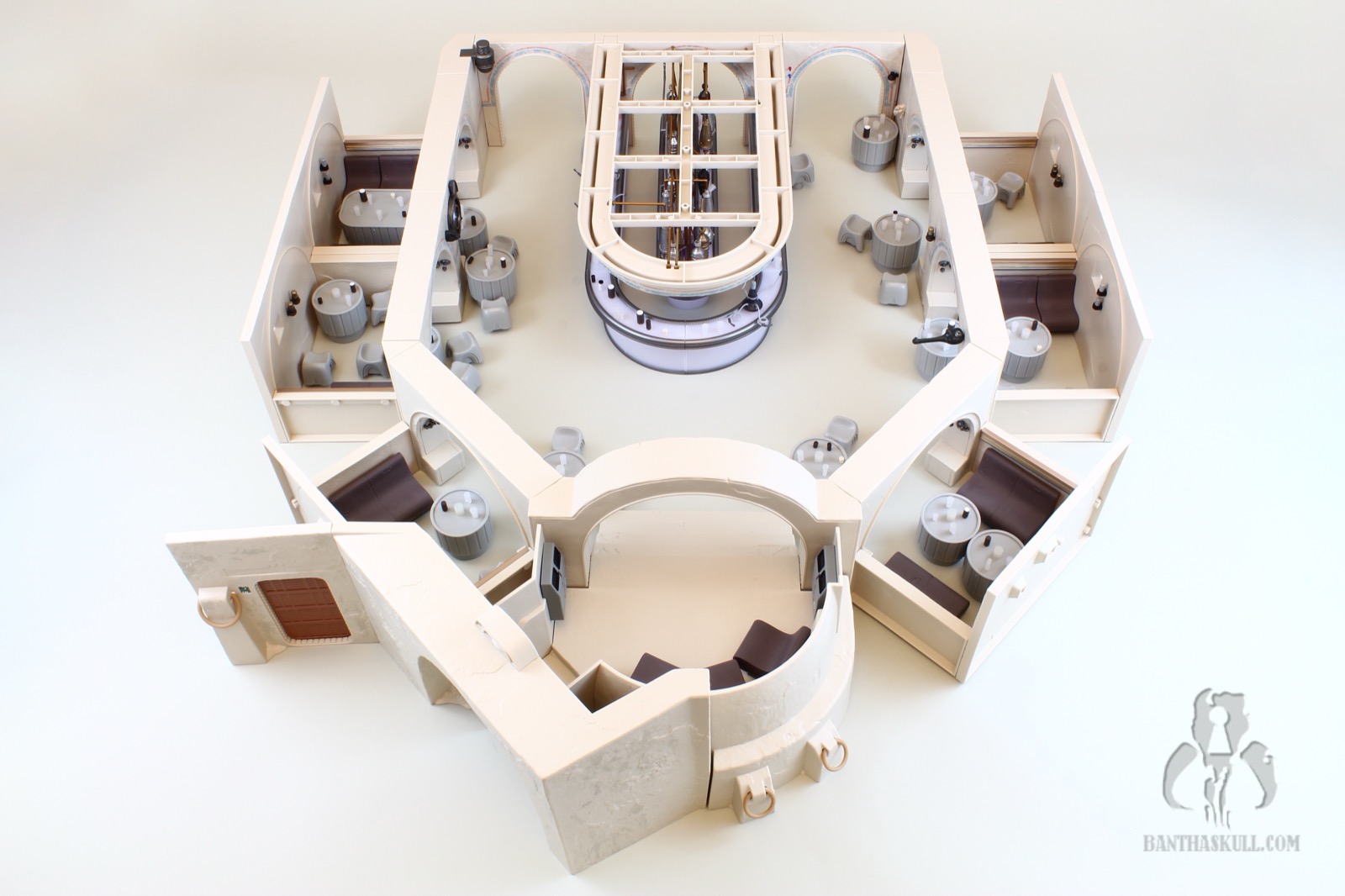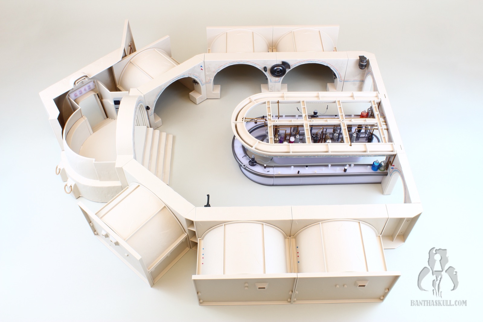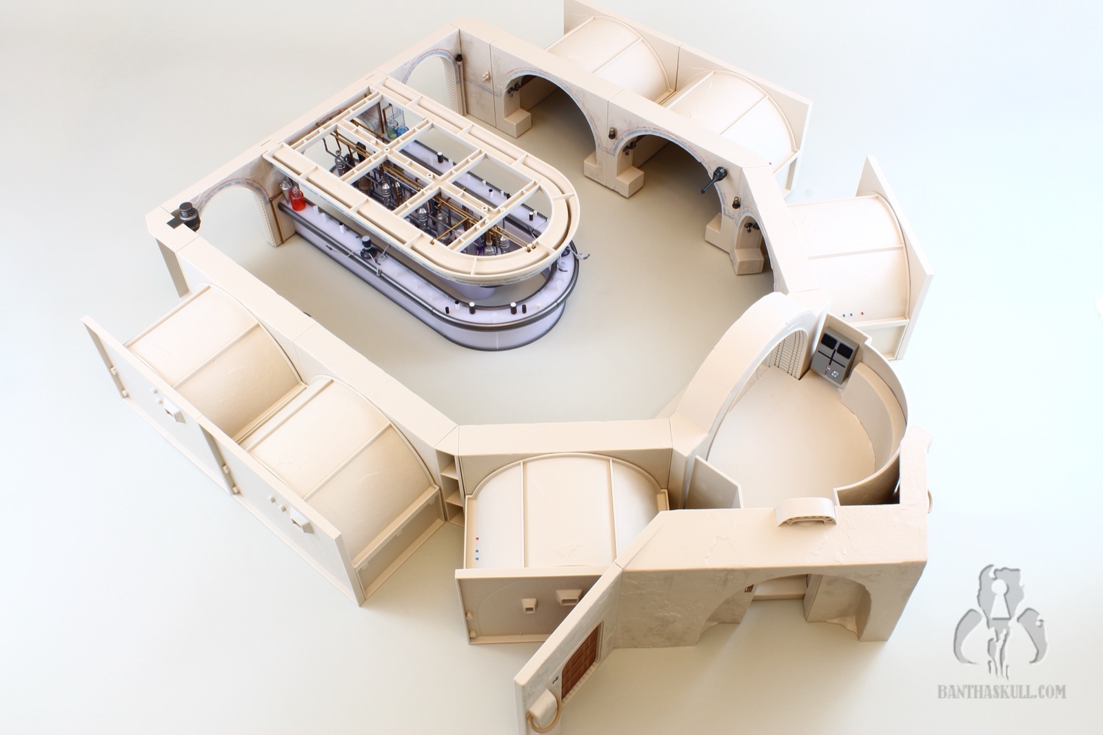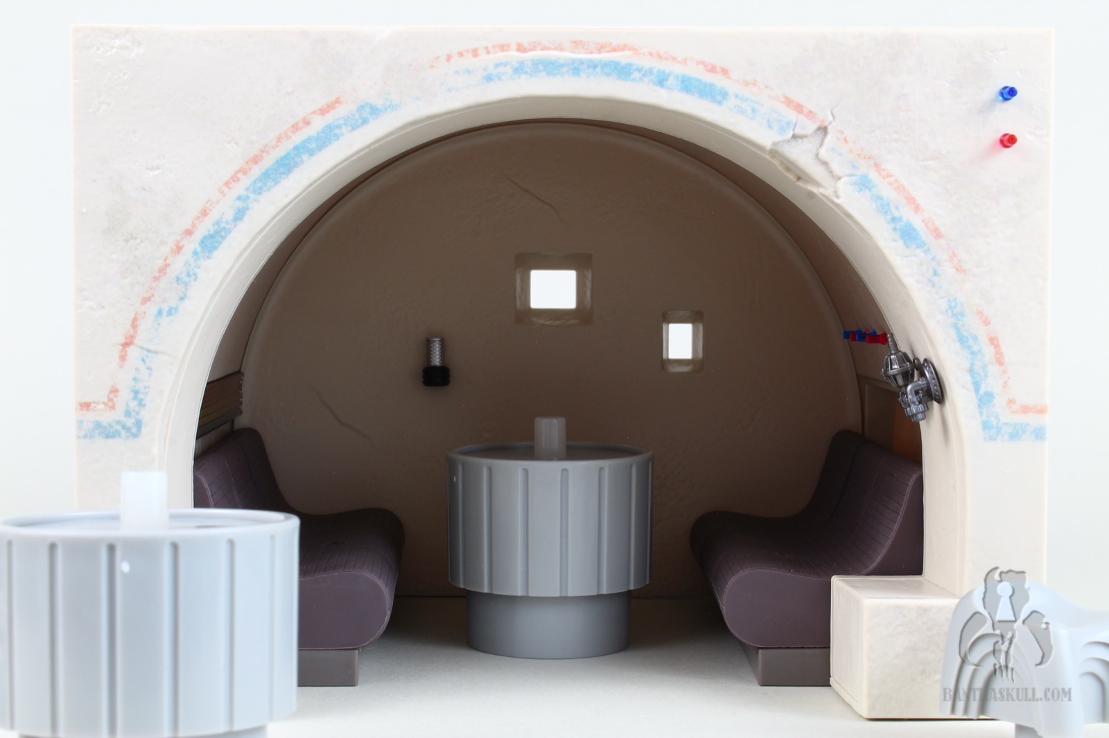 To that last point, it’s difficult to move the Cantina in general. The bar sections do not stick together well. Any movement pulls the sections apart. If you merely look at the hookahs, you’re going to dislodge one or more of the pipes. At one point I actually considered super gluing the hookah pipes in place, but I don’t want to lose the utility of being able to rotate them as needed for display. I may glue the bar together. I’m still debating wether or not I should. I probably won’t. But here’s the good thing. This isn’t a vehicle or something destined to be moved. It’s a display piece. You just need to set it up, leave it in place, and bask in its glory.