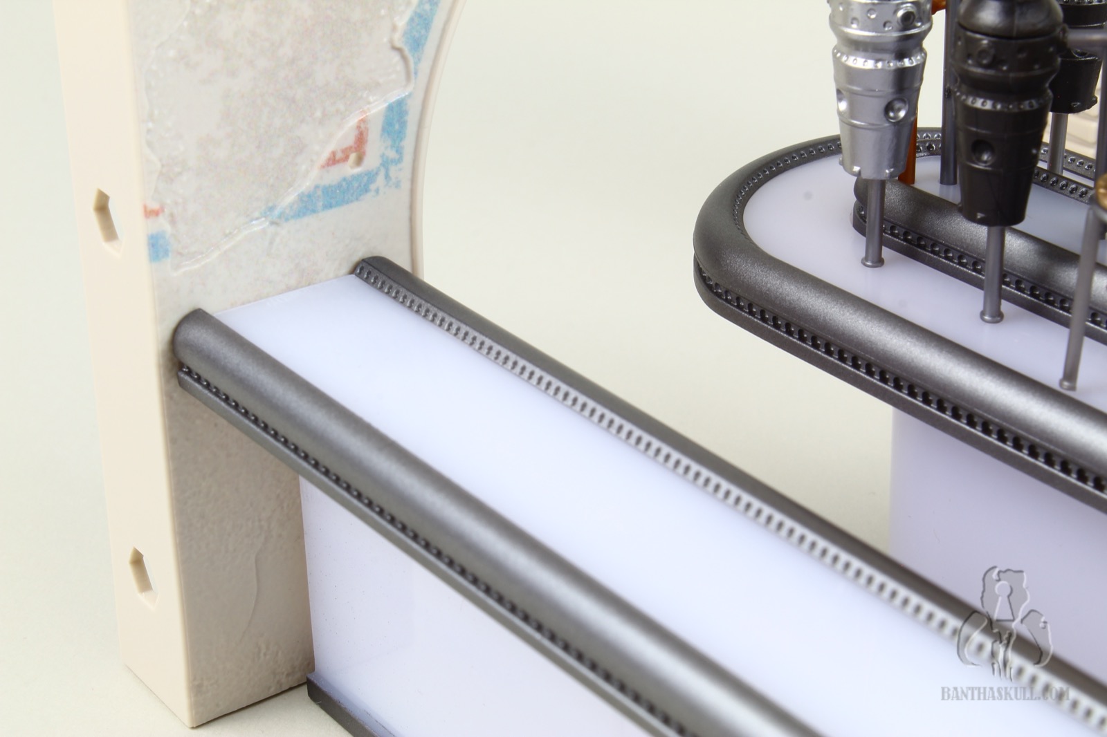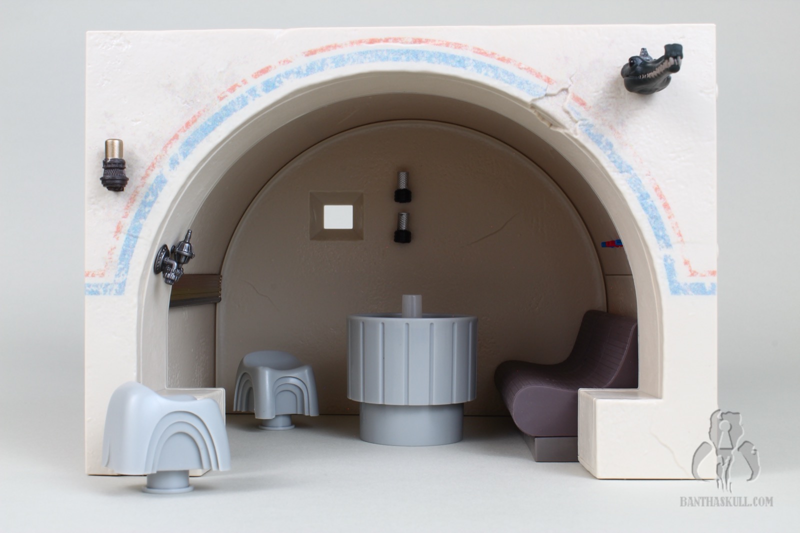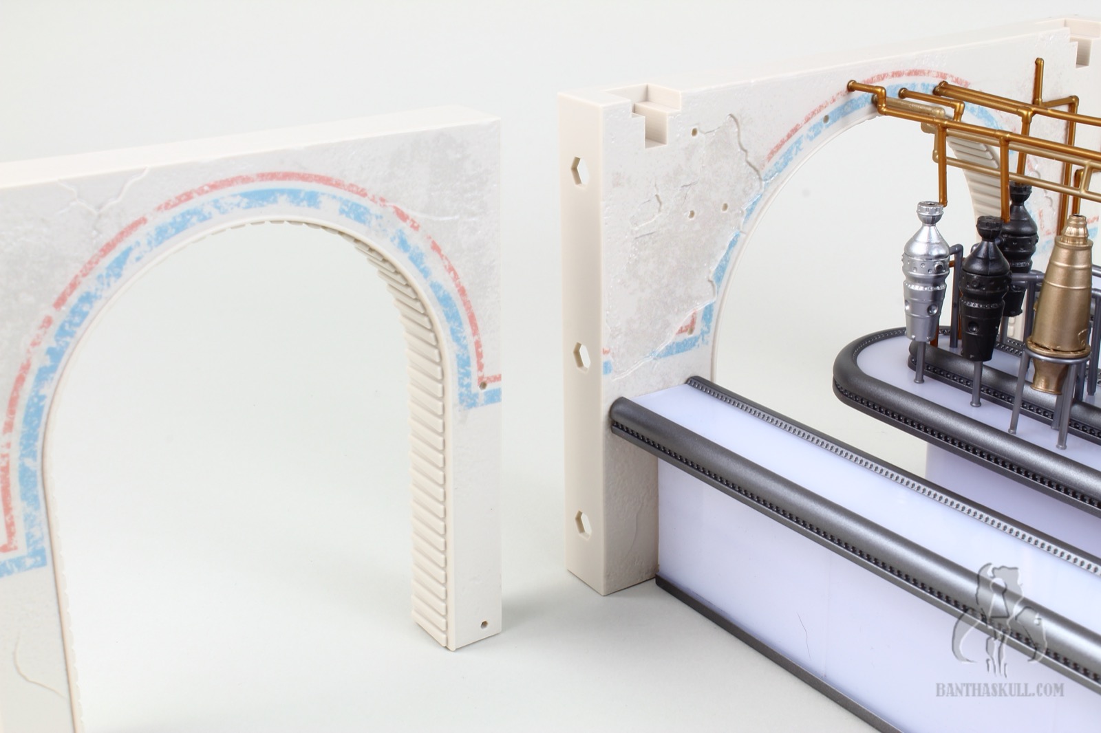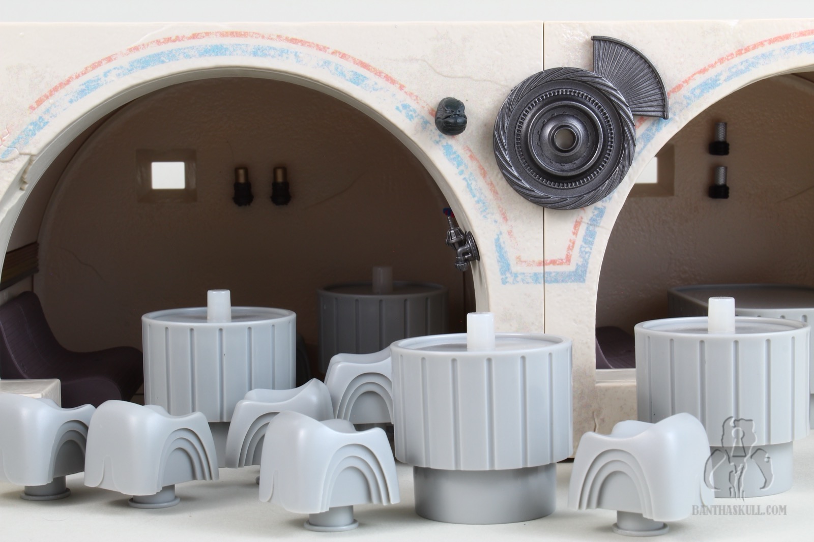 To that last point, it’s difficult to move the Cantina in general. The bar sections do not stick together well. Any movement pulls the sections apart. If you merely look at the hookahs, you’re going to dislodge one or more of the pipes. At one point I actually considered super gluing the hookah pipes in place, but I don’t want to lose the utility of being able to rotate them as needed for display. I may glue the bar together. I’m still debating wether or not I should. I probably won’t. But here’s the good thing. This isn’t a vehicle or something destined to be moved. It’s a display piece. You just need to set it up, leave it in place, and bask in its glory.
