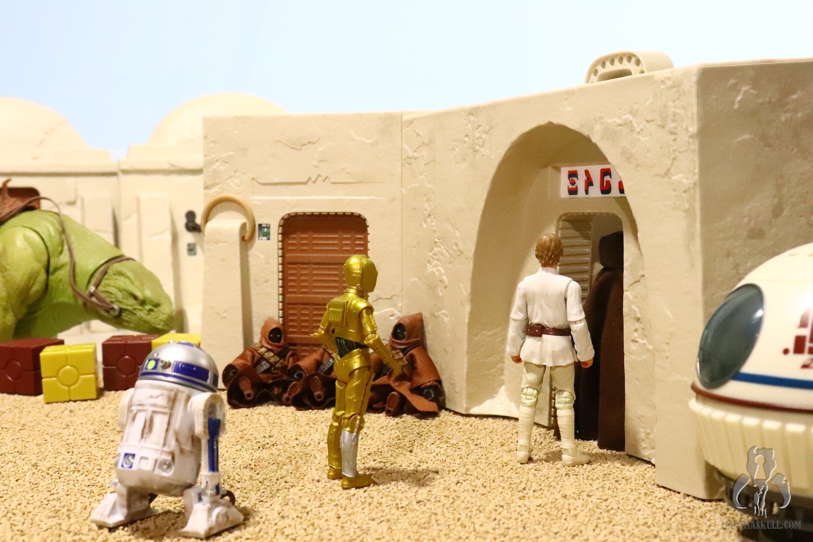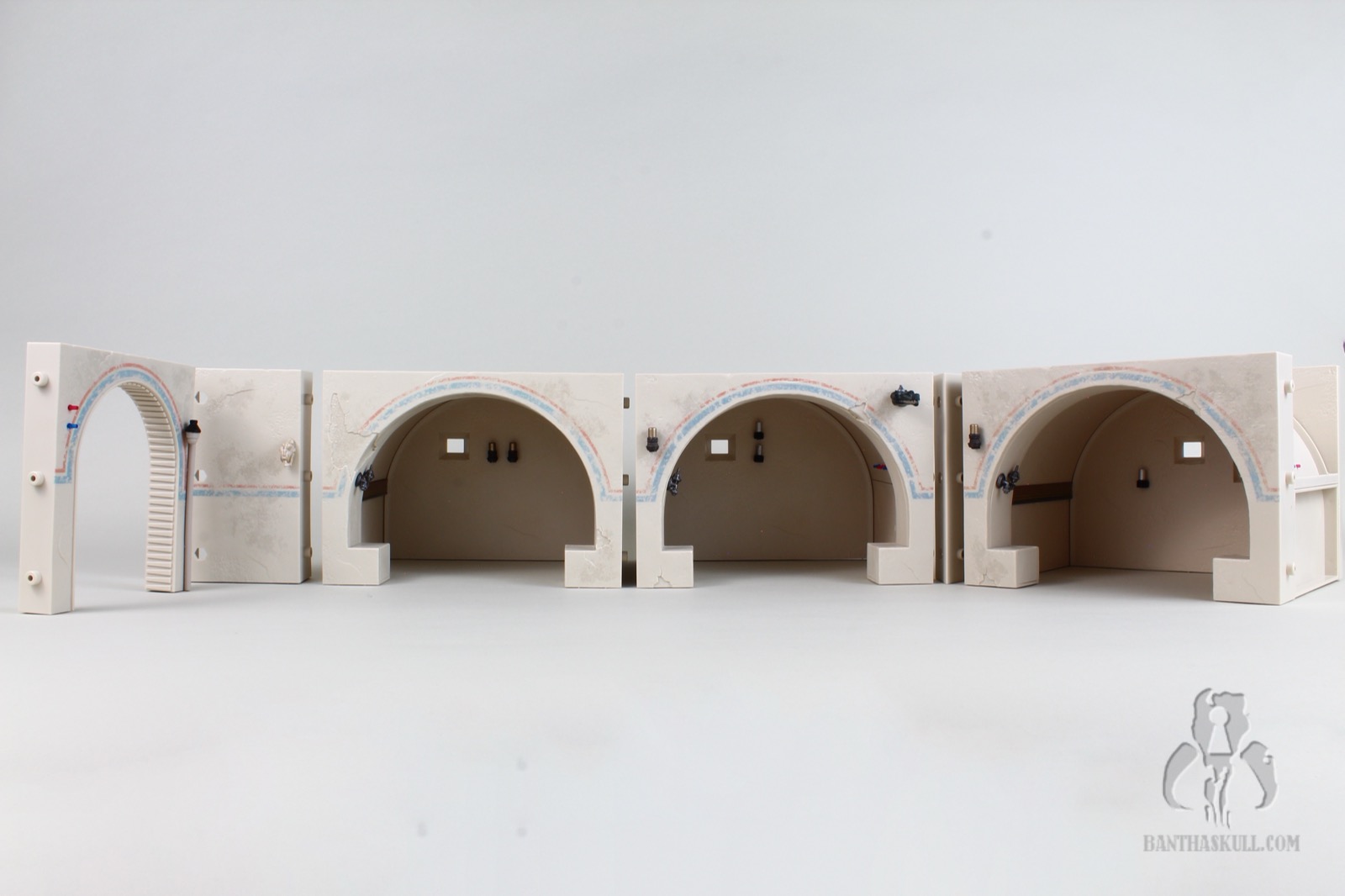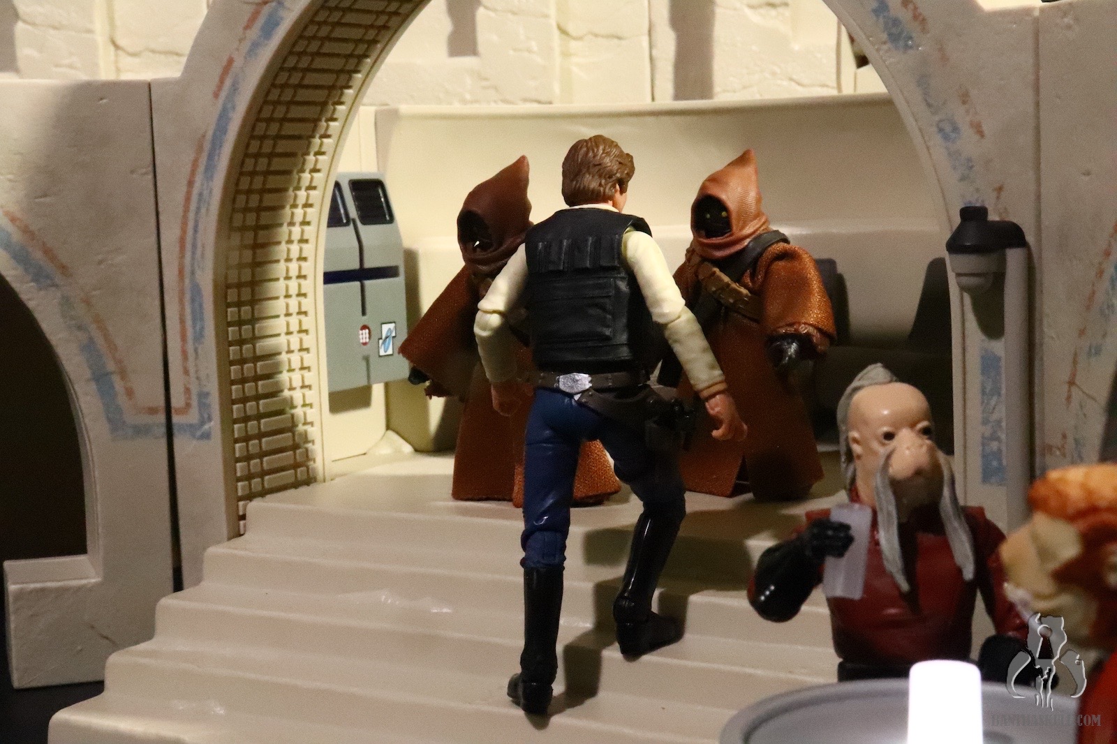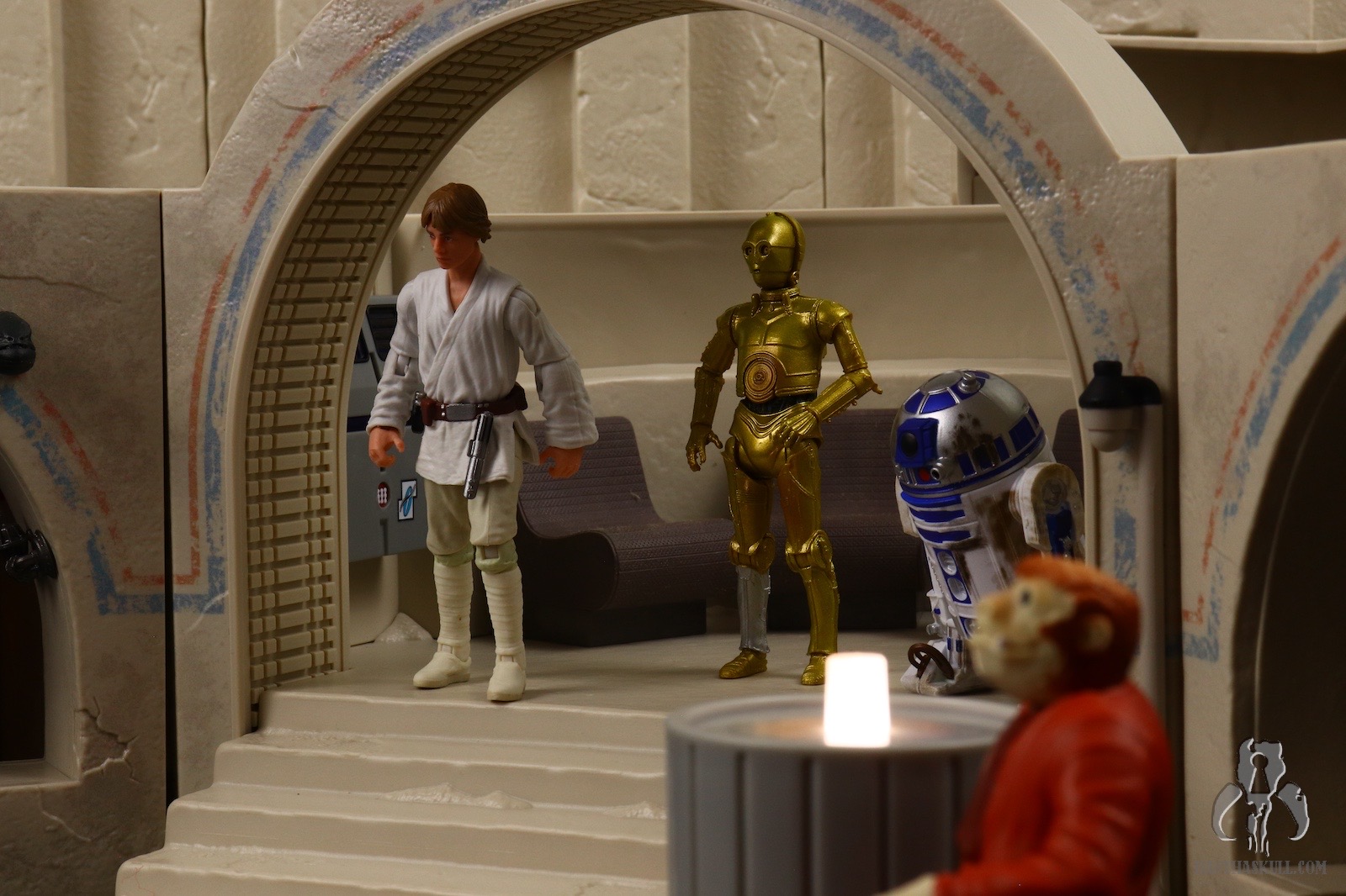 If all we got was the Cantina itself, this would absolutely be a dream come true for me, but it doesn’t stop there. We get five incredible figures to include the first ever Tonnika sisters. I didn’t get to interact with each figure individually like I would for a figure review, so I will leave that commentary to Bret (if he chooses). All I know is that all the figures did exactly what I wanted them to for the purposes of the photography. I’m going to display the Cantina in profile so the lack of a roof, and the lack of exterior walls doesn’t bother me. The only complaint about incompleteness I have is with the entrance. The back wall should go up higher, probably to the point of being completely enclosed. It’s just weird that the entrance arch is higher than the back wall. It’s jarring as you look through it. It would be like looking into a room in your house, and seeing no roof.
