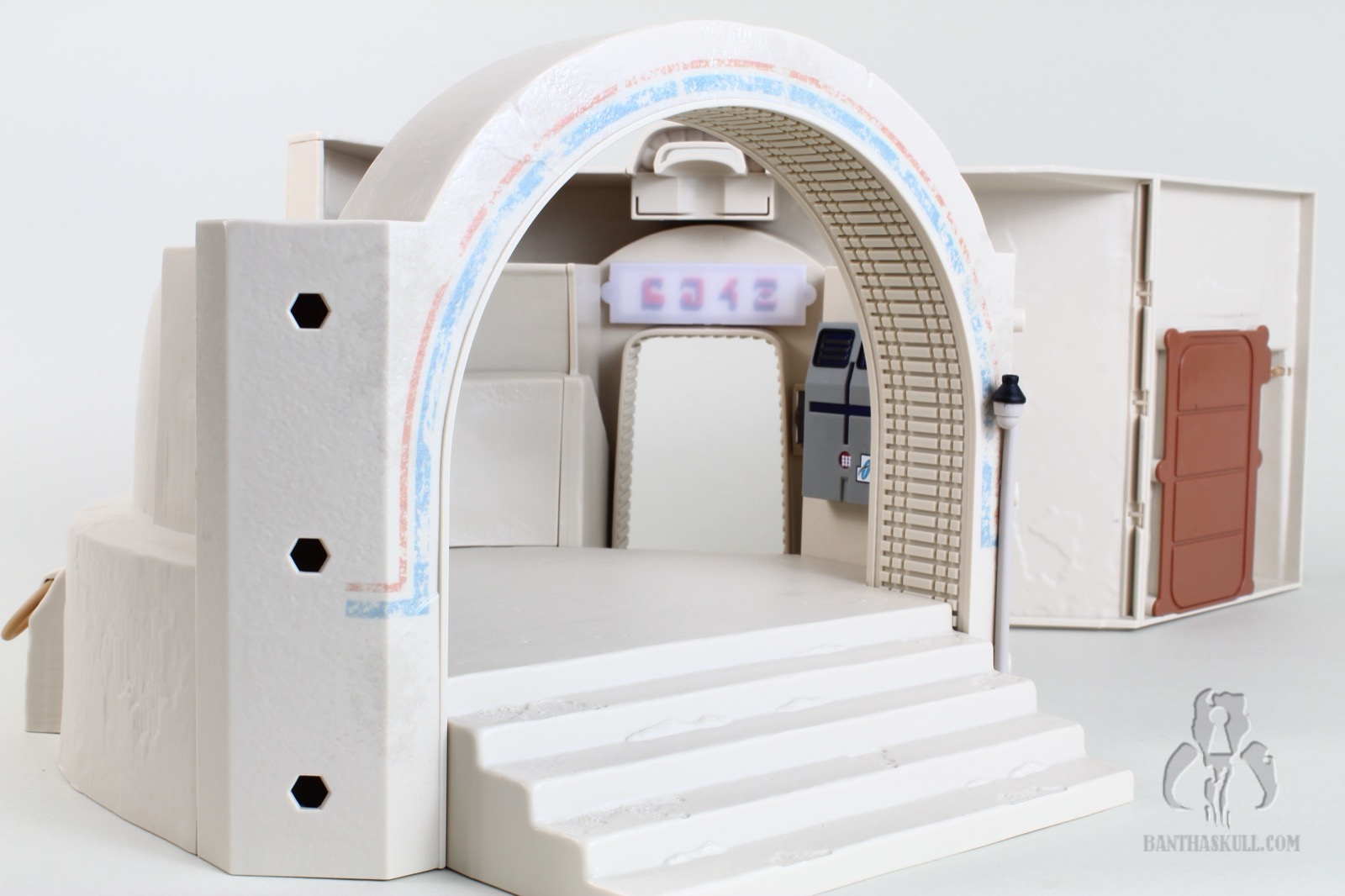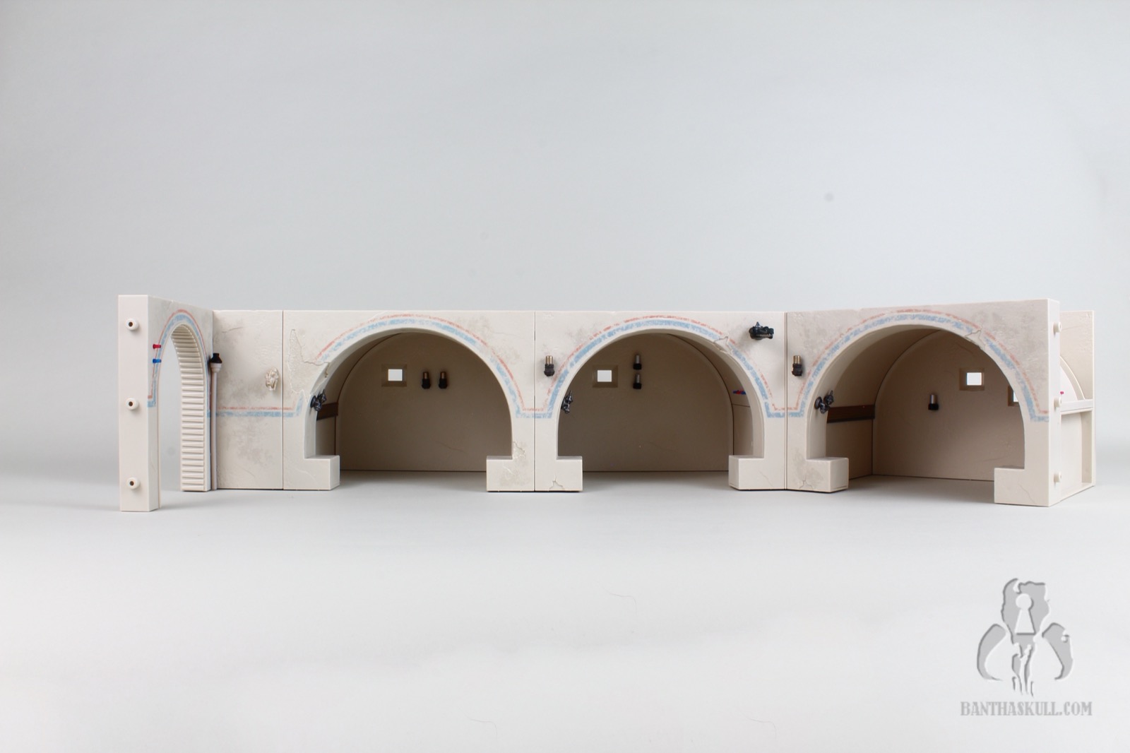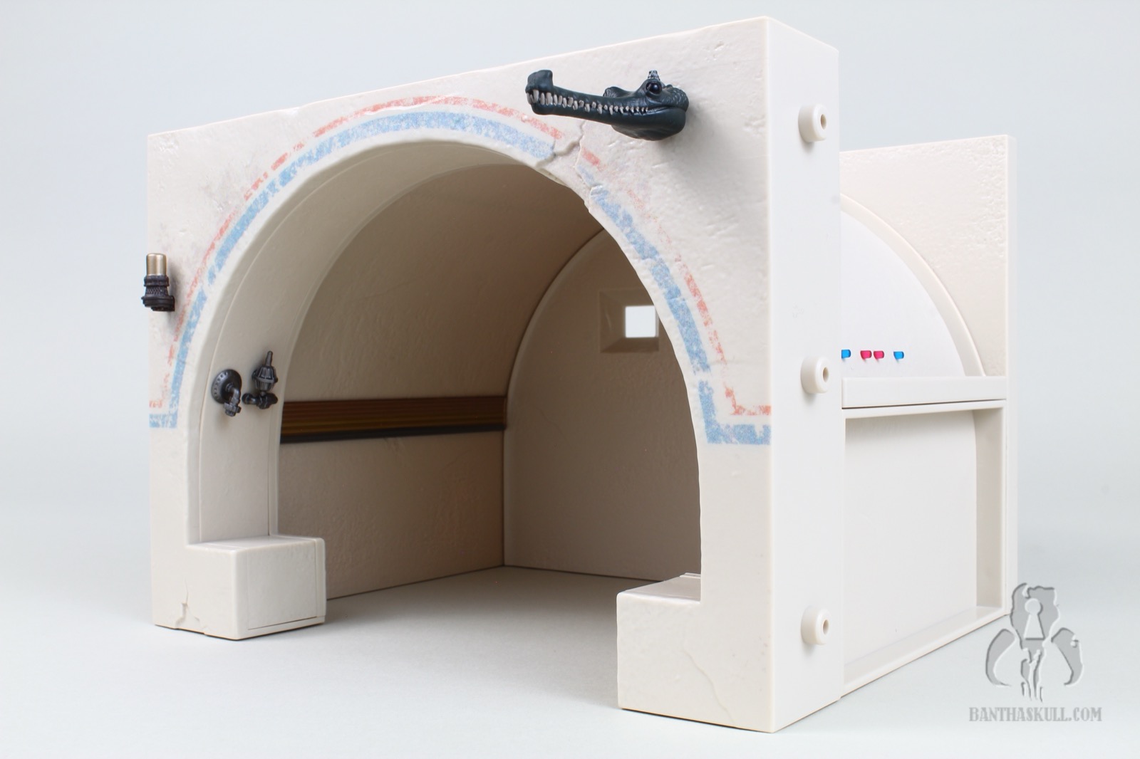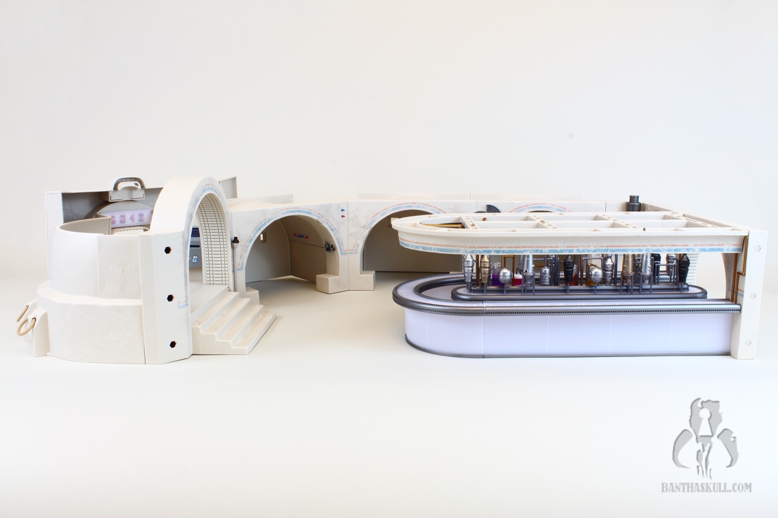 If all we got was the Cantina itself, this would absolutely be a dream come true for me, but it doesn’t stop there. We get five incredible figures to include the first ever Tonnika sisters. I didn’t get to interact with each figure individually like I would for a figure review, so I will leave that commentary to Bret (if he chooses). All I know is that all the figures did exactly what I wanted them to for the purposes of the photography. I’m going to display the Cantina in profile so the lack of a roof, and the lack of exterior walls doesn’t bother me. The only complaint about incompleteness I have is with the entrance. The back wall should go up higher, probably to the point of being completely enclosed. It’s just weird that the entrance arch is higher than the back wall. It’s jarring as you look through it. It would be like looking into a room in your house, and seeing no roof.