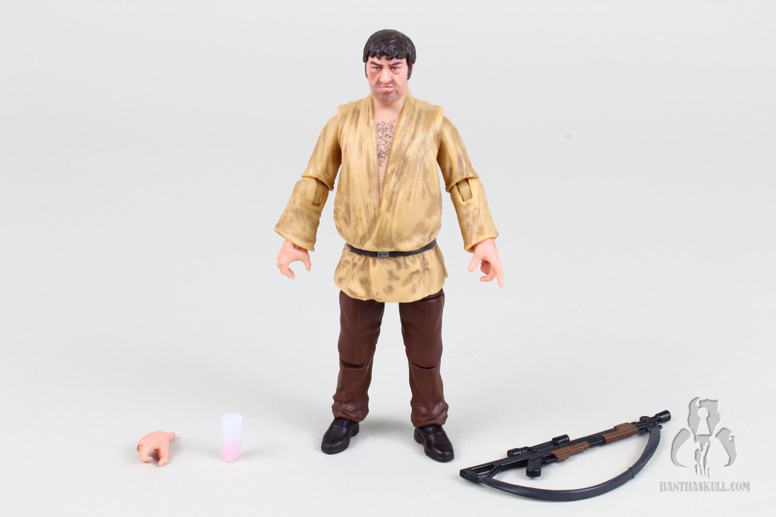 For me, the figures were (mostly) gravy, but now that I have them in hand, I marvel at them all. First, we get Wuher. As I’ve beaten this horse to death recently during discussions about the LAAT/i HasLab, I wasn’t initially thrilled with most of the figures chosen to accompany the Cantina set. But I understood that Wuher was necessary as he’s essentially the “pilot” of this ship, and his exclusion would be a crime. And I also realize that the 1999 Wuher is woefully outdated, even though it was tweaked and repainted in 2006. This version is insane. The sculpt is awesome, the likeness is great, the paint job is top notch (especially the chest hair), and the articulation is of the Jedi-Level variety. For a guy who doesn’t climb walls, he certainly can do all kinds of Matrix-y moves. He’s got a swappable right hand so he can grip his included rifle well, while the alternate hand grips his included bar glass well. My favorite part is the pointing right hand, so he can accurately gesture to Threepio and Artoo as he yells at Luke that he doesn’t serve their kind - and the pose is made perfect with the ball jointed waist articulation. 10/10.