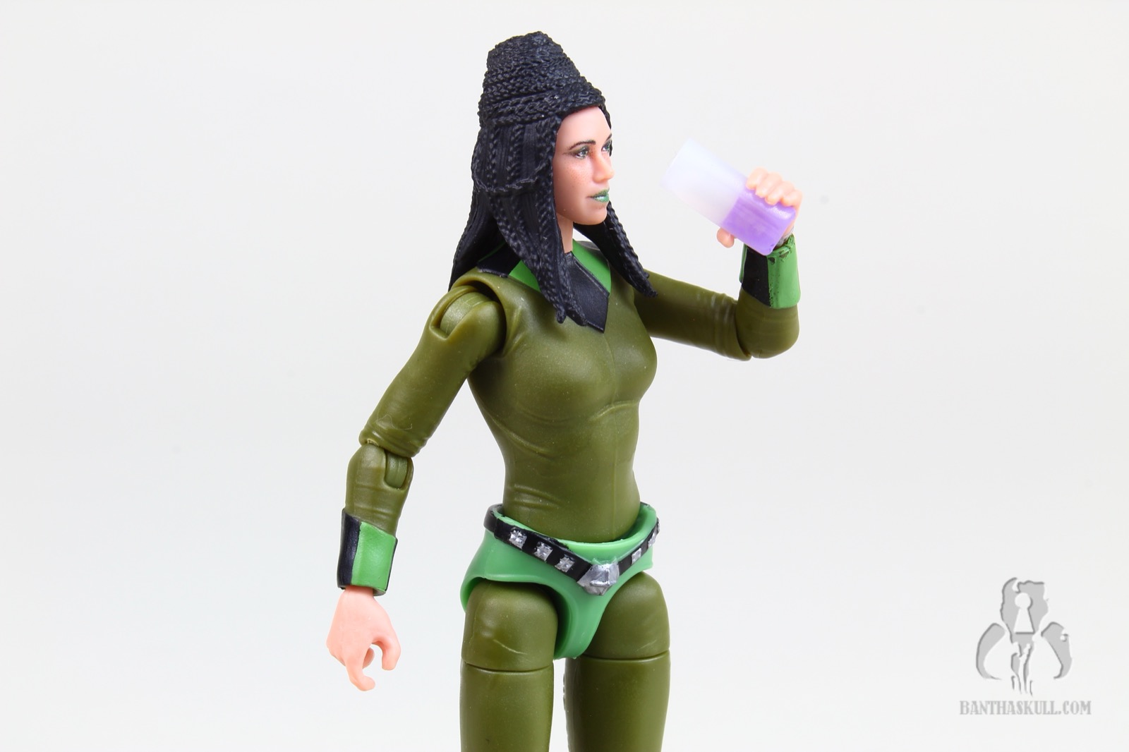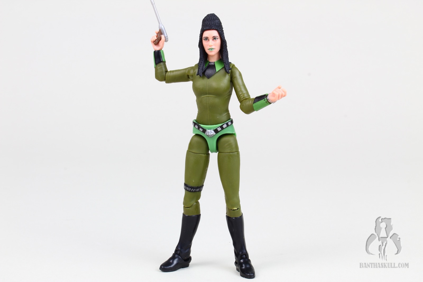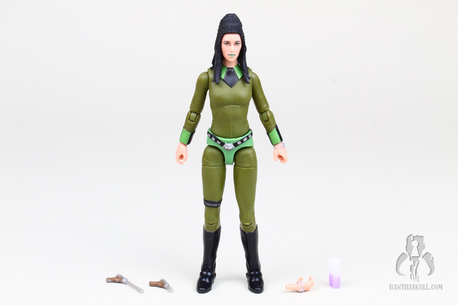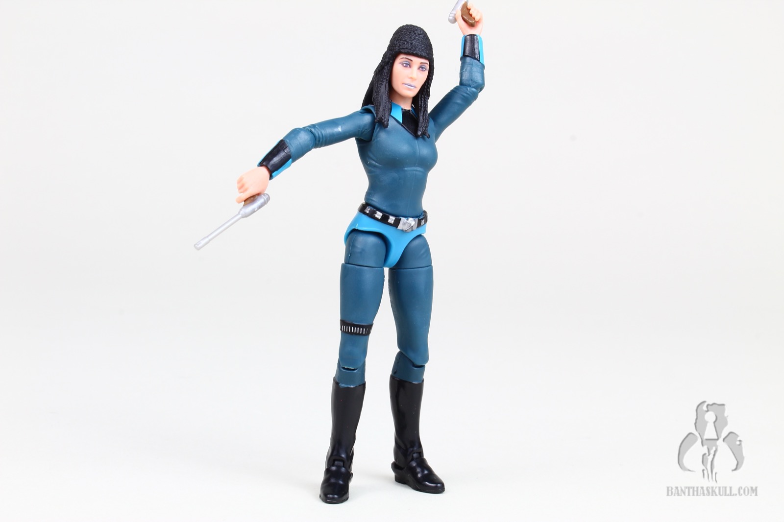 Next up are the Tonnika Sisters. If you know anything about life, you know that 3.75” Star Wars is the Undisputed King of World Building, and they have been conspicuously absent ever since Kenner started pumping out background aliens in the line. After almost 725 years, multiple changes to the world order, a never-ending barrage of litigation, countless mob hits, Rick Astley, iron-clad NDA’s, The Helmet Catch, and the rise of Bryan Cranston, we finally have the Tonnikas in our collections. Hasbro went all out, avoiding the easy trap of repainting one base figure and calling it a day. Senni is significantly taller than Brea. While they do share some parts, it looks like the thighs/hips, belt/bikini bottoms, and torsos are different. The left hands are also different, as Senni sports a sculpted bracelet which is absent from Brea. And believe it or not, the head/face/hair sculpts are different. While the hair styles are essentially the same, Hasbro sculpted them each into unique parts for each figure. And the faces are definitely not the same underneath the PhotoReal paint applications. Amazing stuff. Each figure comes with a pair of blasters reminiscent of those from Naboo, different bar glasses, and swappable left hands (and again, Senni’s has the bracelet). The figures are an astonishing addition to the line and, for many collectors, are the stars of the set. 10/10 and 10/10.