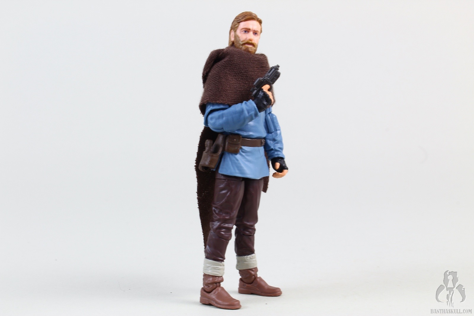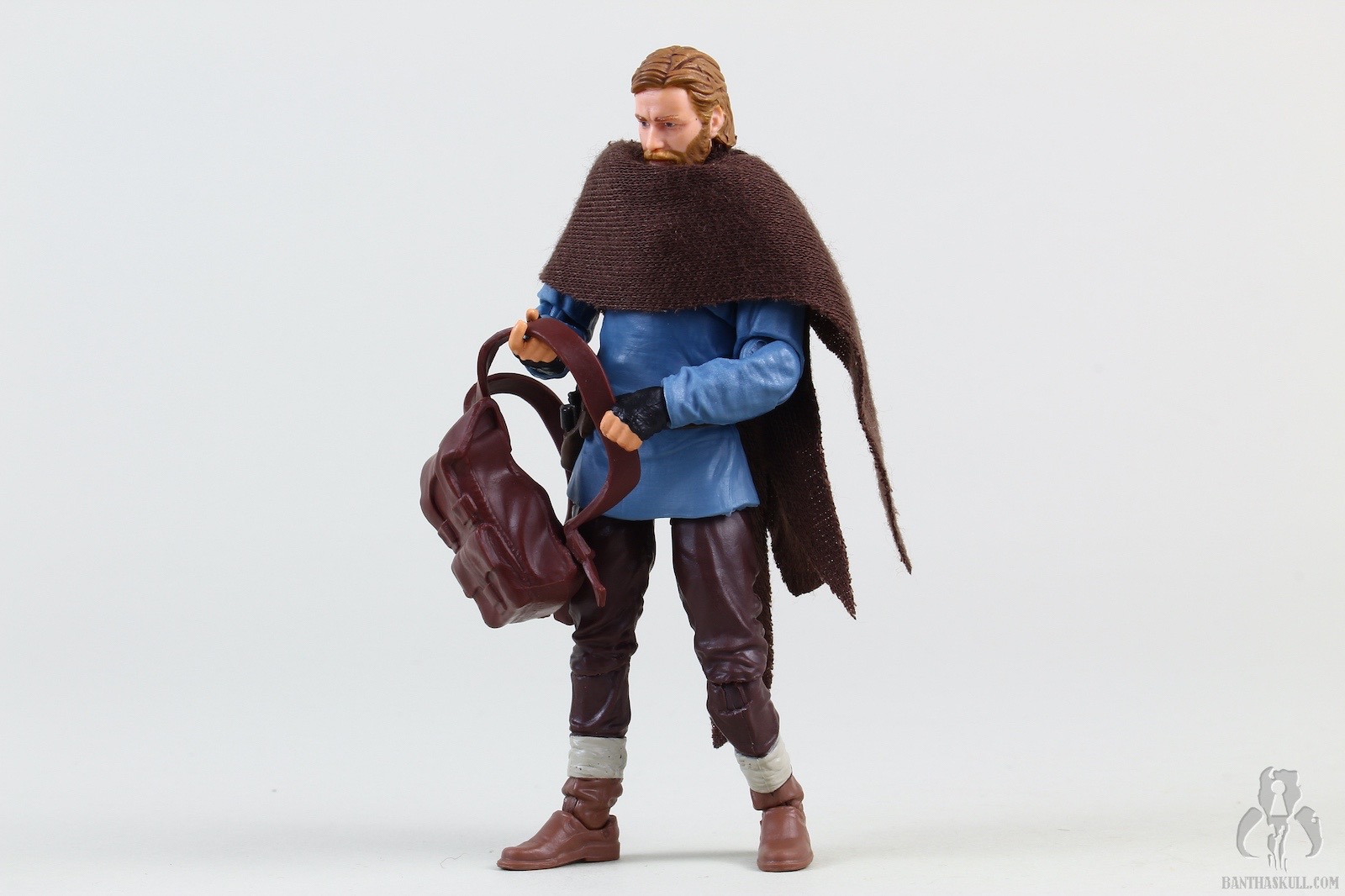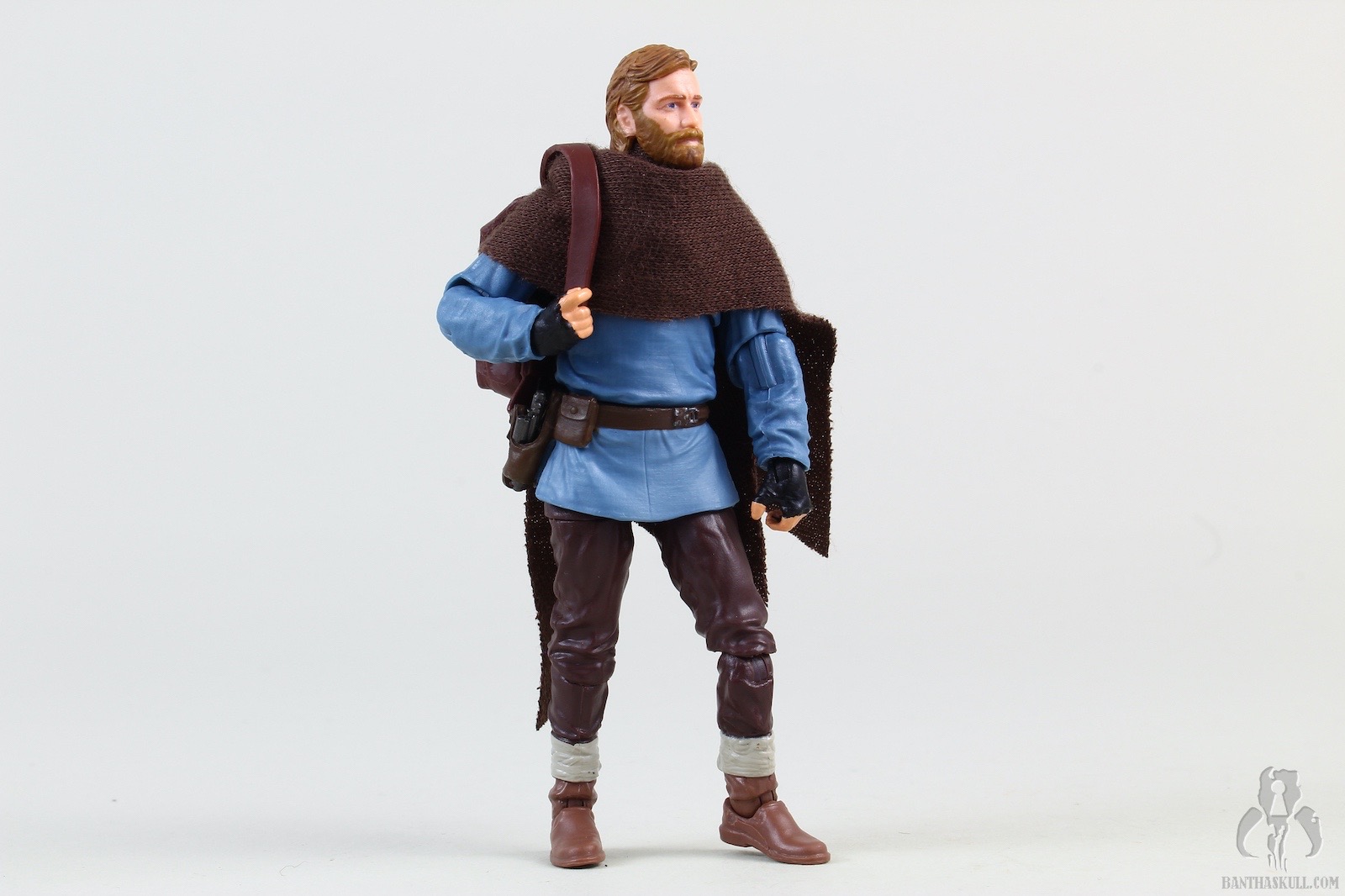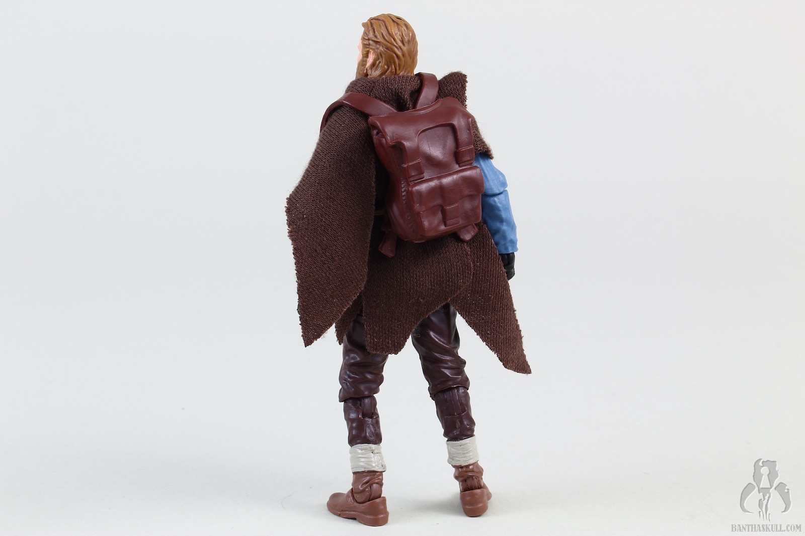 Ben Kenobi (Tibidon Station) takes the base figure from the first version VC245 Obi-Wan Kenobi (Wandering Jedi)” target=“_blank”>Obi-Wan Kenobi (Wandering Jedi), and gives it a completely new paint job to reflect the different coloring of the outfit he wore throughout the majority of the first episode. The sculpt of the figure itself is unchanged, but the new paint makes it feel significantly different. The paint on Ben’s face is a bit better this time around, so he doesn’t look like a mouth-breather. We get the same hilt, blade, and pistol as the original figure, but we get two new accessories. A new shmata replaces his more familiar Jedi robes, and he also gets an all new backpack. When you put it all together, it definitely feels like a new figure, and does the job of giving us the right outfit for the first part of the story.
