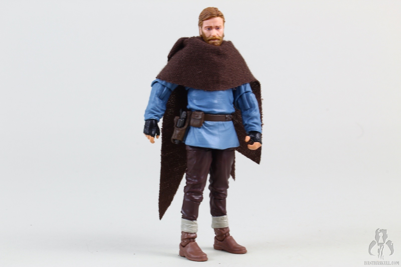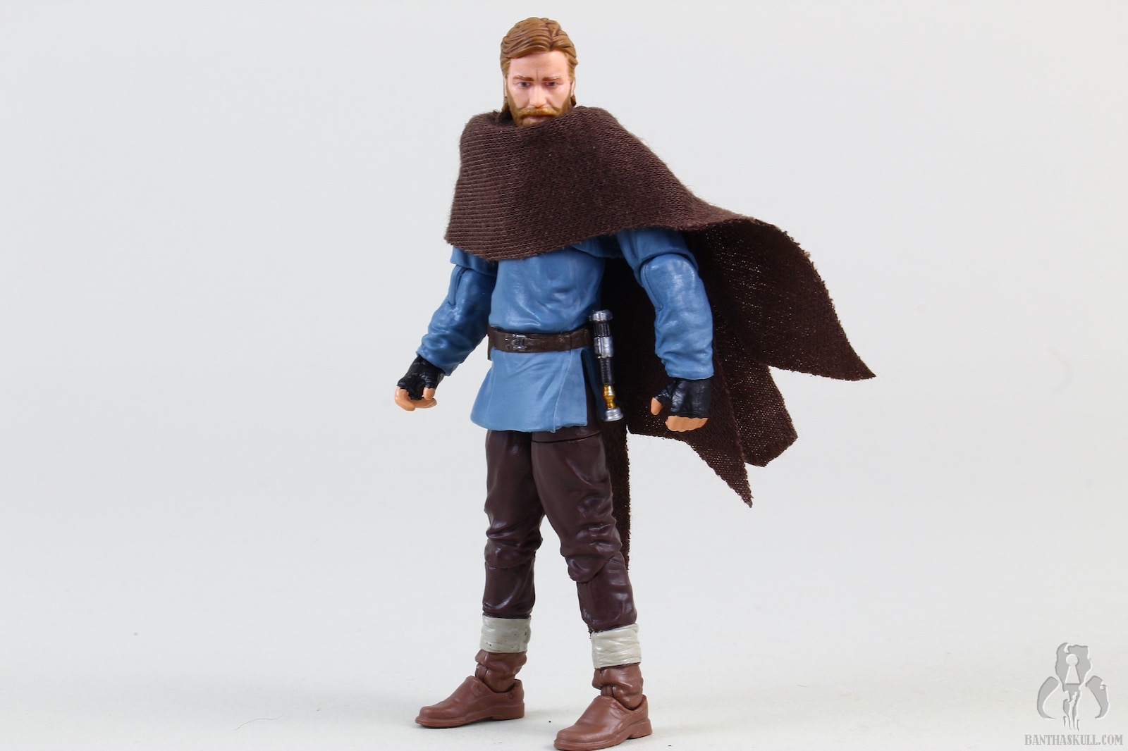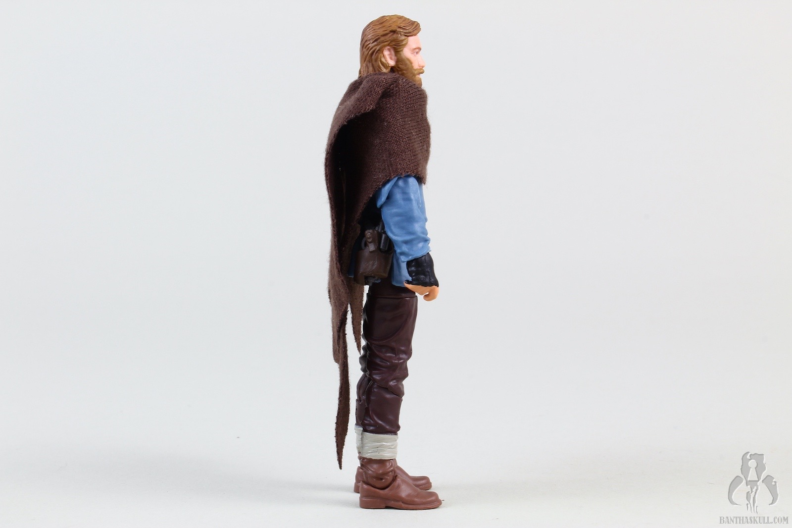 Ben Kenobi (Tibidon Station) takes the base figure from the first version VC245 Obi-Wan Kenobi (Wandering Jedi)” target=“_blank”>Obi-Wan Kenobi (Wandering Jedi), and gives it a completely new paint job to reflect the different coloring of the outfit he wore throughout the majority of the first episode. The sculpt of the figure itself is unchanged, but the new paint makes it feel significantly different. The paint on Ben’s face is a bit better this time around, so he doesn’t look like a mouth-breather. We get the same hilt, blade, and pistol as the original figure, but we get two new accessories. A new shmata replaces his more familiar Jedi robes, and he also gets an all new backpack. When you put it all together, it definitely feels like a new figure, and does the job of giving us the right outfit for the first part of the story.