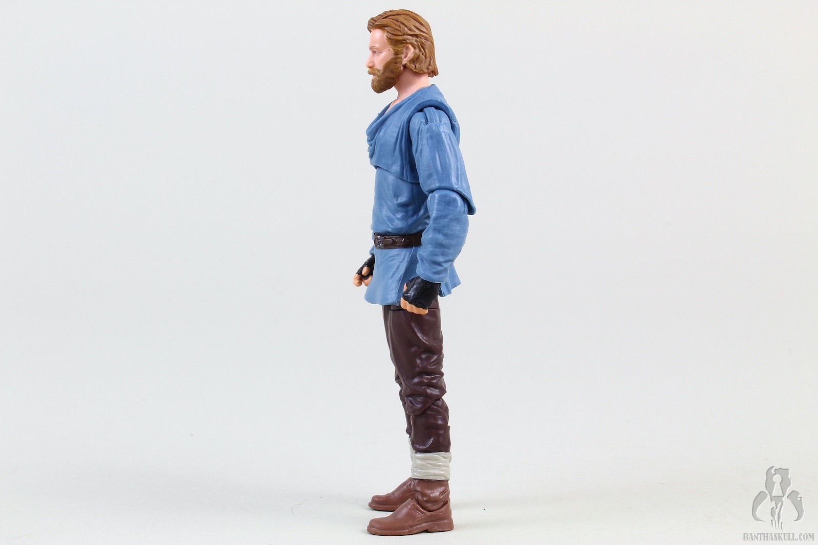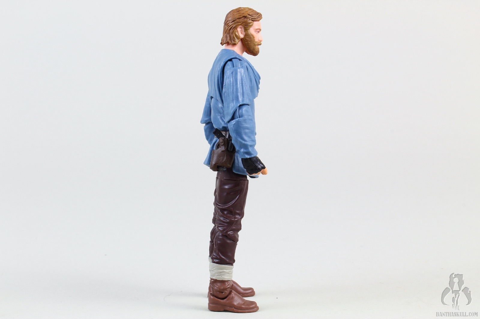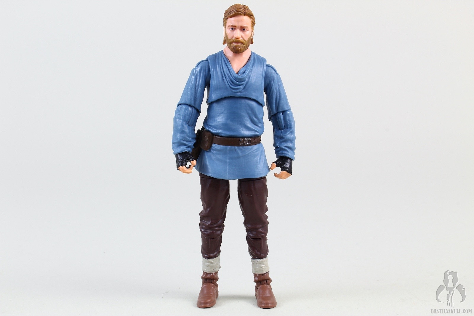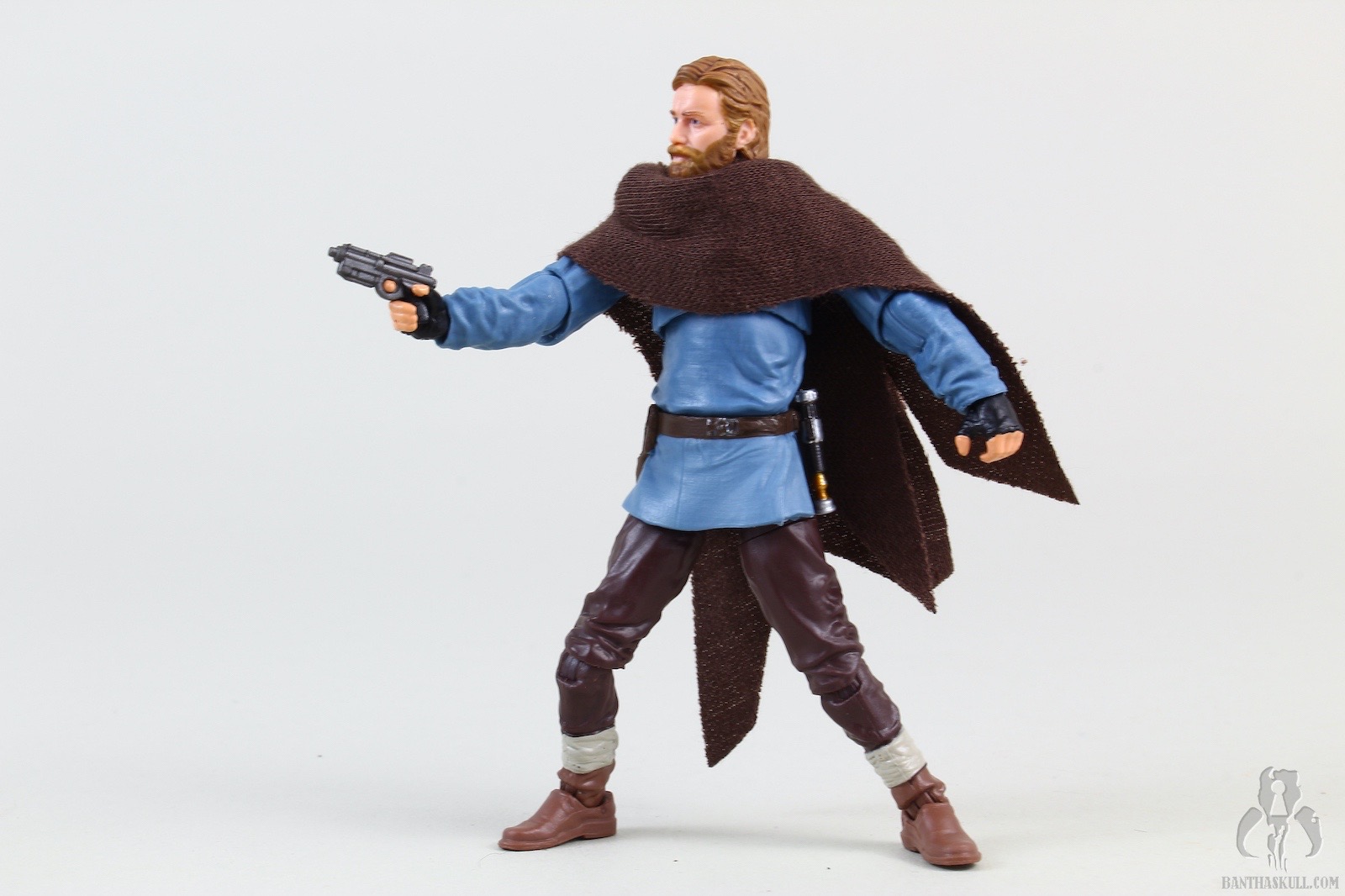 Ben Kenobi (Tibidon Station) takes the base figure from the first version VC245 Obi-Wan Kenobi (Wandering Jedi)” target=“_blank”>Obi-Wan Kenobi (Wandering Jedi), and gives it a completely new paint job to reflect the different coloring of the outfit he wore throughout the majority of the first episode. The sculpt of the figure itself is unchanged, but the new paint makes it feel significantly different. The paint on Ben’s face is a bit better this time around, so he doesn’t look like a mouth-breather. We get the same hilt, blade, and pistol as the original figure, but we get two new accessories. A new shmata replaces his more familiar Jedi robes, and he also gets an all new backpack. When you put it all together, it definitely feels like a new figure, and does the job of giving us the right outfit for the first part of the story.