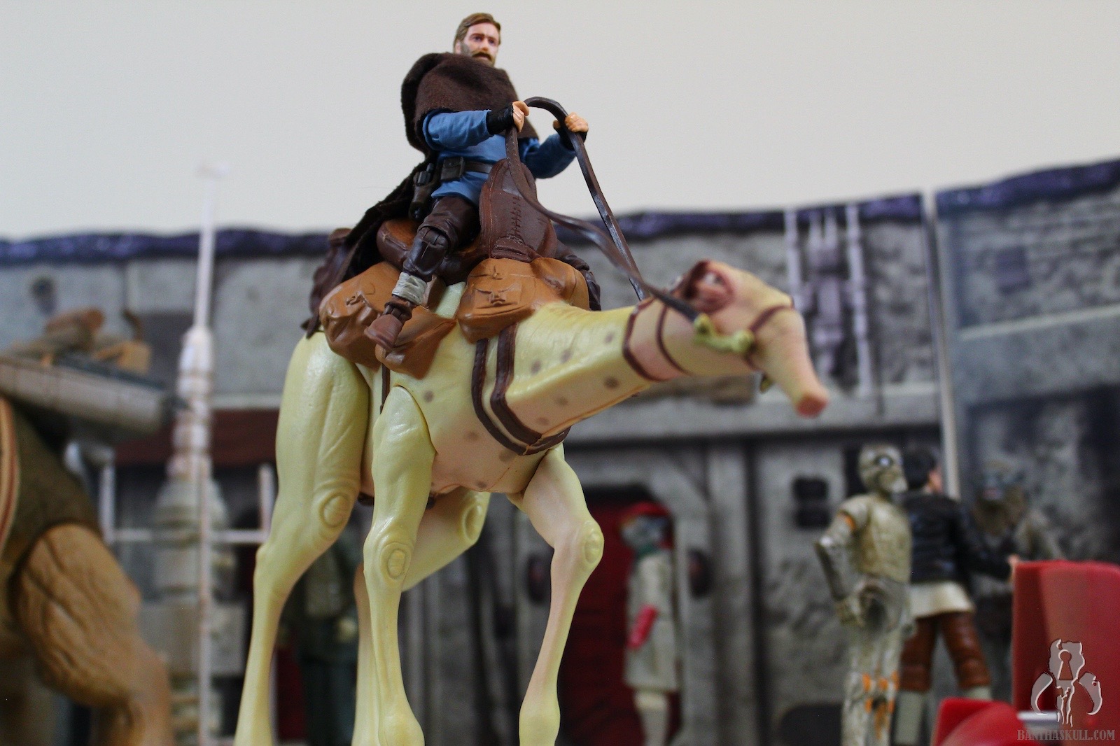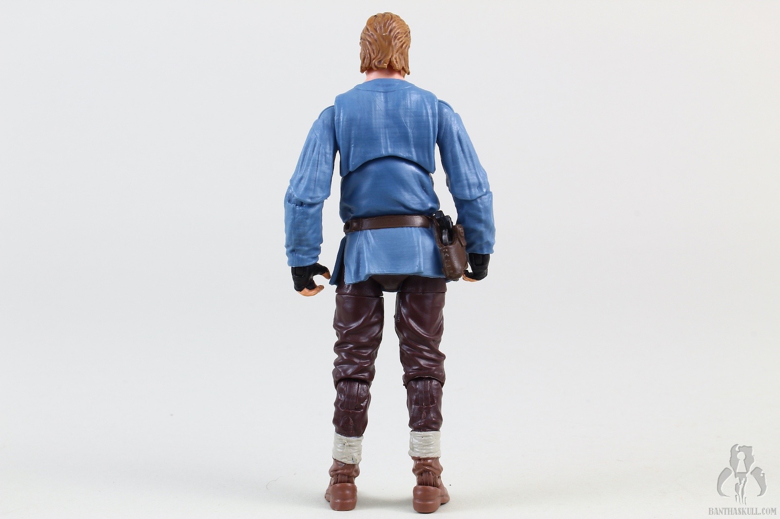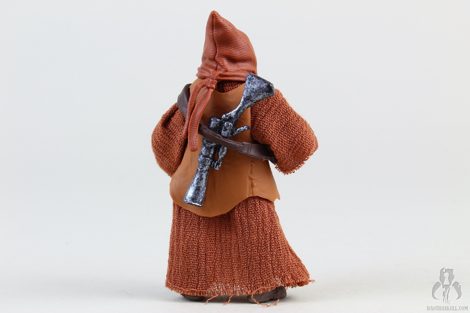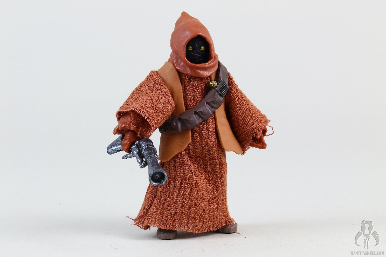 The second figure is a more dramatic change, and we get Teeka, the first named Jawa in the history of the line (I think?). Again, Hasbro started with VC203 Offworld Jawa (Arvala-7) as the base figure, and gave it a completely new paint job to represent the more familiar brown tones of the Tatooine clans. robe seems to be a slightly different material, and is also sewn differently. This time there is no opening in the front, so instated of a robe, it actually is more like a big hoodie. To complete the outfit, Teeka gets a new bandolier that differs from the Arvala-7 Jawa, and also a removable vest. Although the coloring is a little bit lighter than we might be used to, you could take off the vest, and basically have a generic Tatooine Jawa. Even keeping the vest, you could also have one of the “Purchase of the Droids” Jawa variants. Teeka comes with the typical ion blaster, but Hasbro also sculpted two new junk sculpts. I think I would have liked a new T-16 model, but these 2 pieces are nice little environmental pieces. I actually struggled to find the exact inspirations on screen, but eventually I saw the larger box in the very last scene of the series when Obi-Wan meets Luke. Young Luke has the box accessory, for some reason. I couldn’t find the cylindrical item, but in any case, it makes a nice figure with terrific accessories.