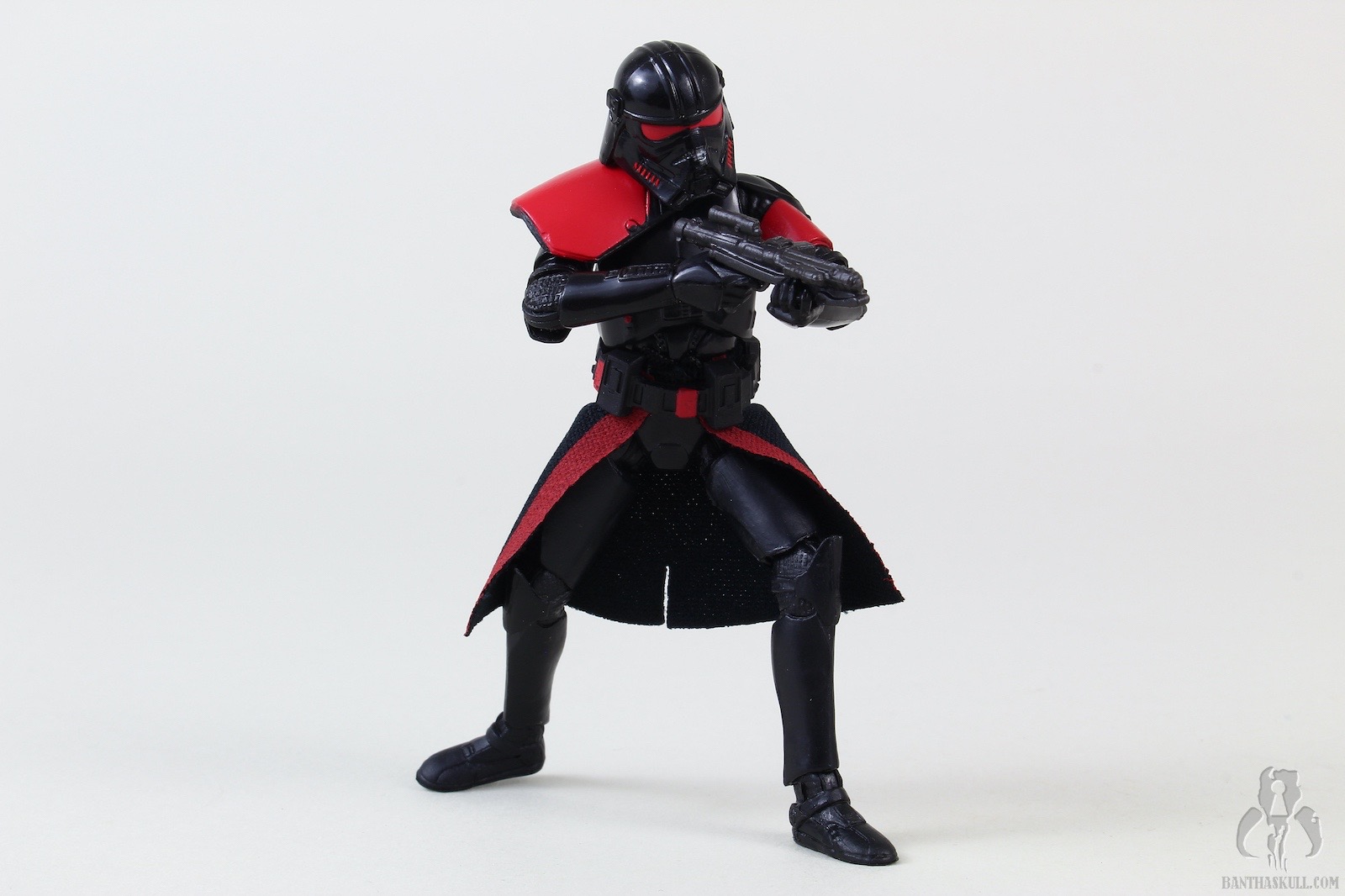The nicer thing about these 2 figures is that they interact directly on screen. The third figure does not interact with either, as Obi-Wan change outfits by the time he faces off against these guys. The Purge Trooper (Phase 2 Armor) starts by using the VC195 Electrostaff Purge Trooper as the base. It is the only figure of the 3 that has new tooling. As far as I can tell, there’s the obviously all-new helmet, but it also looks like the upper arms and chest/torso are new. Additionally, this guy gets a new belt, and the kama is a bit of a different material this time around. Finally, there is a removable back pack (for some reason) and a pauldron different from the Phase I Purge Trooper (although I can’t tell if it’s new, or just reused from another trooper type.). The coloring is minimal, but effective and reasonably accurate to the source (someone correct me if I’m wrong). He includes a typical Imperial blaster, but probably should have come with a weapon more similar to the ones used by Death Troopers. This clone mold, of course, is based on VC45, and the ship has sailed and sunk a while ago on it. But it’s still a nice figure, and is a welcome addition to our collections.
