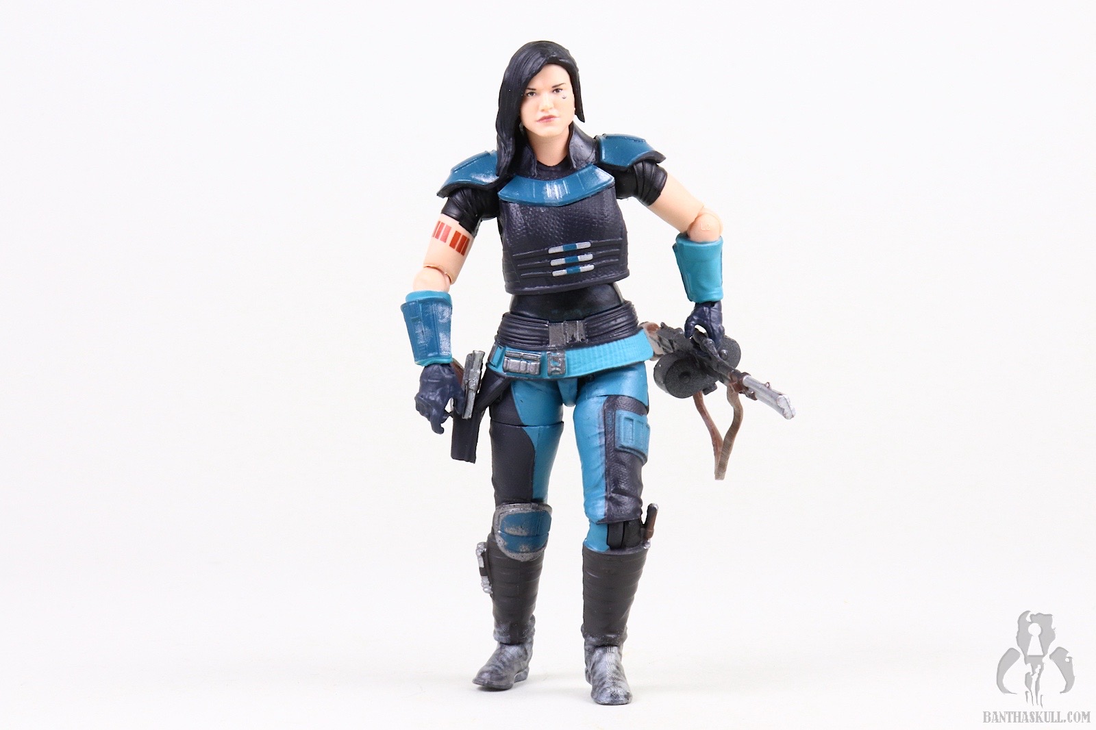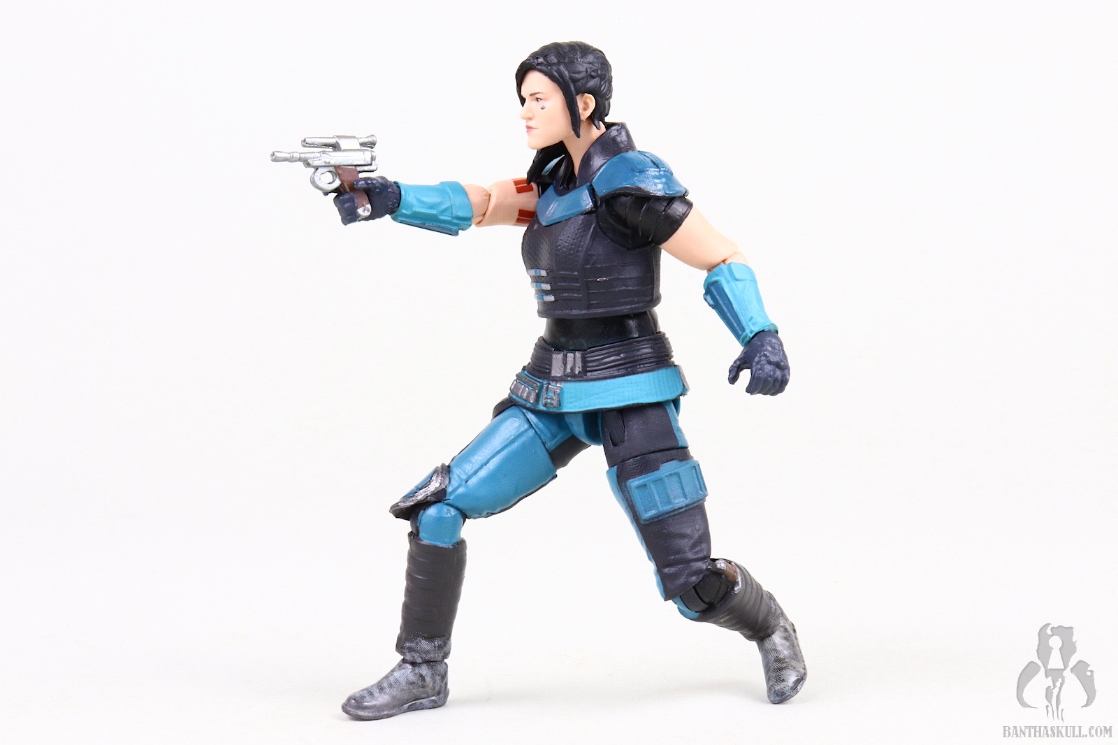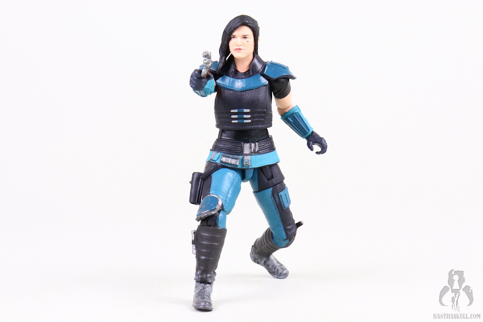Yesterday we reviewed The Mandalorian figure which I gave a perfect 10 score despite the fact that it comes with a less than ideal plastic cape. My reasoning was that the posability of the figure was so off the charts that I couldn’t bring myself to knock a full point off. This Cara Dune figure looks amazing, but I found myself a little frustrated with the posability in one area. If you look at the pictures above that show the figure aiming the pistol, you will see that I have it balancing on the tip of the back foot, which is not a pose in which you could hope to display your figure long term. This is particularly true if you’re like me and have a habit of banging into your shelves in the most painful way possible.