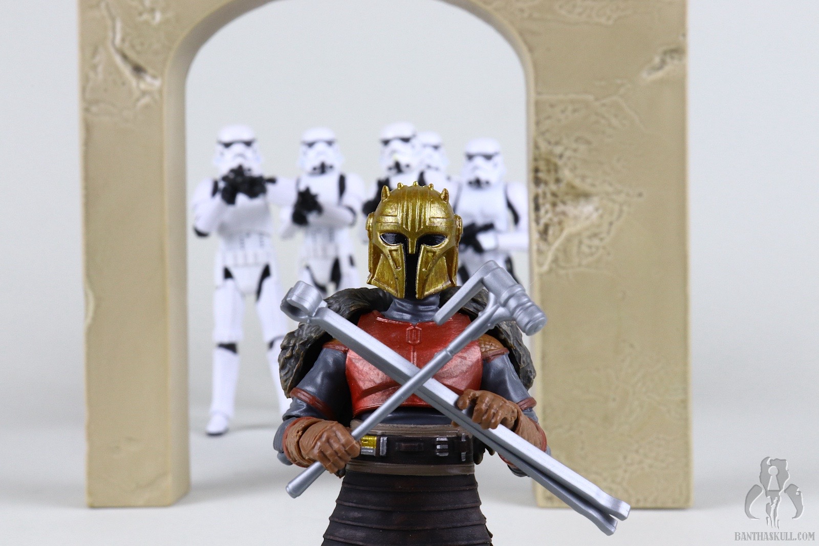 If the recent Moff Gideon figure is a fumble as you’re crossing the goal line due to the plastic cape, this Armorer figure is a touchdown and a missed extra point. It’s a nearly perfect figure except for one annoying issue along with a second nitpicky issue, but we shall get to those in a bit. First, we have to acknowledge how cool it is that we have this figure at all. While certainly not a “background” character, the Armorer is far from a primary character. She only appears in a few episodes, but leaves a big impact, and is the impetus for Mando’s journey in season two. Considering that we never got three quarters of the main characters from The Rise of Skywalker, getting a secondary character from The Mandalorian is pretty danged sweet. This is one of my favorite figures just because it exists.