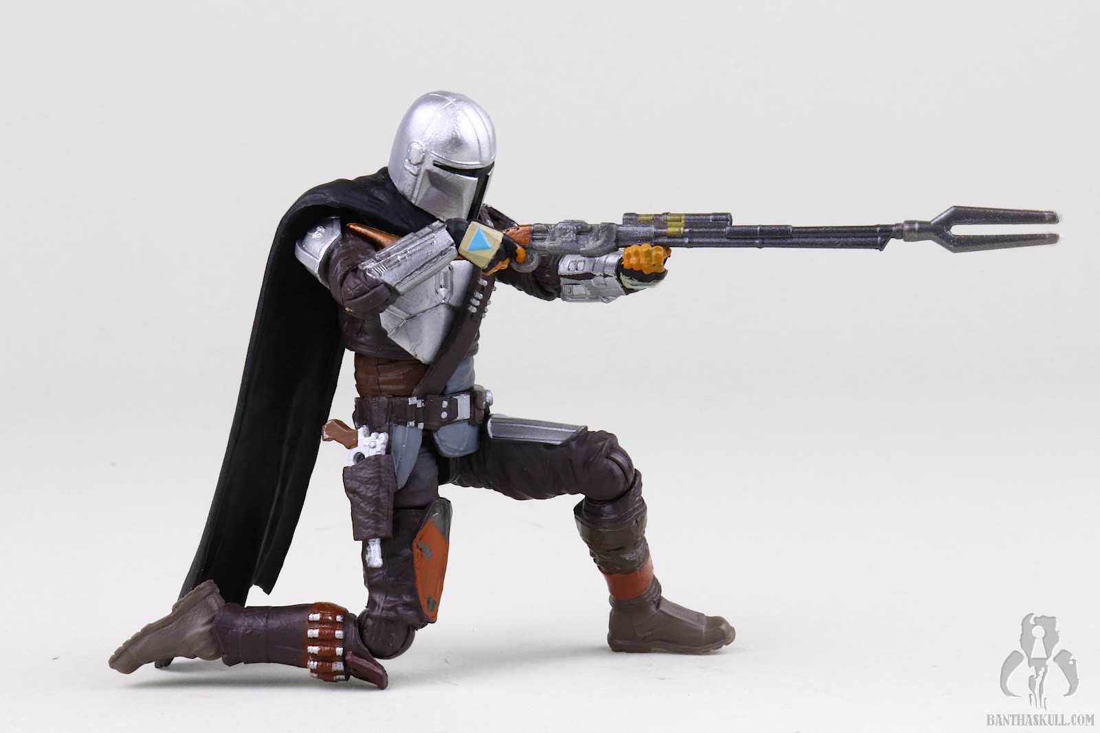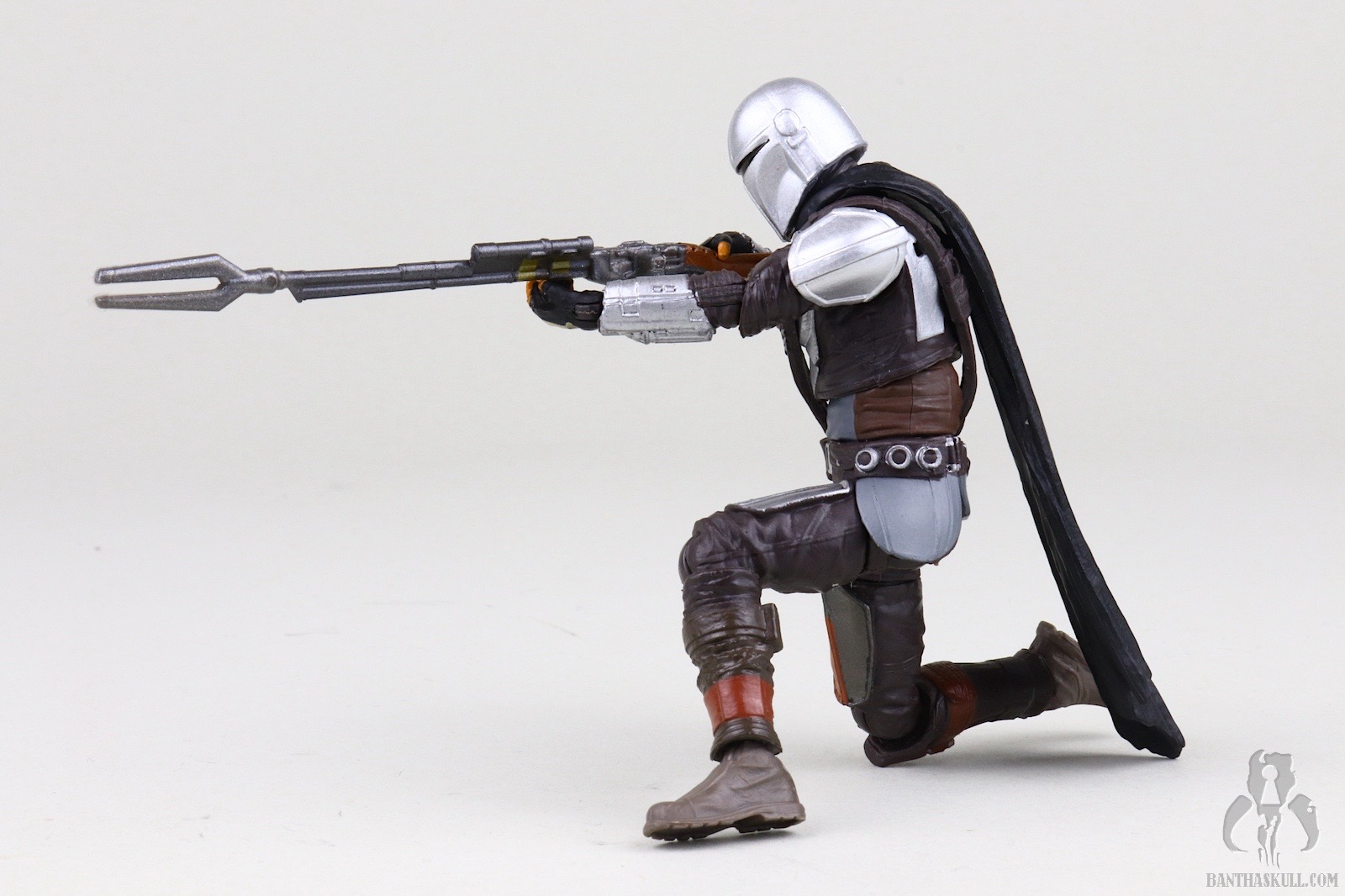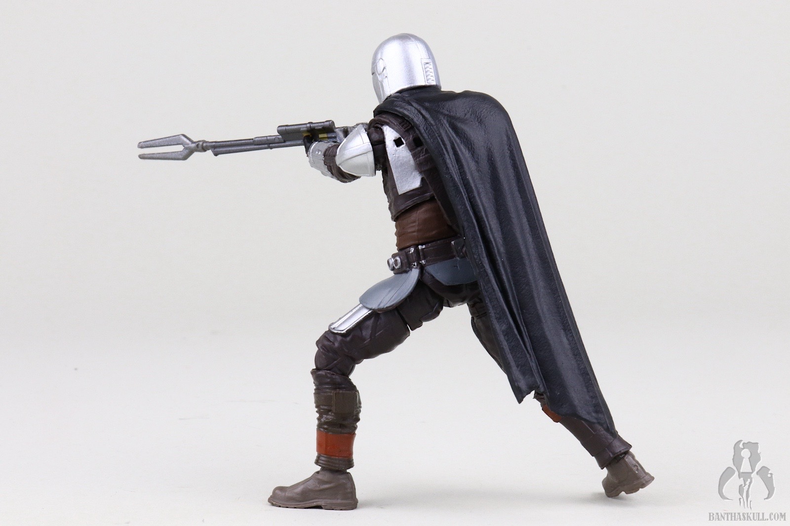 This does not mean the figure is perfect, despite the perfect score. I know that doesn’t make much sense, but neither did the Pontiac Aztek, and I don’t remember you getting all over GM’s case! Think of it as extra credit. This figure is objectively a 9 out of 10, but it gets a subjective extra credit point for how well it functions as a posable action figure. To that point, the plastic molded cape does not interfere nearly as much as it does on the aforementioned Moff Gideon figure. But there is another area that is mildly disappointing. I recently participated in a live chat on the Facebook Star Wars The Vintage Collection group. The subject of the return of rocker ankles to the 3.75” scale came up, and how it’s almost bittersweet. The reason being is that their return came just after the release of figures that could have desperately used them. One is the VC140 - Stormtrooper figure. The other is this Mandalorian sculpt (both VC166 and VC181). In certain action poses, we are forced to deploy the dreaded “kickstand” leg.