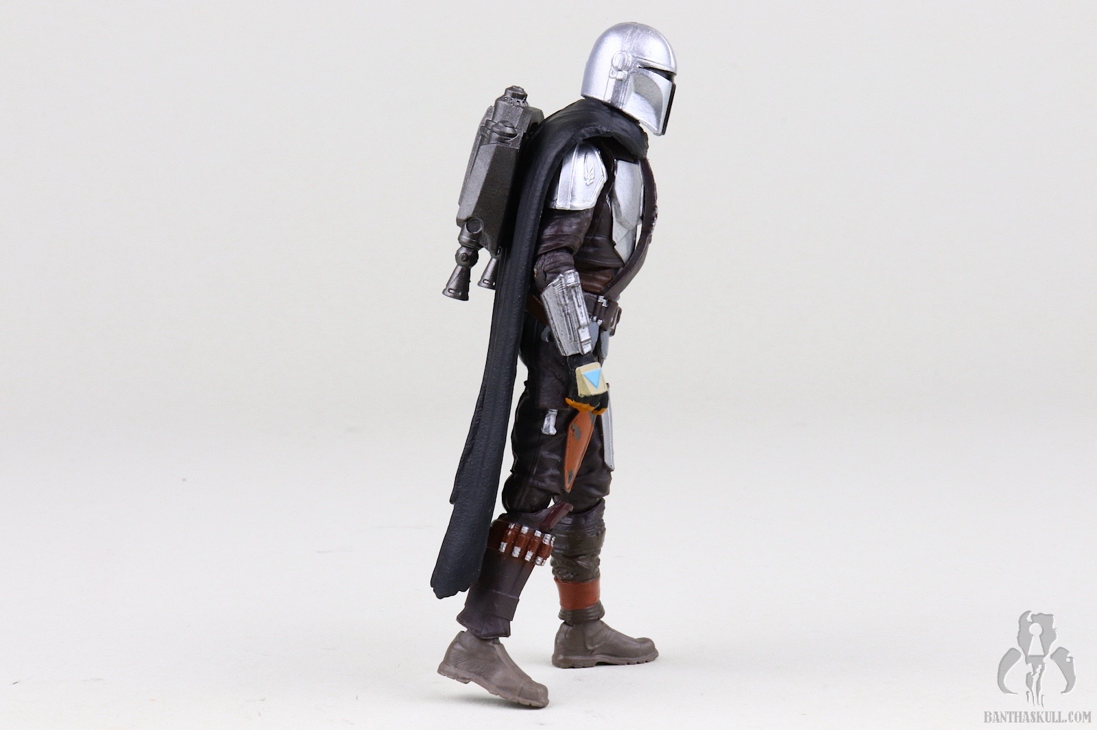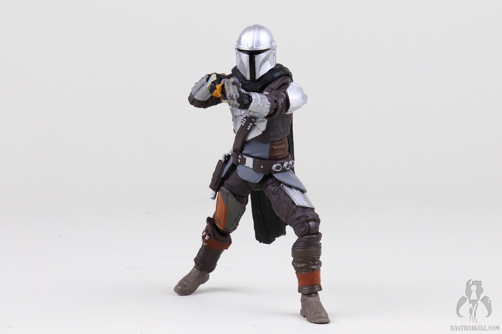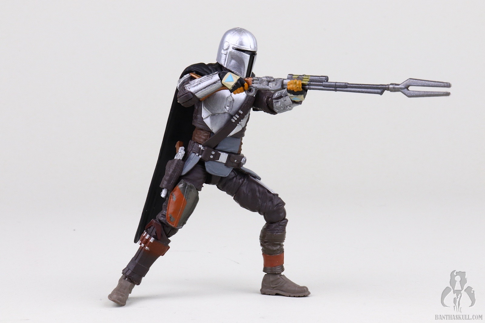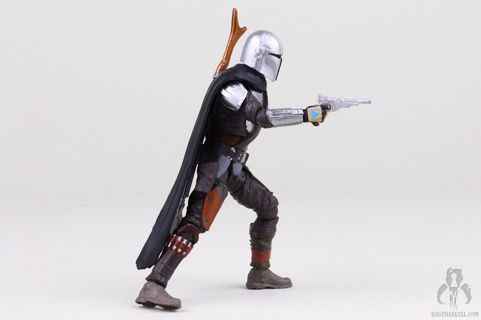 This does not mean the figure is perfect, despite the perfect score. I know that doesn’t make much sense, but neither did the Pontiac Aztek, and I don’t remember you getting all over GM’s case! Think of it as extra credit. This figure is objectively a 9 out of 10, but it gets a subjective extra credit point for how well it functions as a posable action figure. To that point, the plastic molded cape does not interfere nearly as much as it does on the aforementioned Moff Gideon figure. But there is another area that is mildly disappointing. I recently participated in a live chat on the Facebook Star Wars The Vintage Collection group. The subject of the return of rocker ankles to the 3.75” scale came up, and how it’s almost bittersweet. The reason being is that their return came just after the release of figures that could have desperately used them. One is the VC140 - Stormtrooper figure. The other is this Mandalorian sculpt (both VC166 and VC181). In certain action poses, we are forced to deploy the dreaded “kickstand” leg.