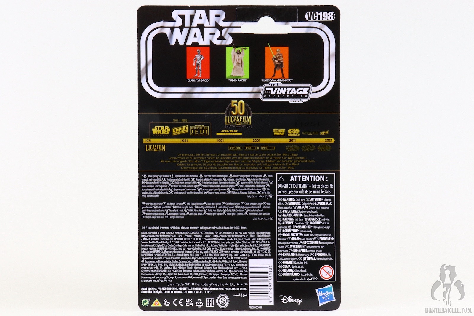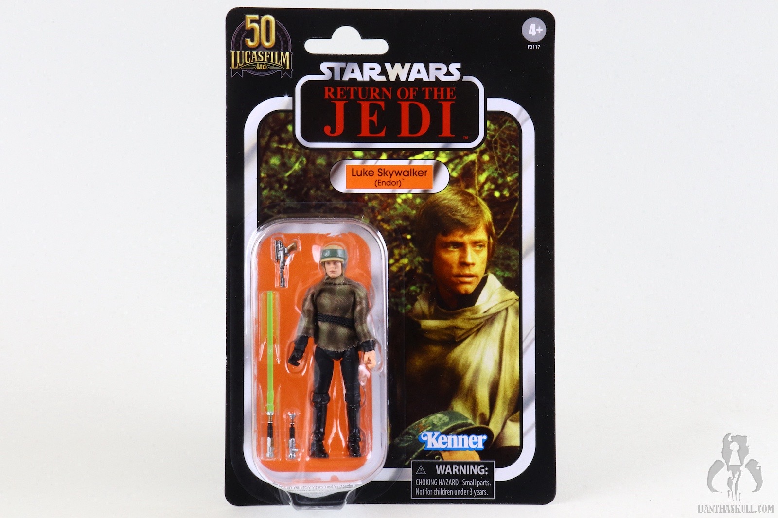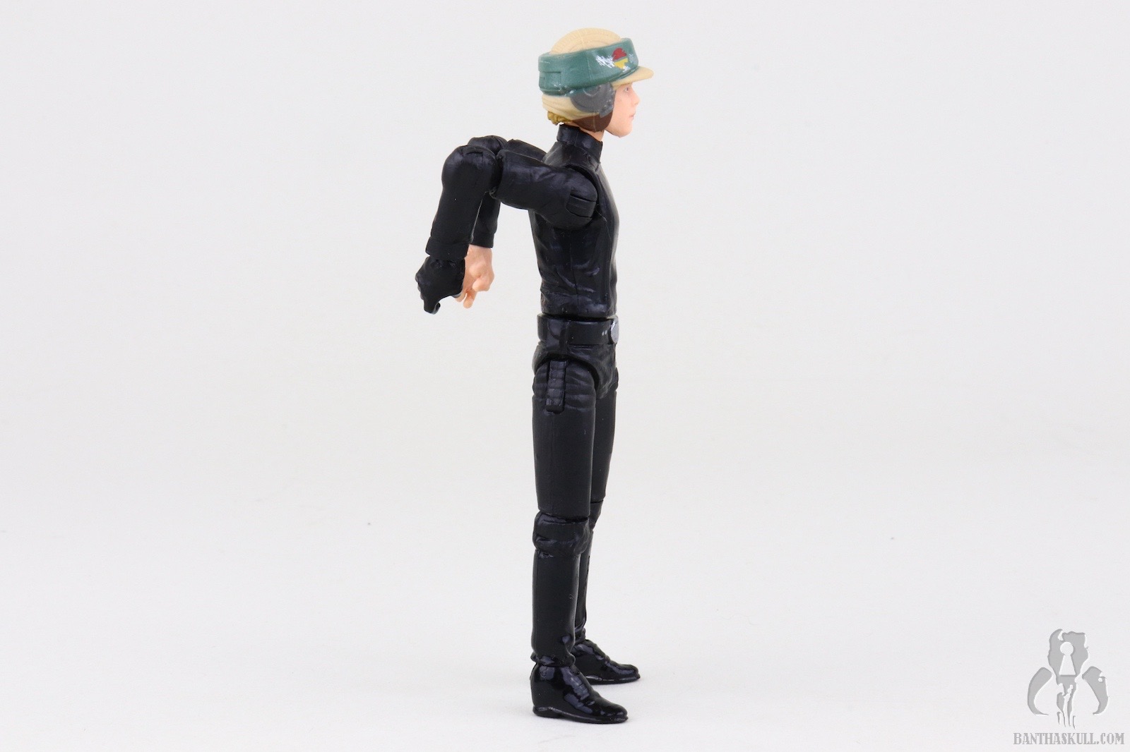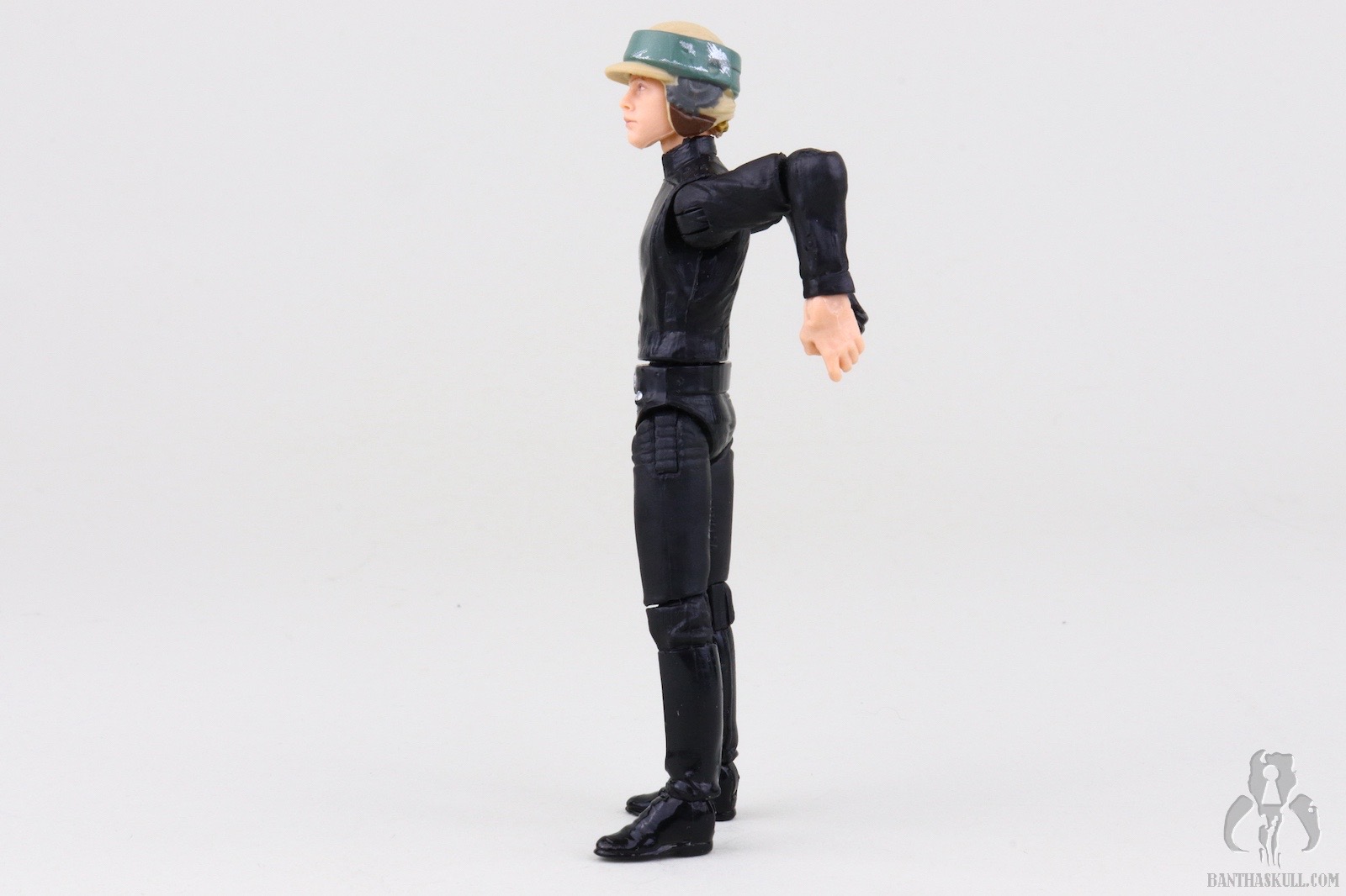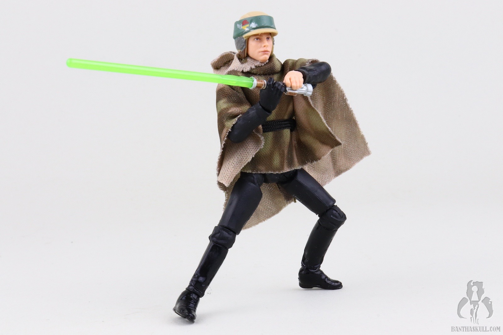 The poncho itself is an upgrade from previous releases. The camo patten is much clearer and better defined than the muddled appearance from the predecessors. The belt is a black fabric strip to mimc the web belt of the actual on-screen costume. Previous releases featured a brown holster belt which is wholly inaccurate. The new camo pattern and belt increase the overall accuracy of the figure. Oddly, despite ditching the inaccurate holster, the figure still includes the DL-18 blaster. This is likely a wink to the original Kenner POTF ‘85 release which also included the accessory. Unfortunately the base VC23 figure was sculpted to interact with a lightsaber, as it should have, and not a blaster. This means it lacks a floating trigger finger, so this Endor Luke is a bit of a throwback to POTF “2” figures in that it doesn’t really grasp the blaster. It more rests in the hand. This is hardly a serious concern, however, because Luke didn’t have this sidearm on Endor.