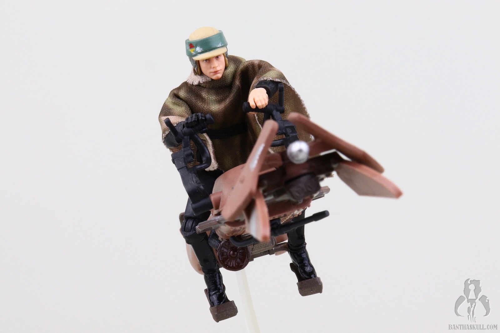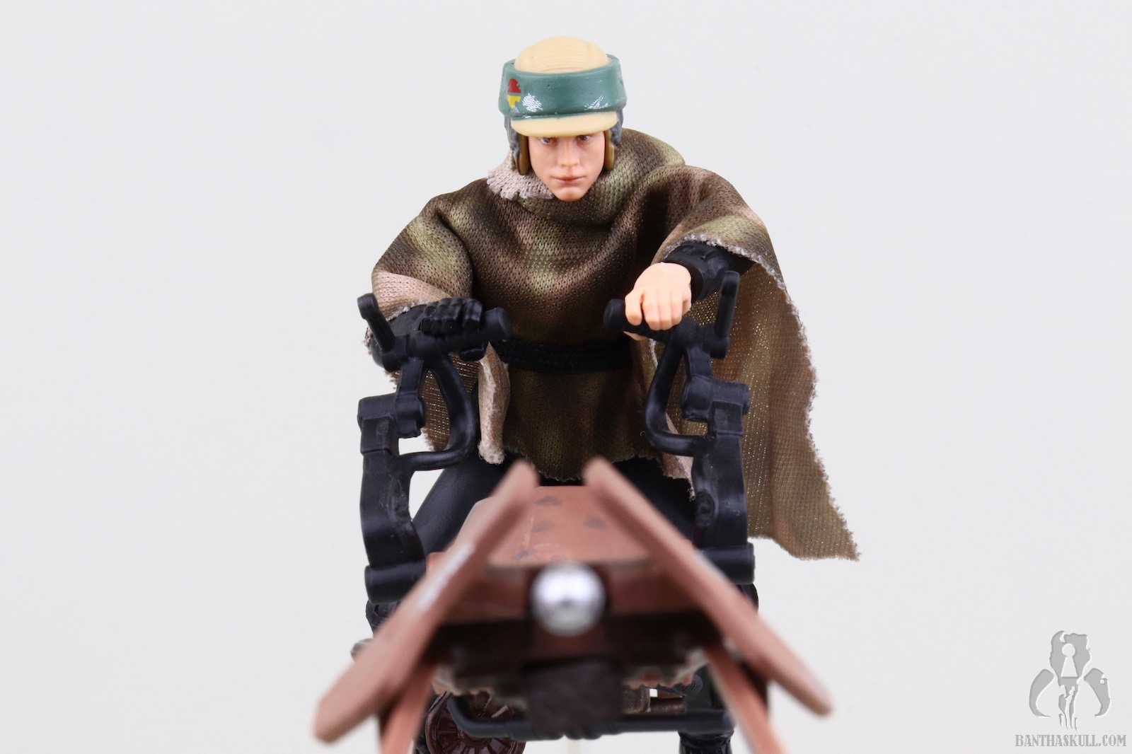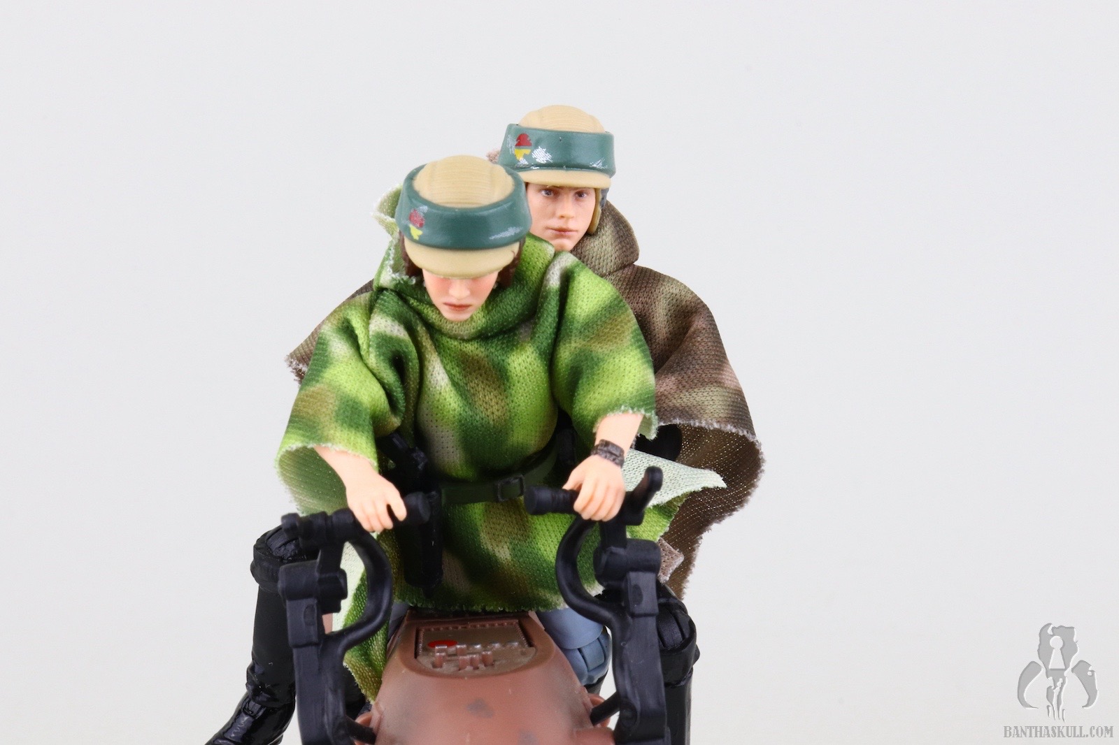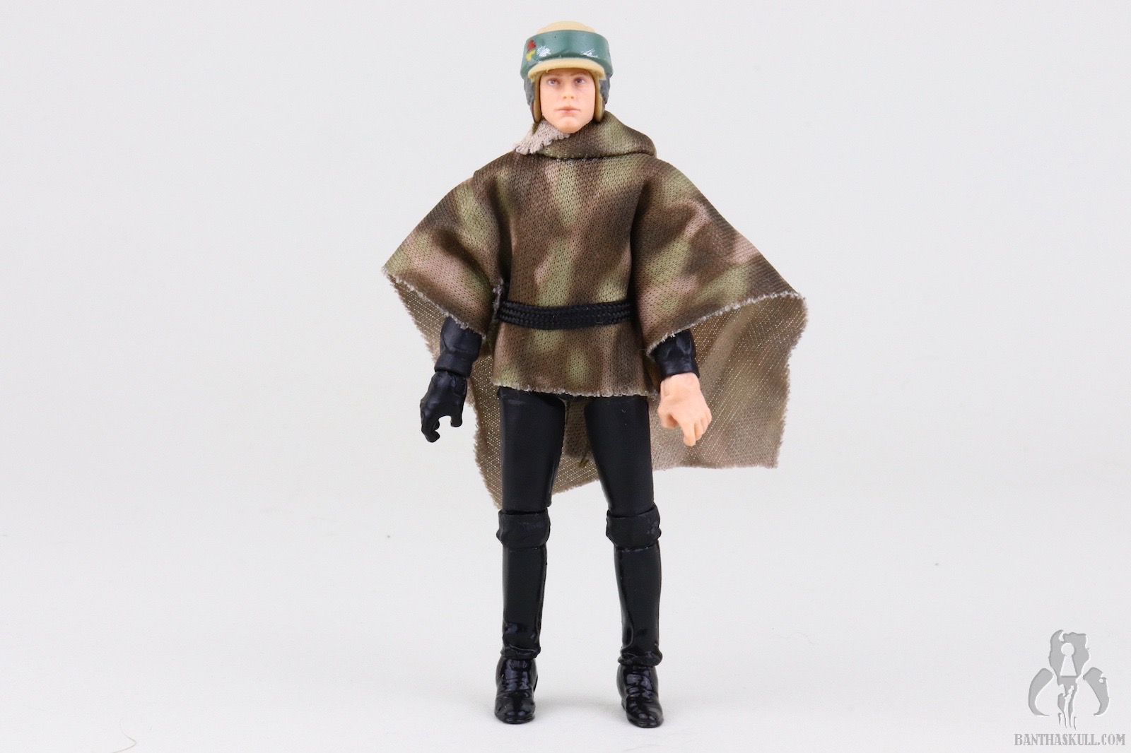 The issue of the non-removable helmet seems to be a point of great consternation with a portion of the community. I don’t mind it for two reasons, the first and most important is that the aesthetics of the all in one head and helmet sculpt are better. A plastic helmet over sculpted human hair tends to look oversized at this scale. The second is that this release is nothing more than VC23 - Luke Skywalker (Endor Capture) with the camouflaged poncho and the new all-in-one helmet/head sculpt. That means that if I want to display this Endor Luke sans helmet, all I have to do is perform a simple head swap with VC23.