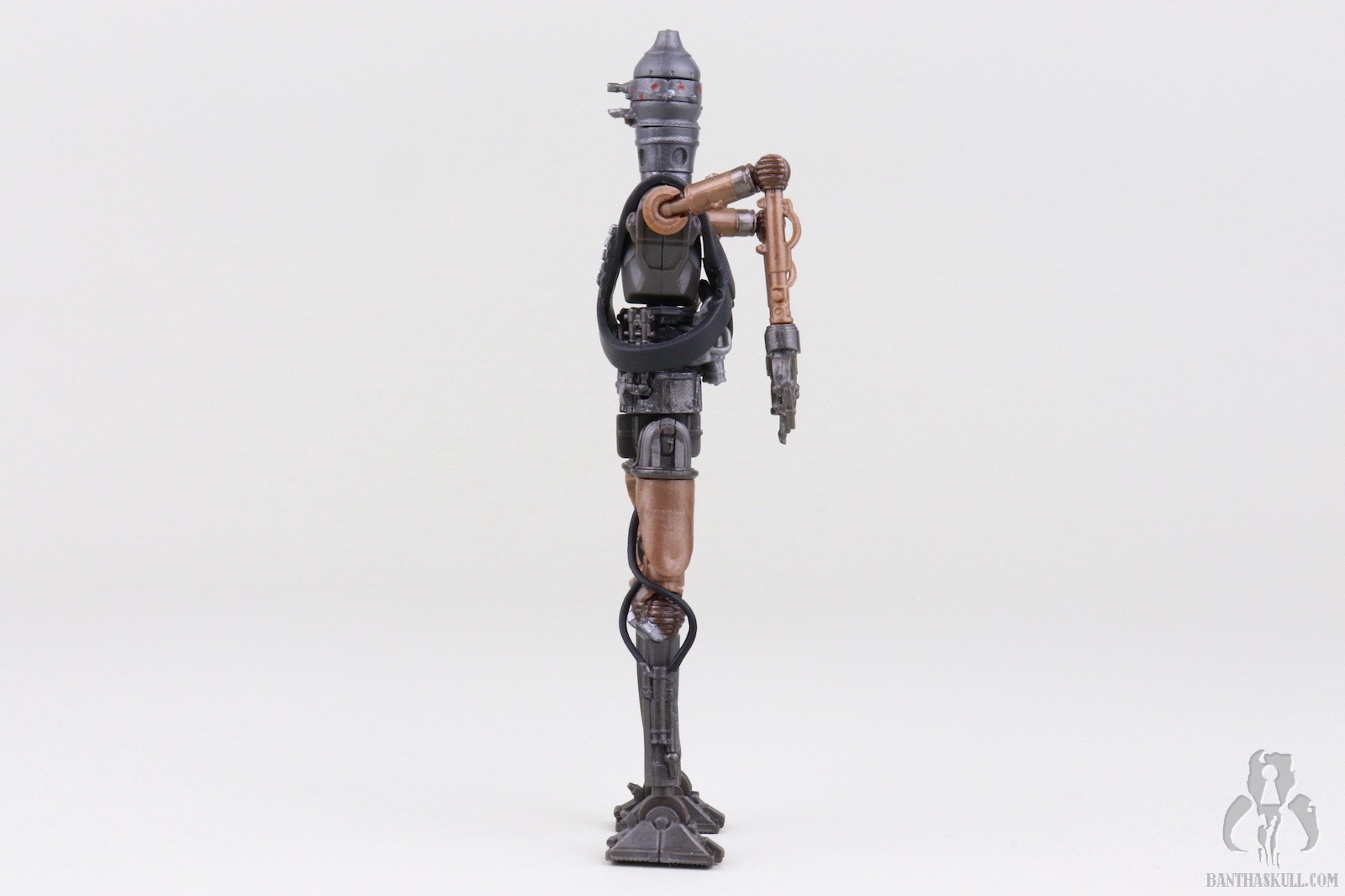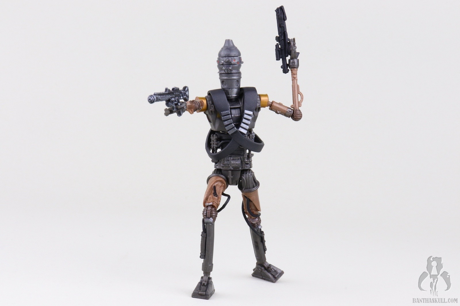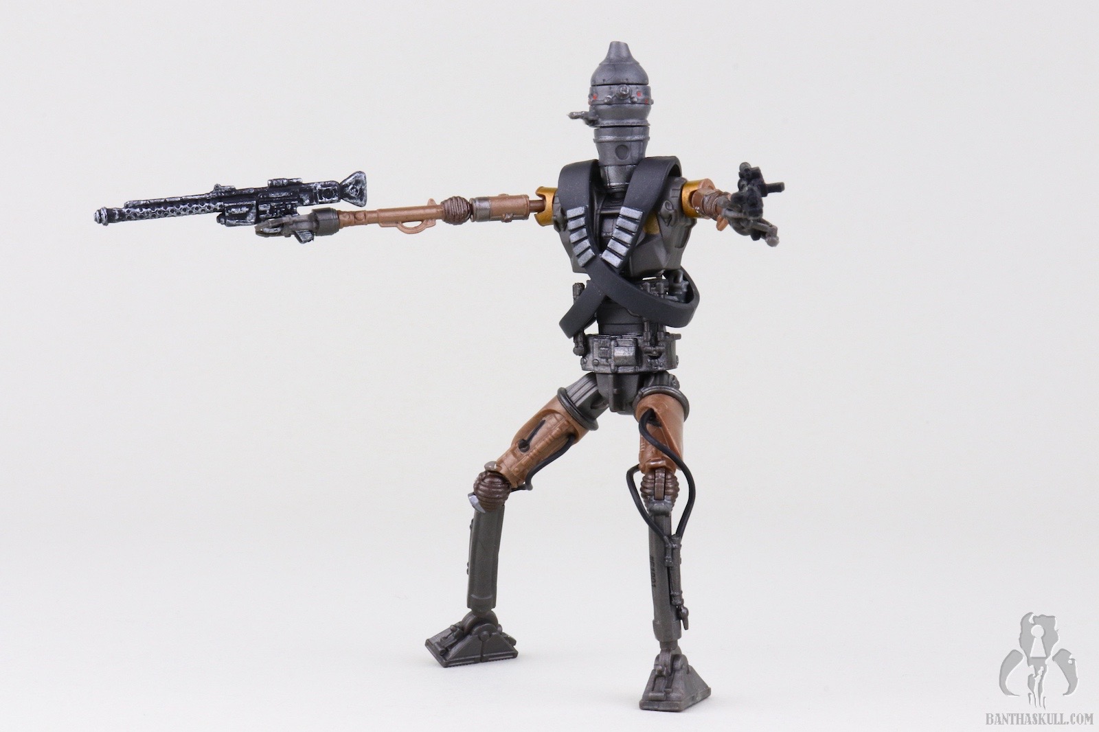 With this IG-11, it’s not just that it has all the requisite articulation to strike all manner of dynamic shooting poses. It’s that there is absolutely no encumbrances on any of that articulation. The joints have outstanding ranges of motion, and nothing in the sculpt prevents them from reaching their full potential. With a bend of the elbow, along with a twist here and a twist there, IG-11 goes shooting facing forward to shooting behind his back. I would love to see what The Imperial Communique could do for a stop motion review of this figure. It would almost match the on-screen IG-11.