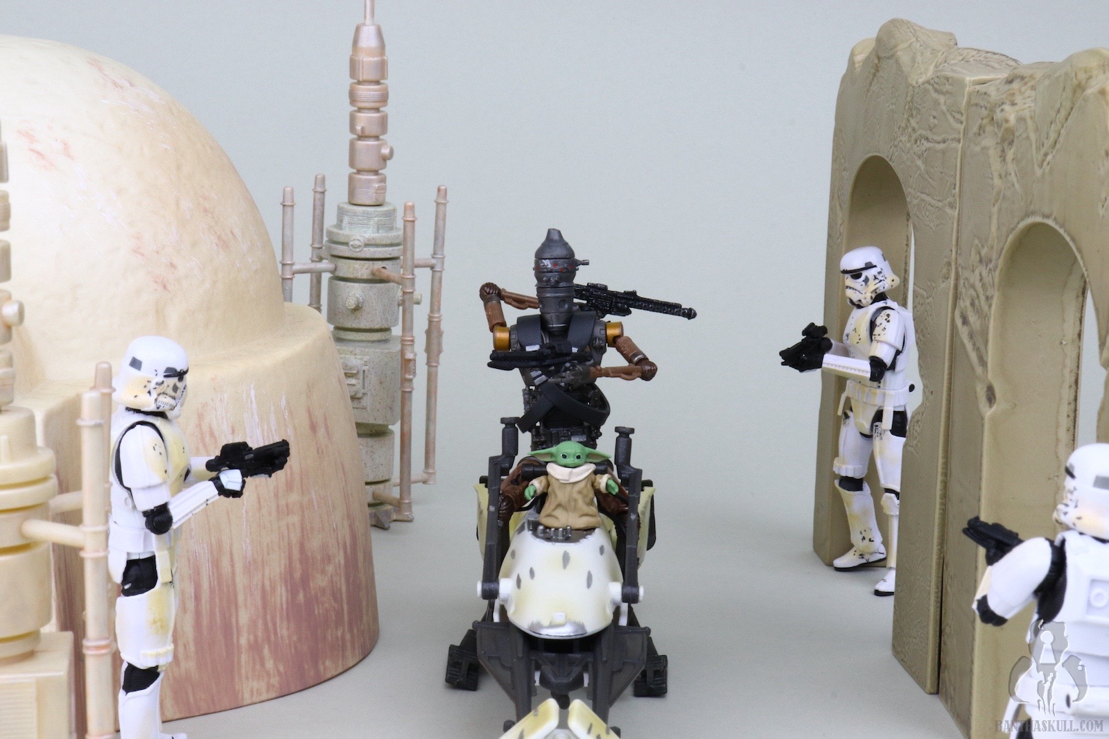 If I had to critique one thing about this IG-11, it would be the hands. They are sculpted in an open grip which makes it somewhat difficult for the figure to hold the included DLT-20A rifle and E-11 blaster. I assume that the hands have been sculpted in this “flat plane” style for the aforementioned omnidirectIonality. When flipping the arm around IG-11’s back and rotating the hands, they don’t look “upside down” as a result. It’s part of what really makes this release tick, so I can’t ding Hasbro for this decision. I’m somewhat relieved that The Emperor was a bit of a dud. Otherwise you’d think the review score was stuck on ten, as this is another 10 out of 10 figure to go along with the recently reviewed Ahsoka Tano and Lando Calrissian figures.