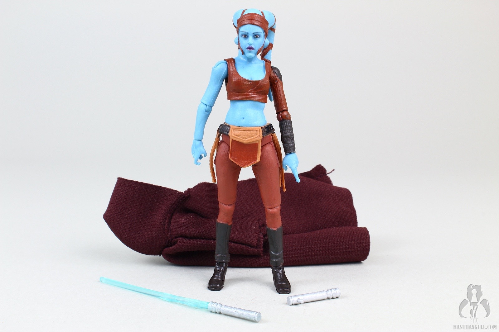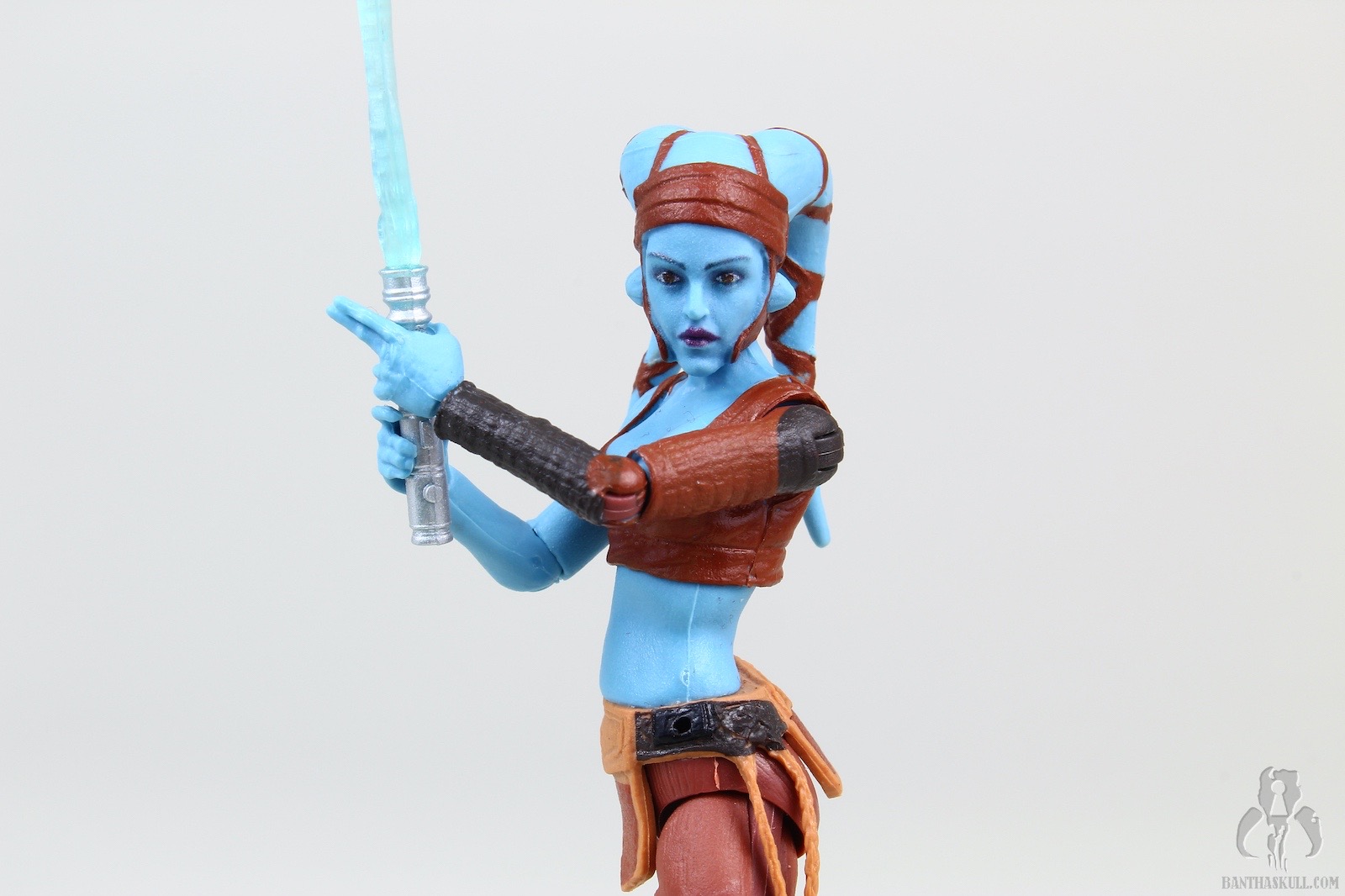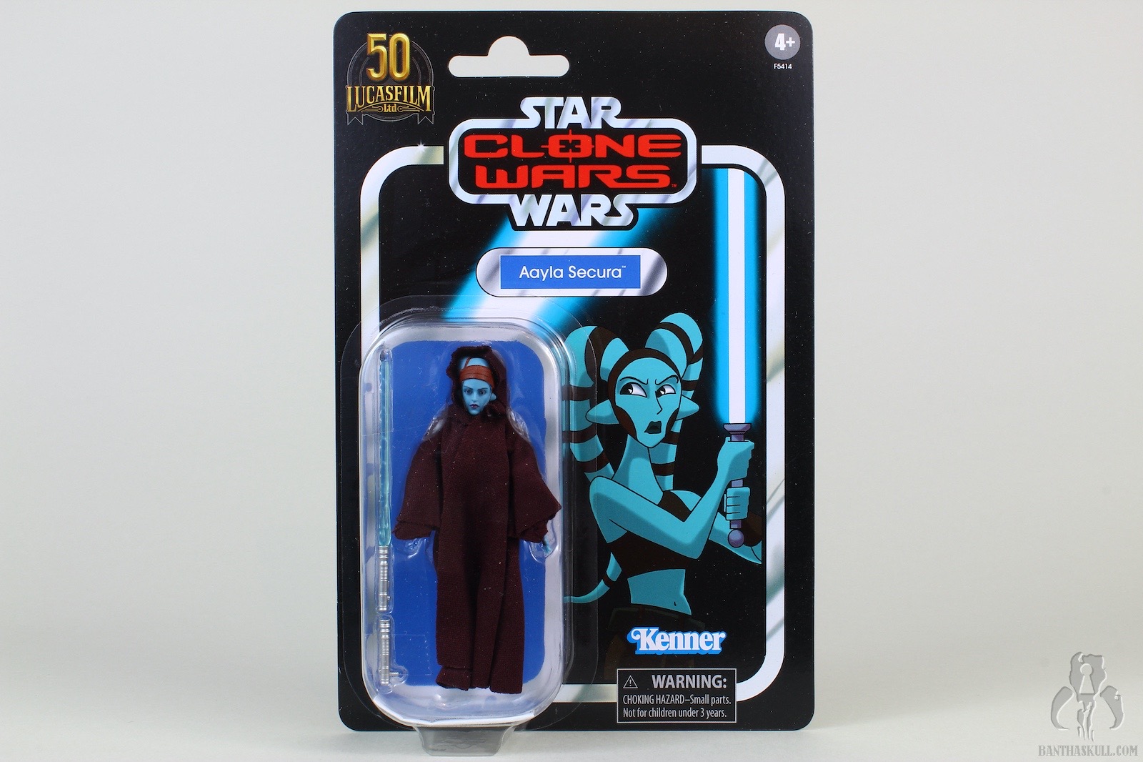 Since Hasbro didn’t change the sculpt at all, they missed a major aspect of this character’s appearance from Clone Wars. You can see clearly in the card art that Aayla’s outfit is different. Instead of the basic crop top with the left sleeve that she sports in the films, the cartoon version has a single shoulder crop top with no sleeves. It always annoys me when the figure doesn’t match the image selected for the card - aside from the realistic styling, of course. I wasn’t looking for an animated figure, but the outfit should be the same. Clearly Hasbro wasn’t looking to spend any tooling dollars on these Walmart figures, so I get it, but of the 6 chosen for the special wave, Aayla probably was the most suitable candidate for a partial re-tool for the sake of matching her proper appearance.