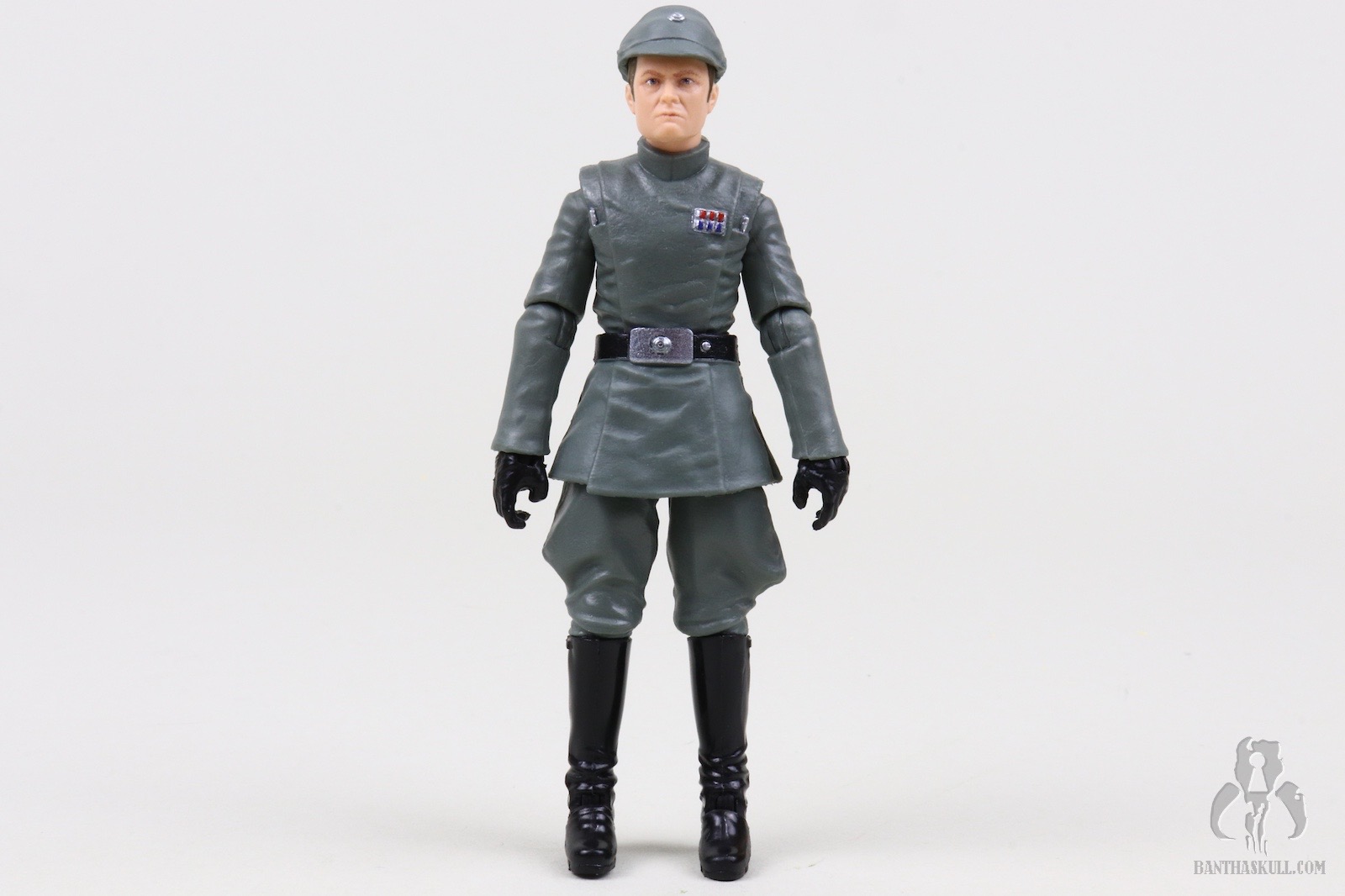 As for this specific officer, Moff Jerjerrod, Hasbro did the important things that distinguish the sculpt from the aforementioned Admiral Piett. Most notably, Piett only has a code cylinder in his left chest pocket. Jerjerrod has a cylinder in each of his chest pockets, and that is reflected here. This is highly commendable since it somewhat negates the easy tooling reuse that “buck” based figures offer. I seriously wonder if Hasbro had to tool up an entirely new torso for this, or if they have some engineering tricks to be able slightly modify the tooling between production runs to account for the difference in cylinders and rank badges. It would be a shame if completely new torso tooling were required for all of the combinations.