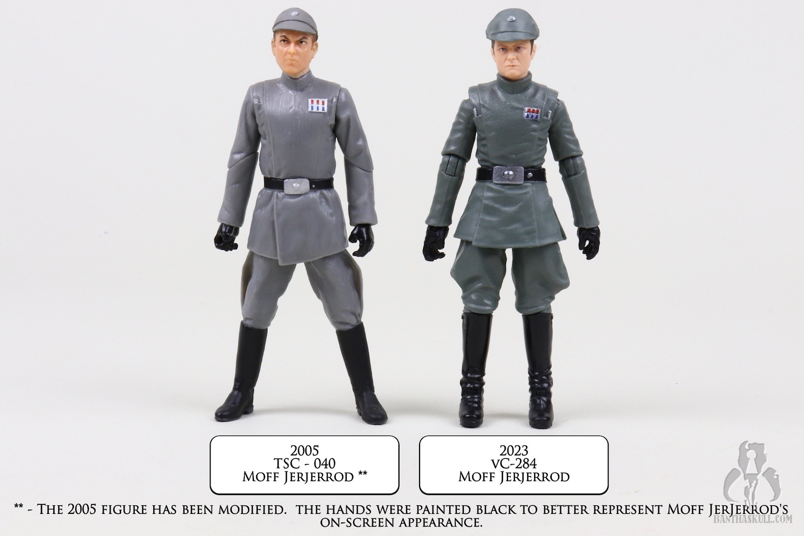 This Moff Jerjerrod figure is the first re-use of the new Imperial Officer buck which debuted with VC270 - Admiral Piett. It took only 14 numbered releases before Hasbro put the tooling back to use. My response: