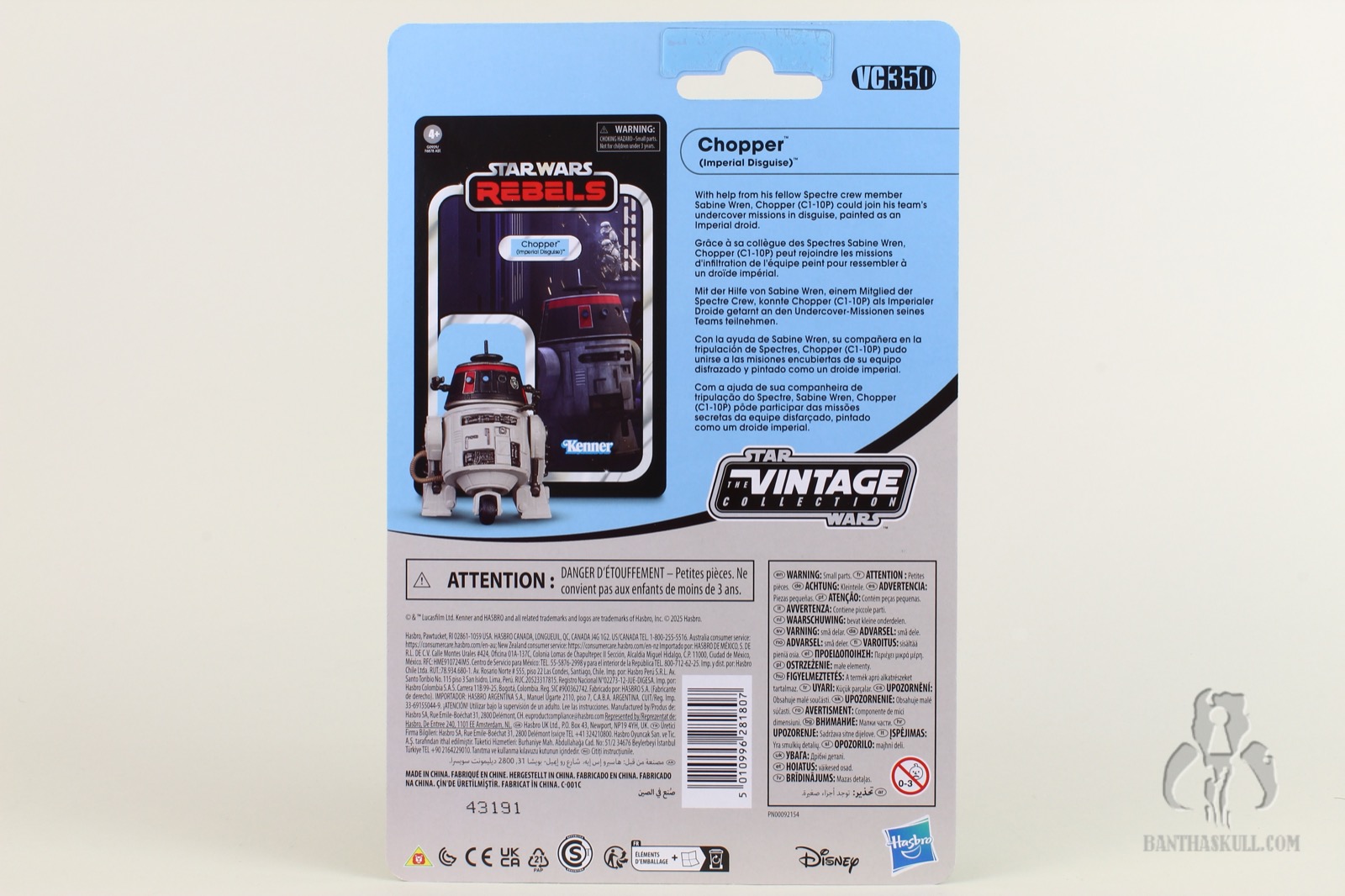 VC304 was the first release, and is based on his live-action appearance in Ahsoka. In my review of VC333 in the Sabine Wren 2-pack, I listed the various Rebels figures we have (including the Ghost figures, which arrived later), and that we only have Kanan and Zeb from the early seasons of the show. I’m not sure of the paint differences that non-disguised Chopper undergoes over the course of the 4 seasons, but I guess you could include VC333 as an acceptable part of the early season crew. Technically, this version is from episode 14 of season 1, but he’s not really Chopper, he’s an Imperial courier droid, idiot.