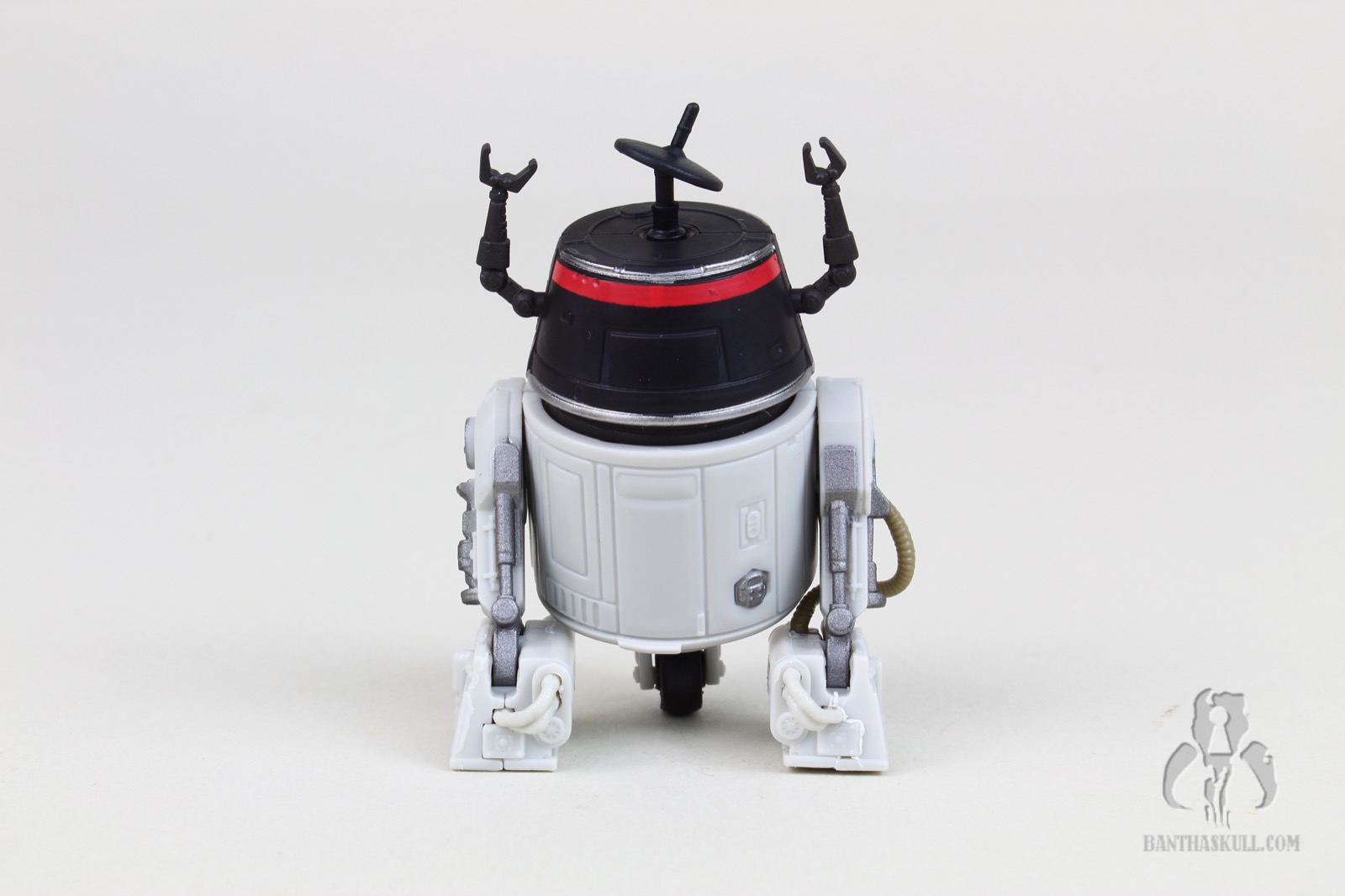 As for the figure, there is nothing new to the sculpt. He’s adorable, and has decent articulation for a little guy. The third leg/wheel is removable, while there are no wheels on the main feet. The body has the extendable arm. The head rotates and clicks, and also tilts. The arms can swivel at the base, but are otherwise not articulated. Chopper comes with an alternate radar dish for additional display options. Additional accessories that we saw previously, such as the tracking device and the 2 loth-cats, are absent. The paint job is obviously different, and aside from the colors, there is the addition of a courier droid logo on the dome. However, this figure lacks any weathering or dirt marks. This is actually accurate, since he was newly painted by Sabine and squeaky clean, but the lack of accessories and weathering make it feel less of a value for a figure that is already diminutive and probably not worth the $16.99 price point from various perspectives.