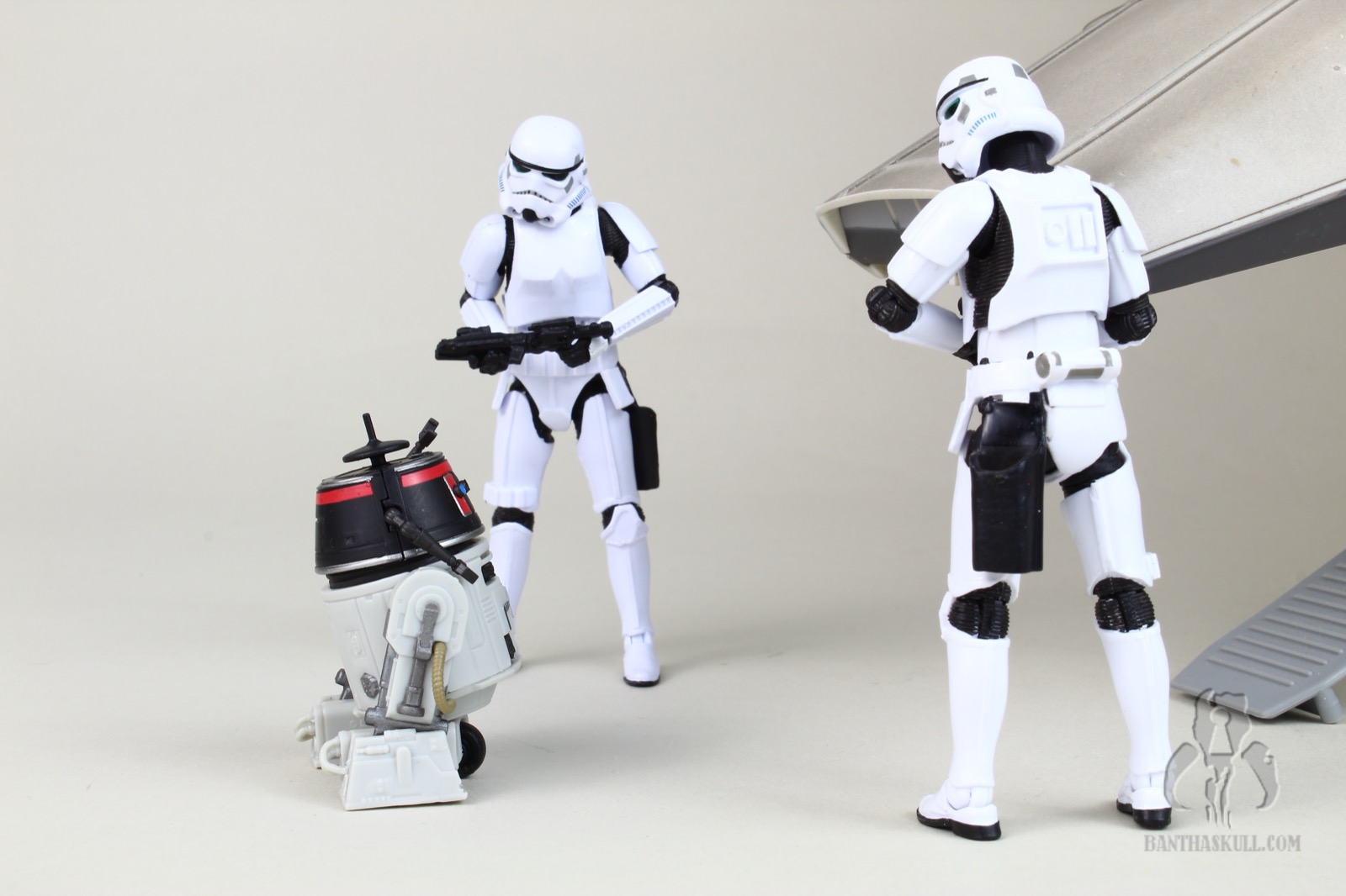 During his time in disguise, Chopper interacts with 2 stormtroopers, 2 officers, a group of stormtroopers that he blows out an airlock, and then most of his crew when back on the Ghost, including the the original courier droid he was impersonating. Of those figures, we have stormtroopers, technically we have officers, and we have only Zeb from season 1. Sadly, we can’t recreate the moment that Chopper murders the courier droid out of jealousy.