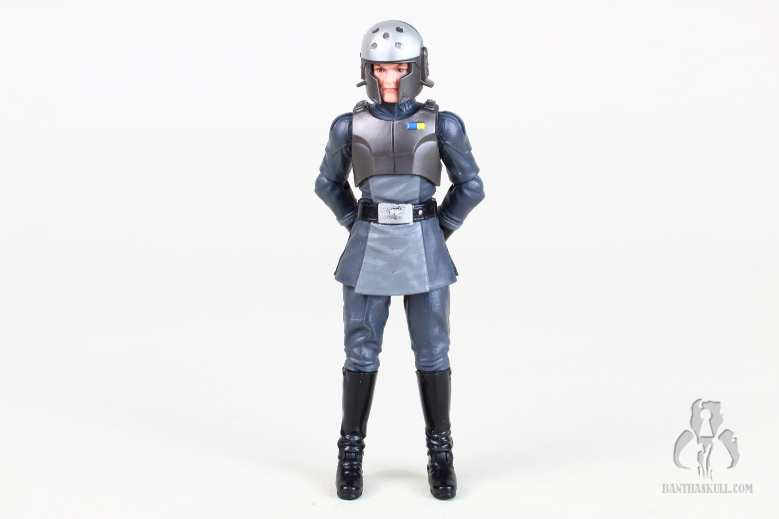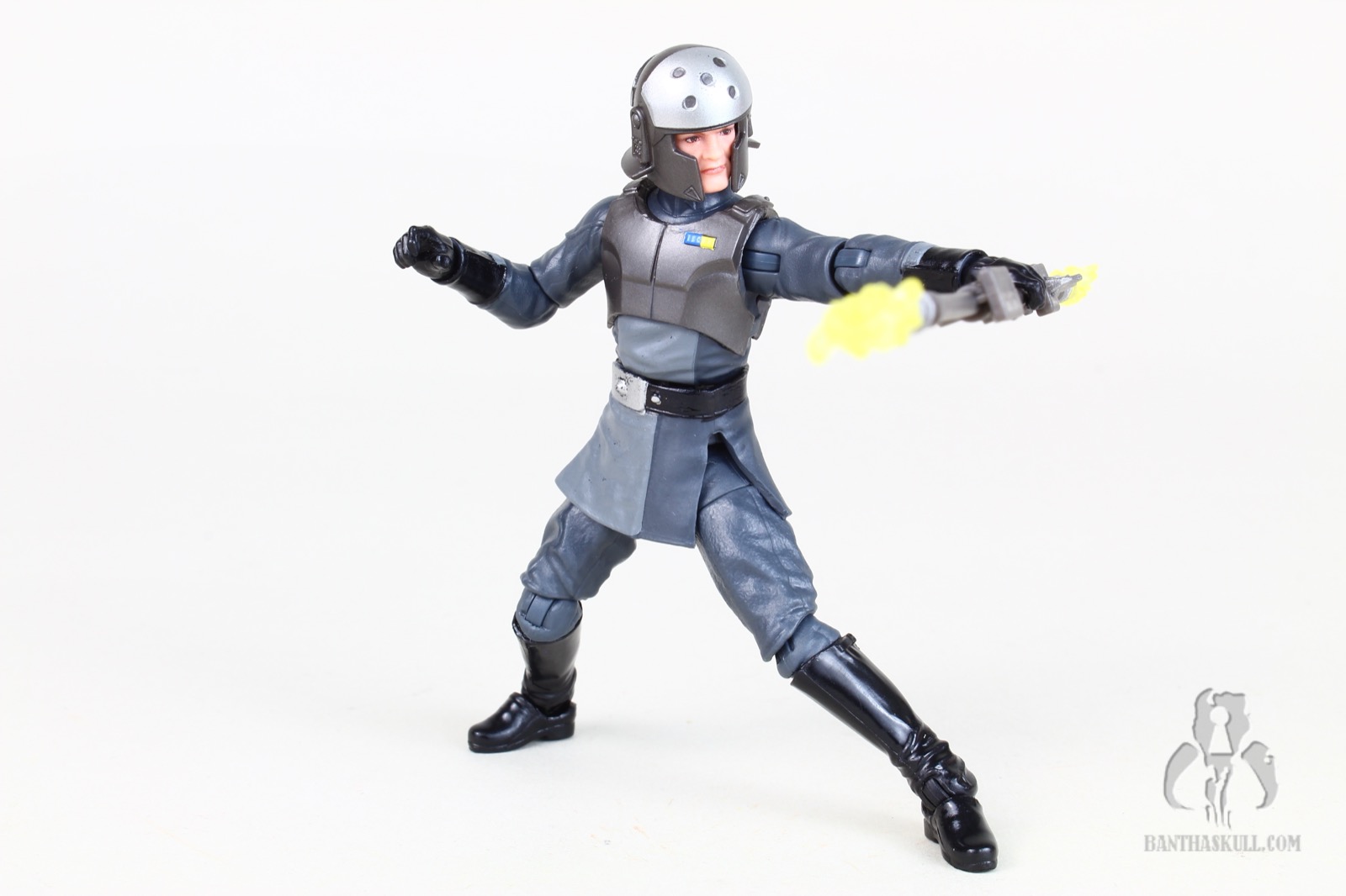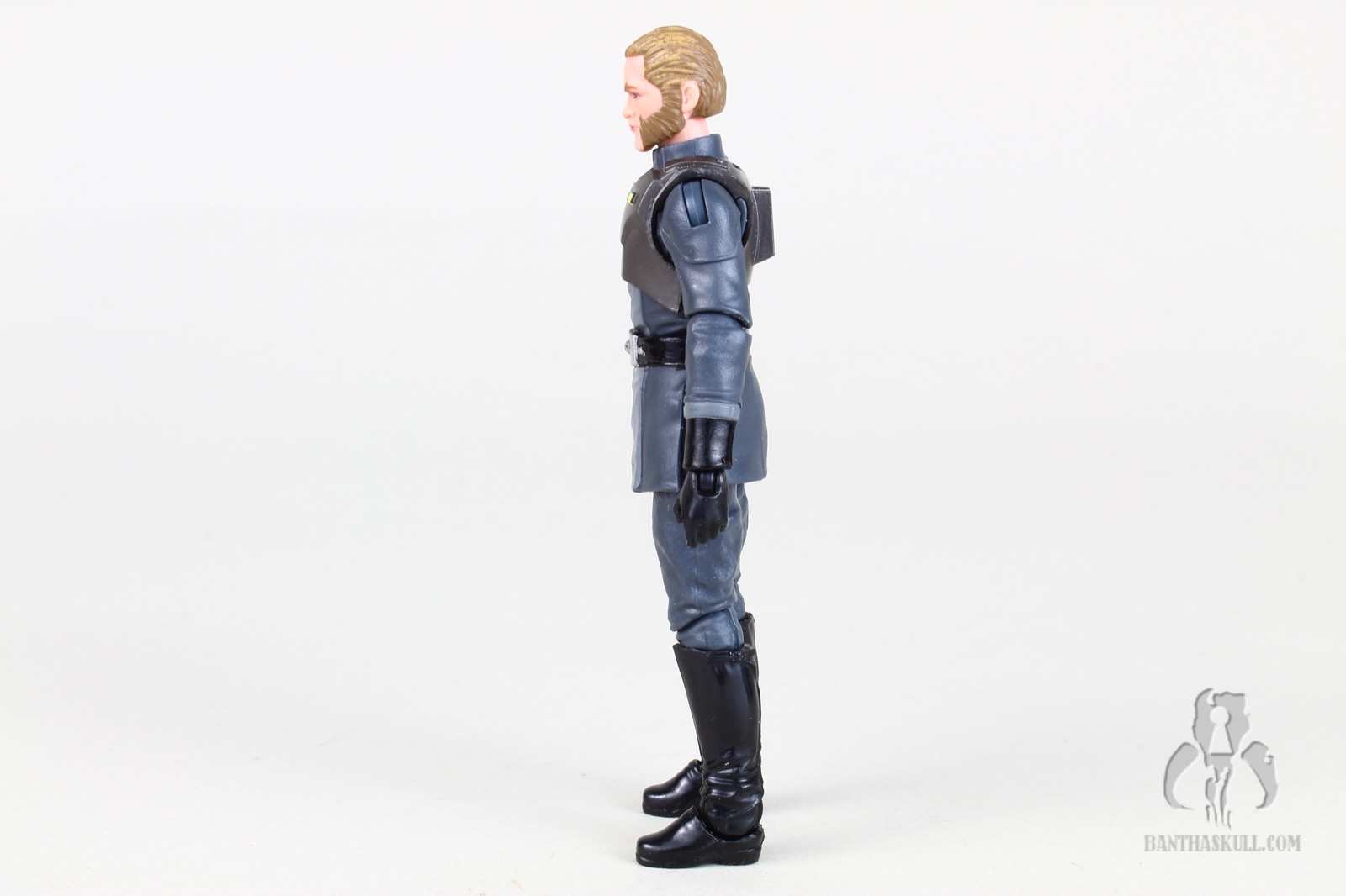And of course the headsculpt is all new. Hasbro has often been called upon to make a realistic interpretation of a cartoon character. Sometimes the hit it out of the park, and sometimes it still looks too cartoony (whether by accident or intentional). In the case of Kallus, it’s a really nice job, but I think they could have dialed back the “severity” of the facial hair. The beard, which may be Kallus’ signature trait, has that odd little upturn at the ends of his mutton chops. I was a little put off by this, thinking it was an unfortunate translation from a decidedly cartoony look. But a quick search online of “mutton chops” reveals that real dudes often have this little feature when they sport this look. So I’ll allow it. Nevertheless, I do think the arched eyebrows should have been toned down a bit. Overall, I think Hasbro did pretty good with the translation.