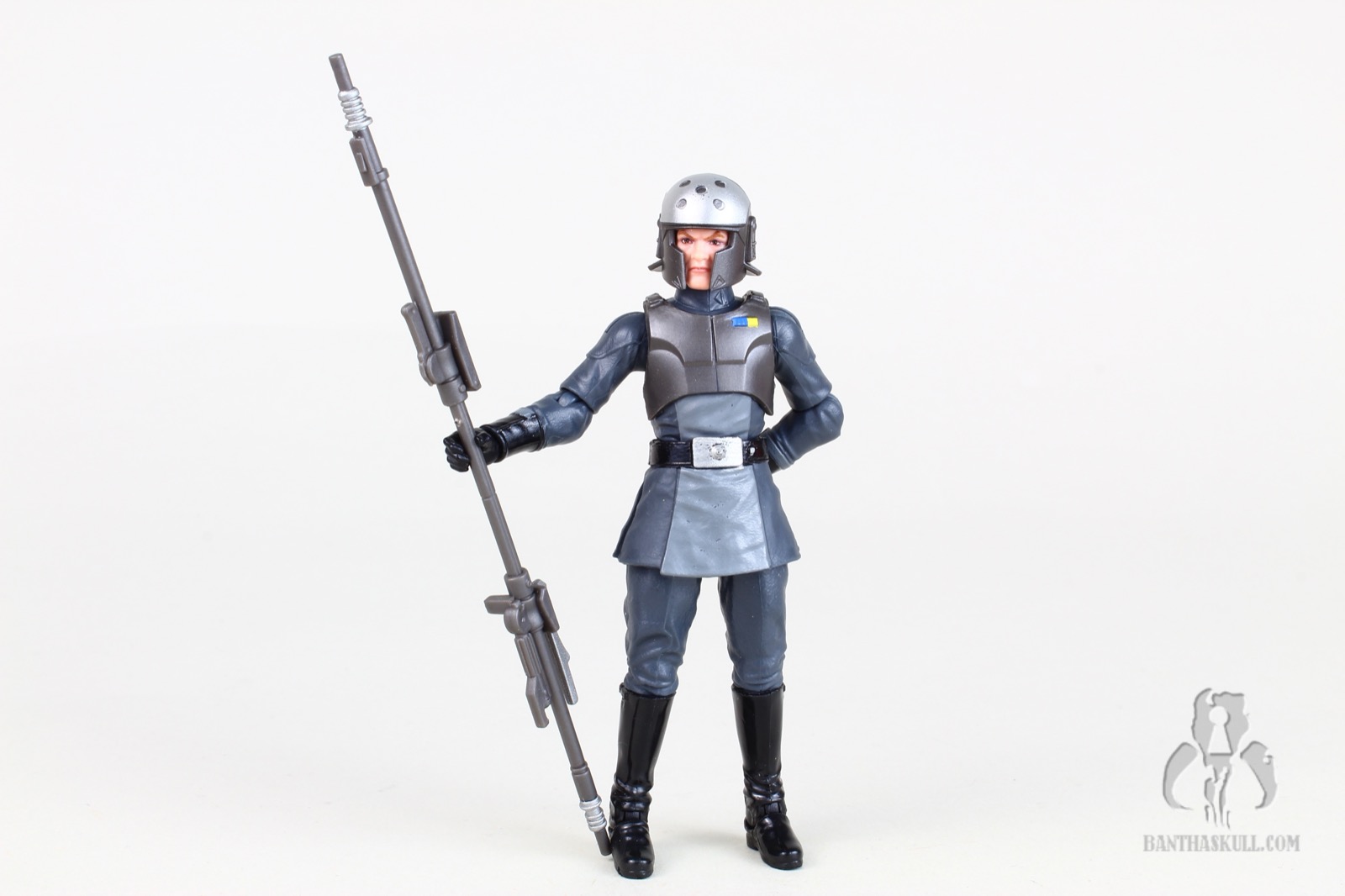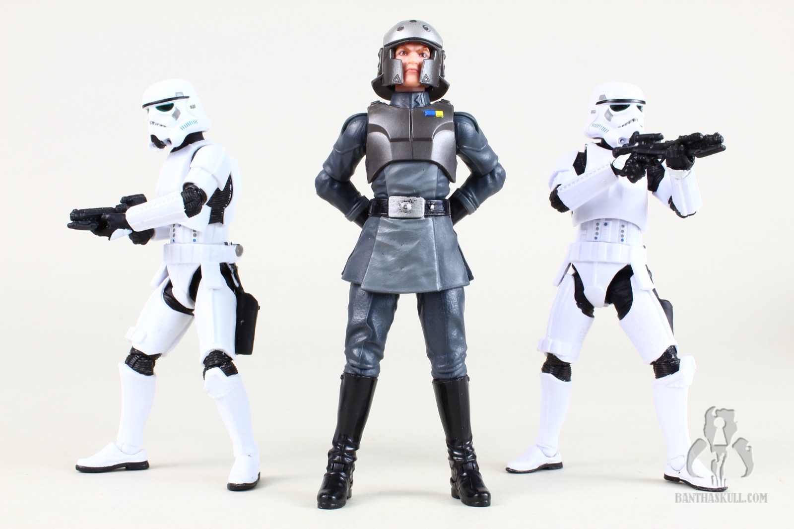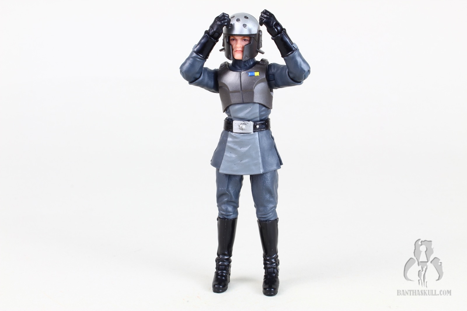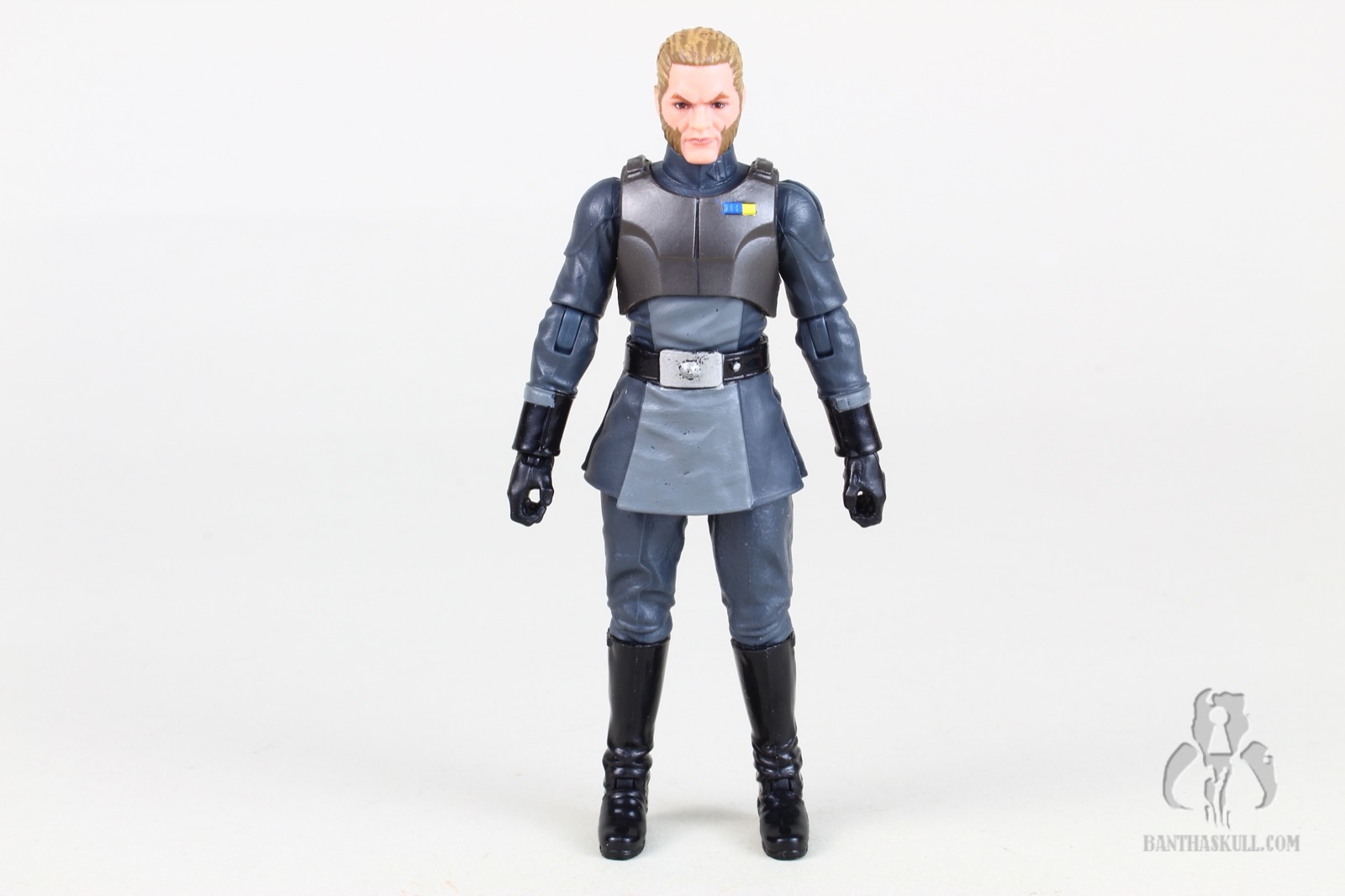 And of course the headsculpt is all new. Hasbro has often been called upon to make a realistic interpretation of a cartoon character. Sometimes the hit it out of the park, and sometimes it still looks too cartoony (whether by accident or intentional). In the case of Kallus, it’s a really nice job, but I think they could have dialed back the “severity” of the facial hair. The beard, which may be Kallus’ signature trait, has that odd little upturn at the ends of his mutton chops. I was a little put off by this, thinking it was an unfortunate translation from a decidedly cartoony look. But a quick search online of “mutton chops” reveals that real dudes often have this little feature when they sport this look. So I’ll allow it. Nevertheless, I do think the arched eyebrows should have been toned down a bit. Overall, I think Hasbro did pretty good with the translation.