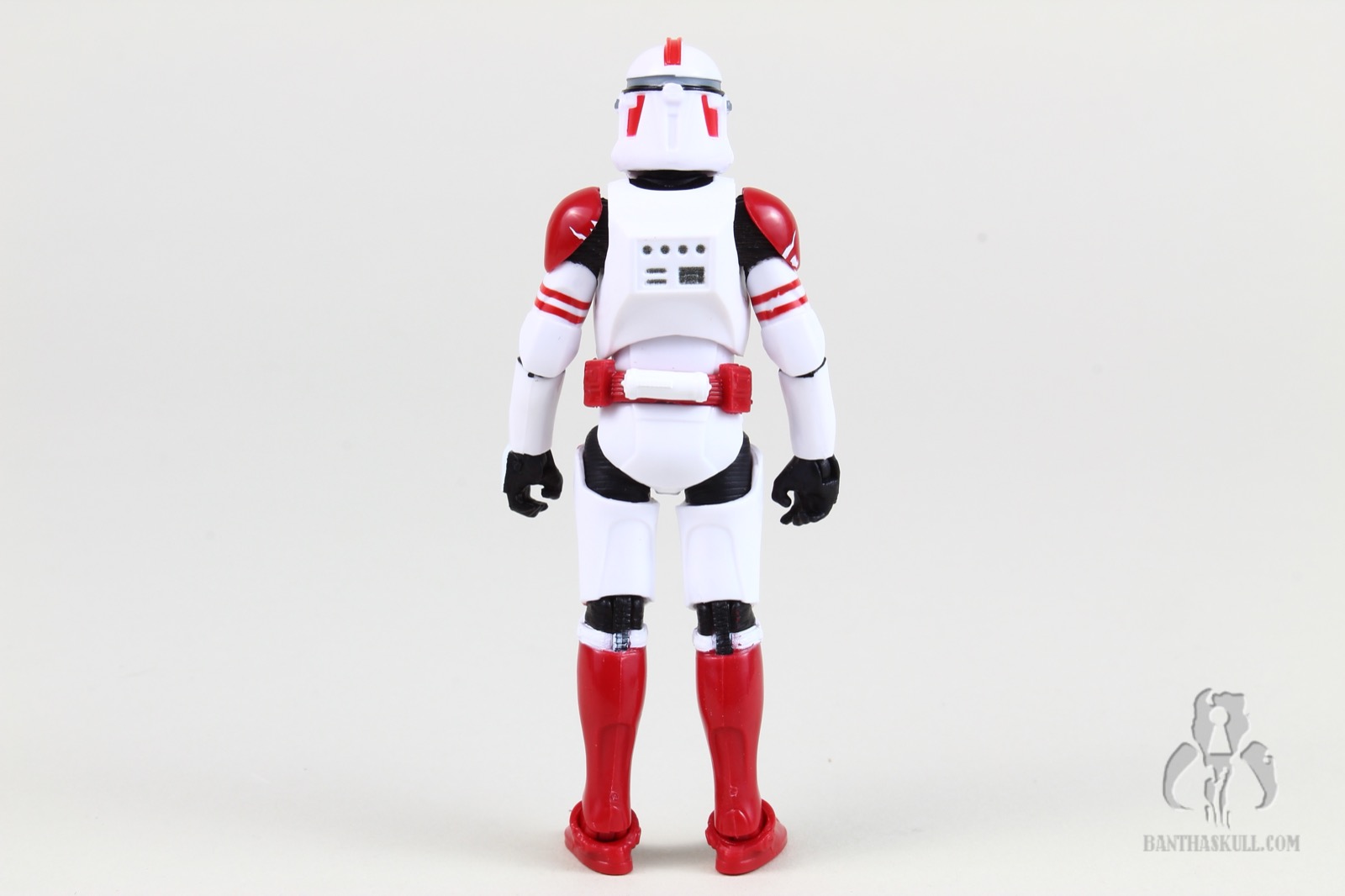The paint applications are the real draw here, and are what make this figure special. The Shock Trooper has striking red details, and Hasbro seems to have gotten everything right (let us know in the comments if you’ve found any inconsistencies in the patterns). There are a few paint chips in the shoulder armor, as well as on the double bicep rings and the hip striping. One thing of note: just like the 501st, the helmet is missing the “teeth.” It’s a minor detail to me, but the figure has a solid black “mouth.”