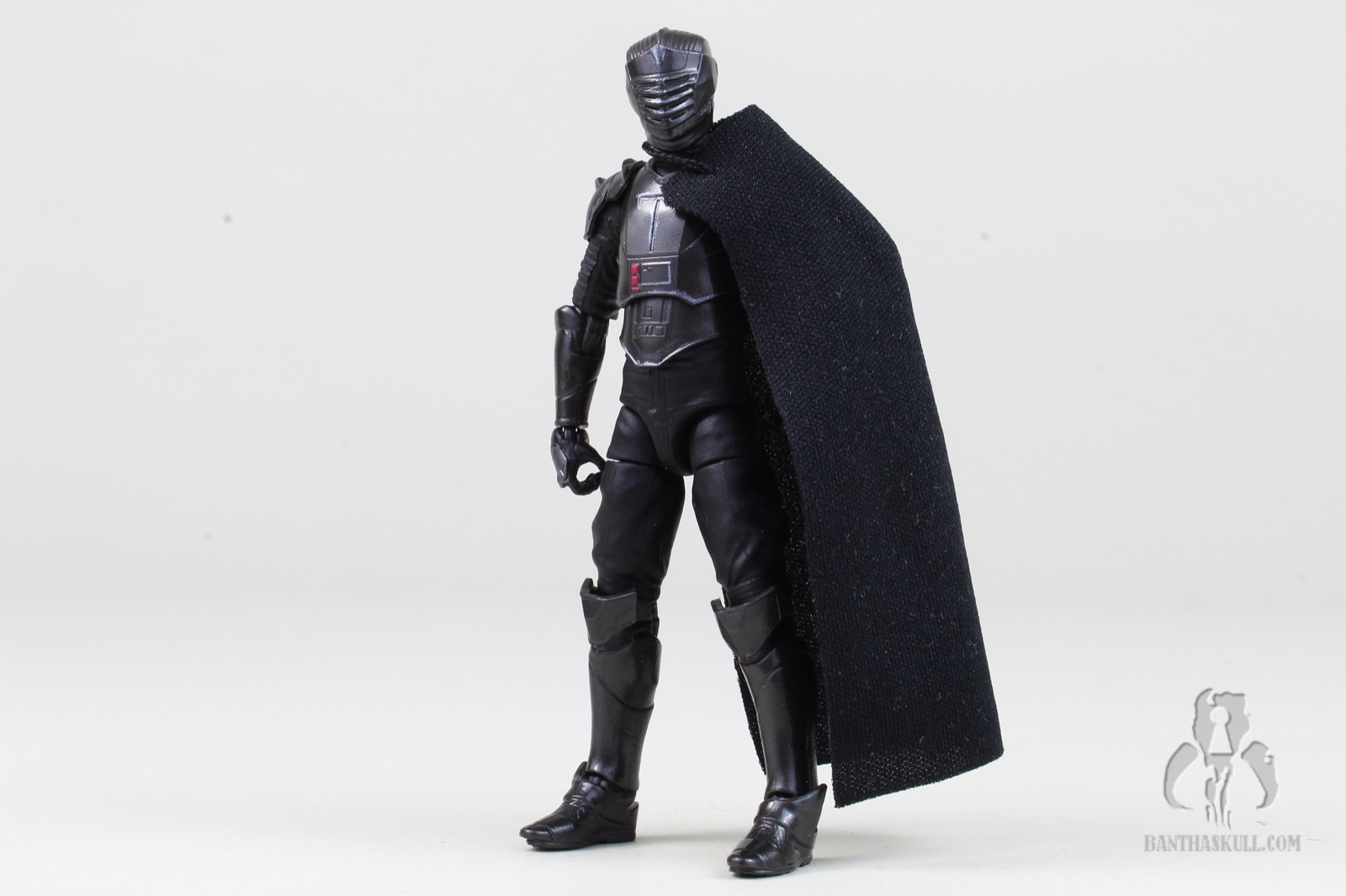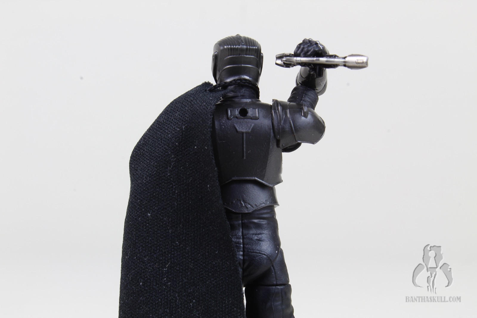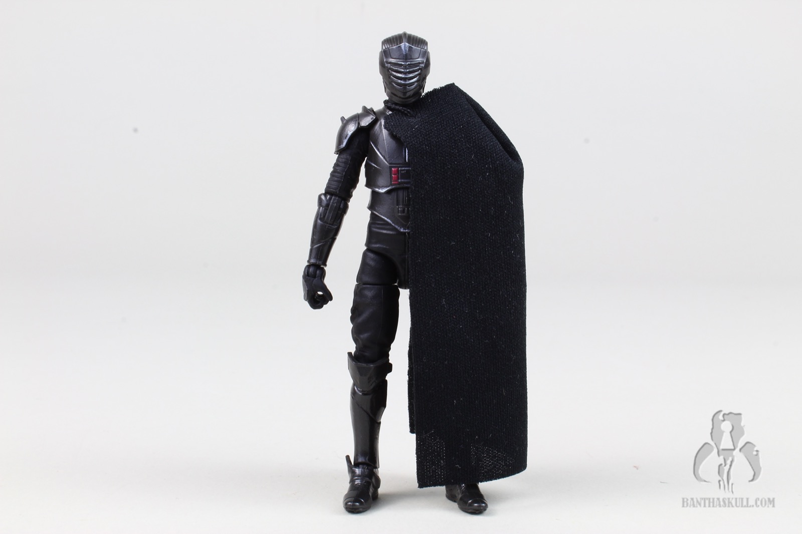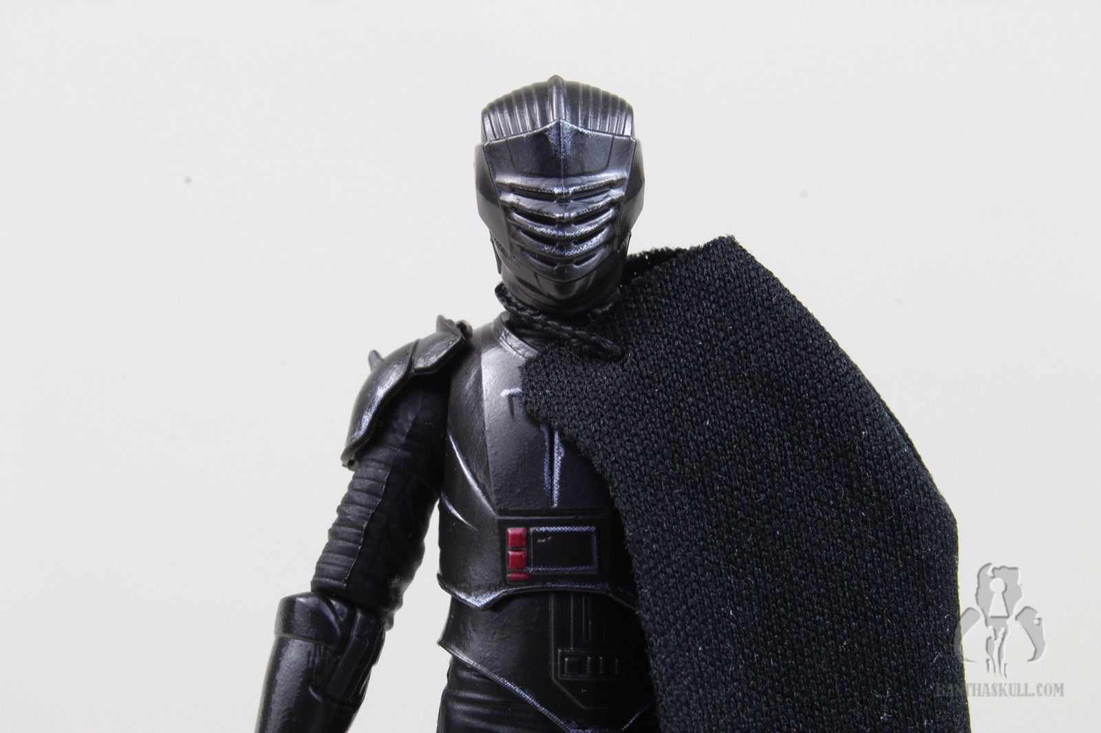 He’s got a nice soft goods cape, with a single line of stitching at the shoulder. At first, I thought this was meant to accommodate the semicircular hilt when stowed on Marrok’s cape, but it’s actually meant to be a one-shoulder cape. It works well - although I may have photographed him with the cape on the wrong shoulder. I haven’t watched Maul yet, so I don’t know if this matters. I don’t even remember him with a cape in Ahoska. Also, I don’t remember why I walked into this room in the first place. Oh yeah, I was doing this review.
