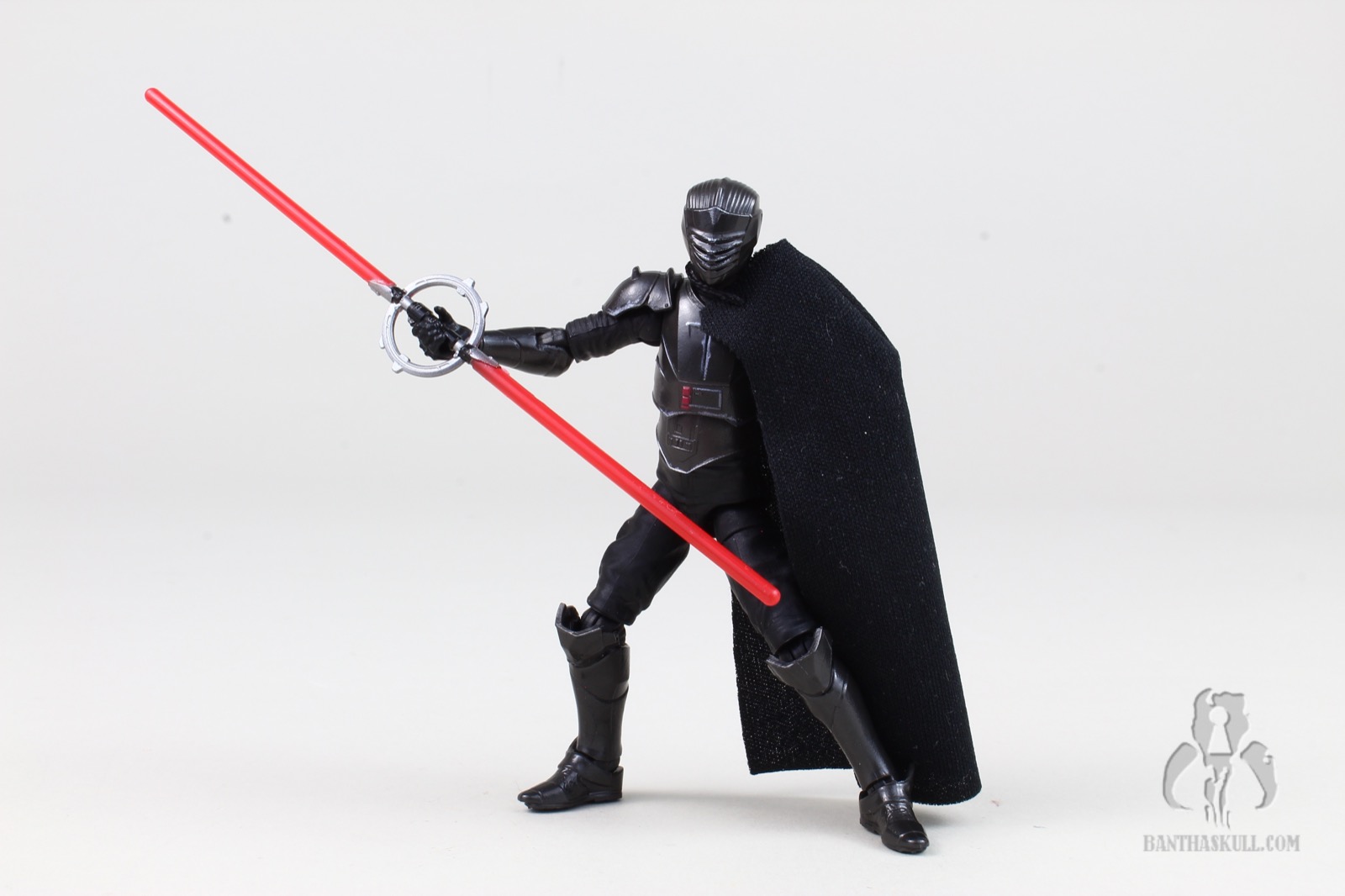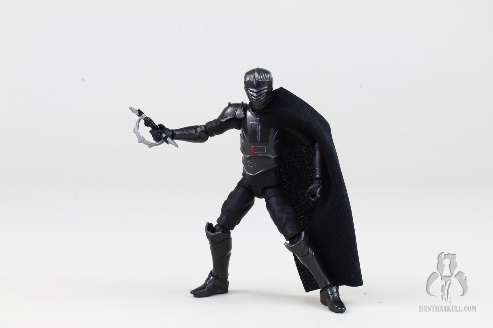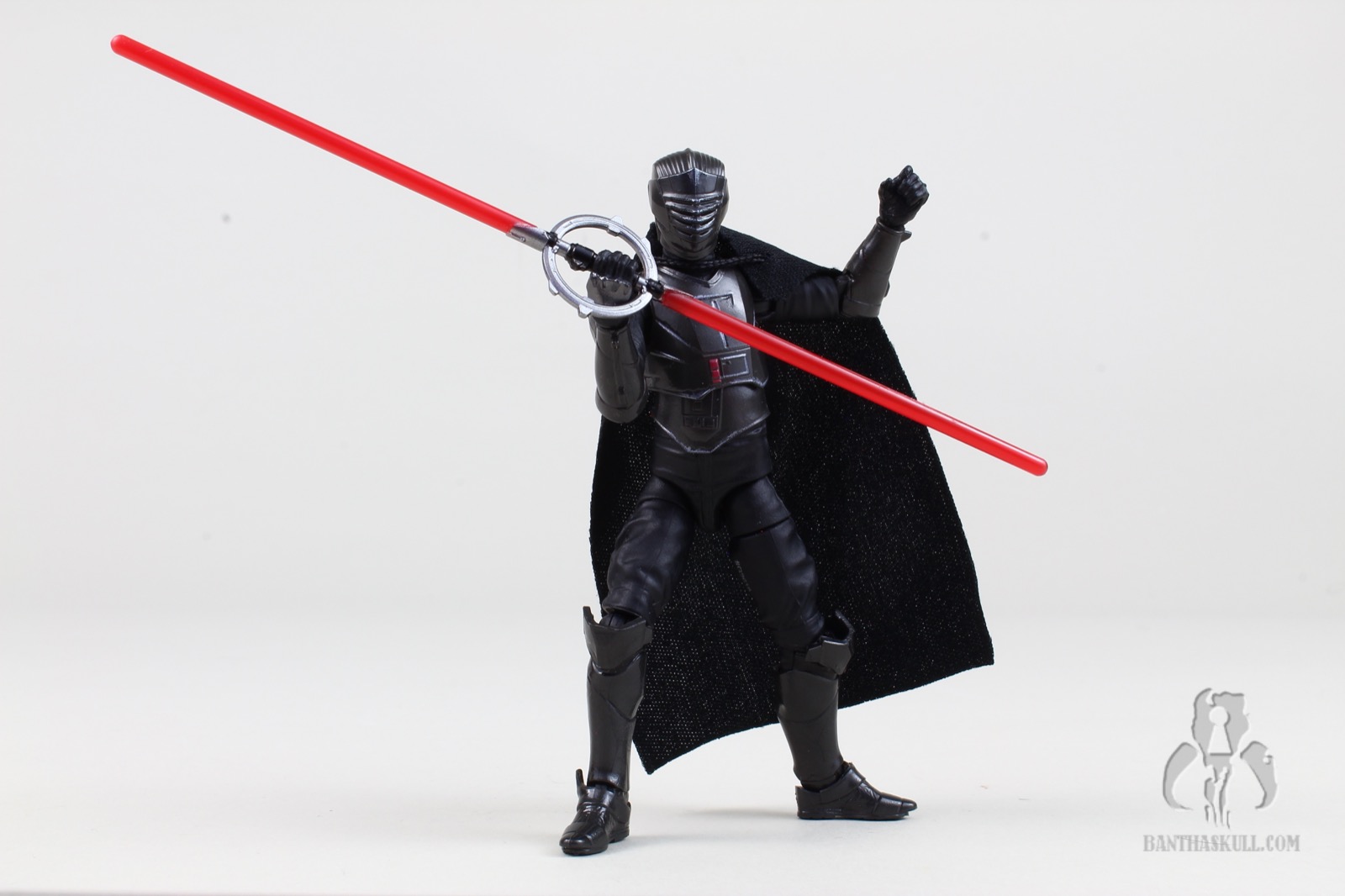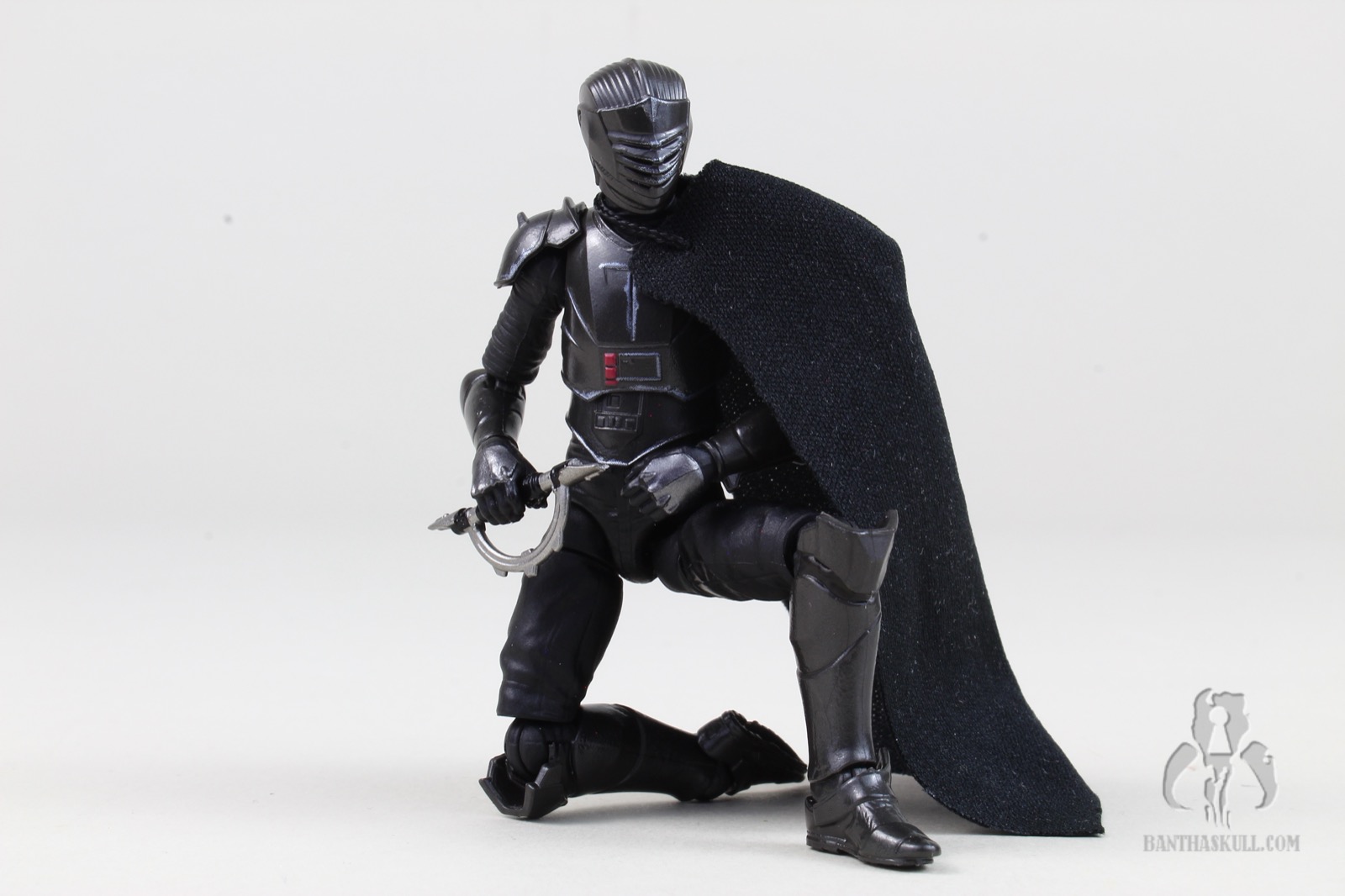 He’s got a nice soft goods cape, with a single line of stitching at the shoulder. At first, I thought this was meant to accommodate the semicircular hilt when stowed on Marrok’s cape, but it’s actually meant to be a one-shoulder cape. It works well - although I may have photographed him with the cape on the wrong shoulder. I haven’t watched Maul yet, so I don’t know if this matters. I don’t even remember him with a cape in Ahoska. Also, I don’t remember why I walked into this room in the first place. Oh yeah, I was doing this review.