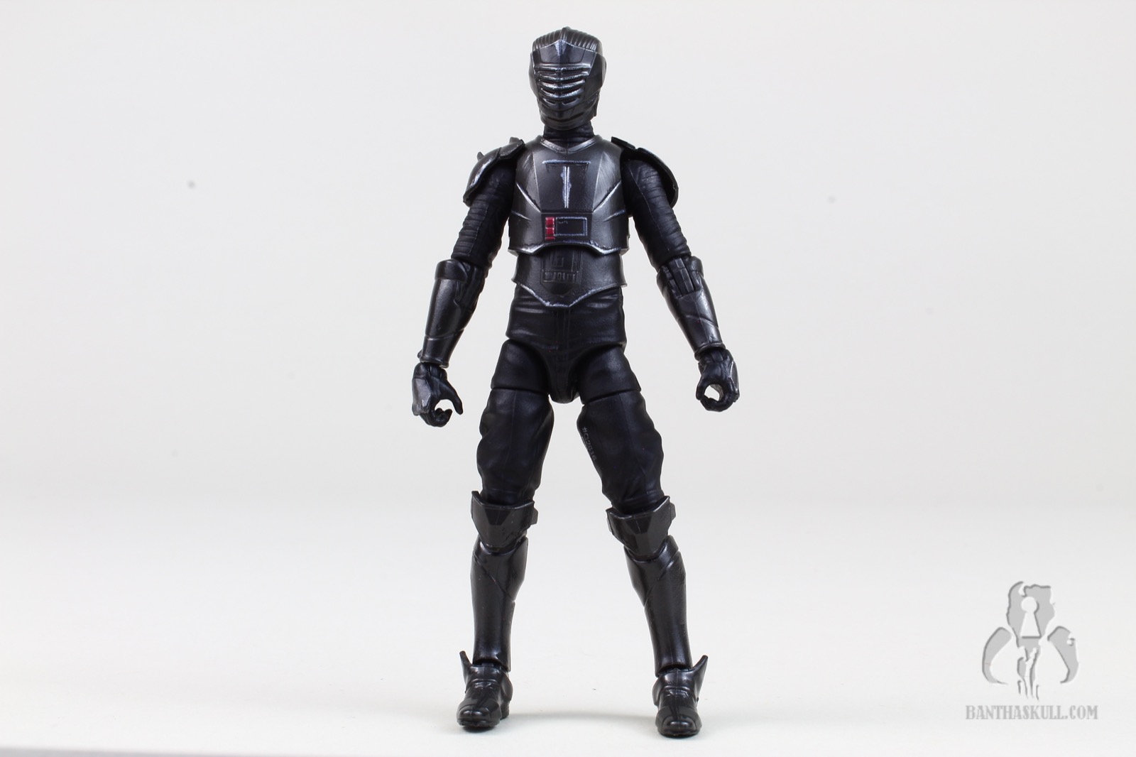 The figure is quite excellent. He looks like knight from Game of Thrones or something. Hasbro dutifully recreated his look very well. The armor is well sculpted, painted in a shiny gray/black, and has some paint apps on the armor that give it a look of depth and wear - and it’s pretty great. The figure, as expected, has full Jedi Level articulation. I would say that I was a bit surprised to find that the joints were noticeably looser on Marrok than on other figures. On the one hand, it makes engaging the joints easier, but on the other hand, sometimes certain poses didn’t hold because the joint would slide. I managed to get the one shot of him running, balanced on one foot (image 17), but it was extremely difficult to get him to stay upright because he kept rolling his ankle. Conversely, his head doesn’t have a lot of range of motion at the neck.