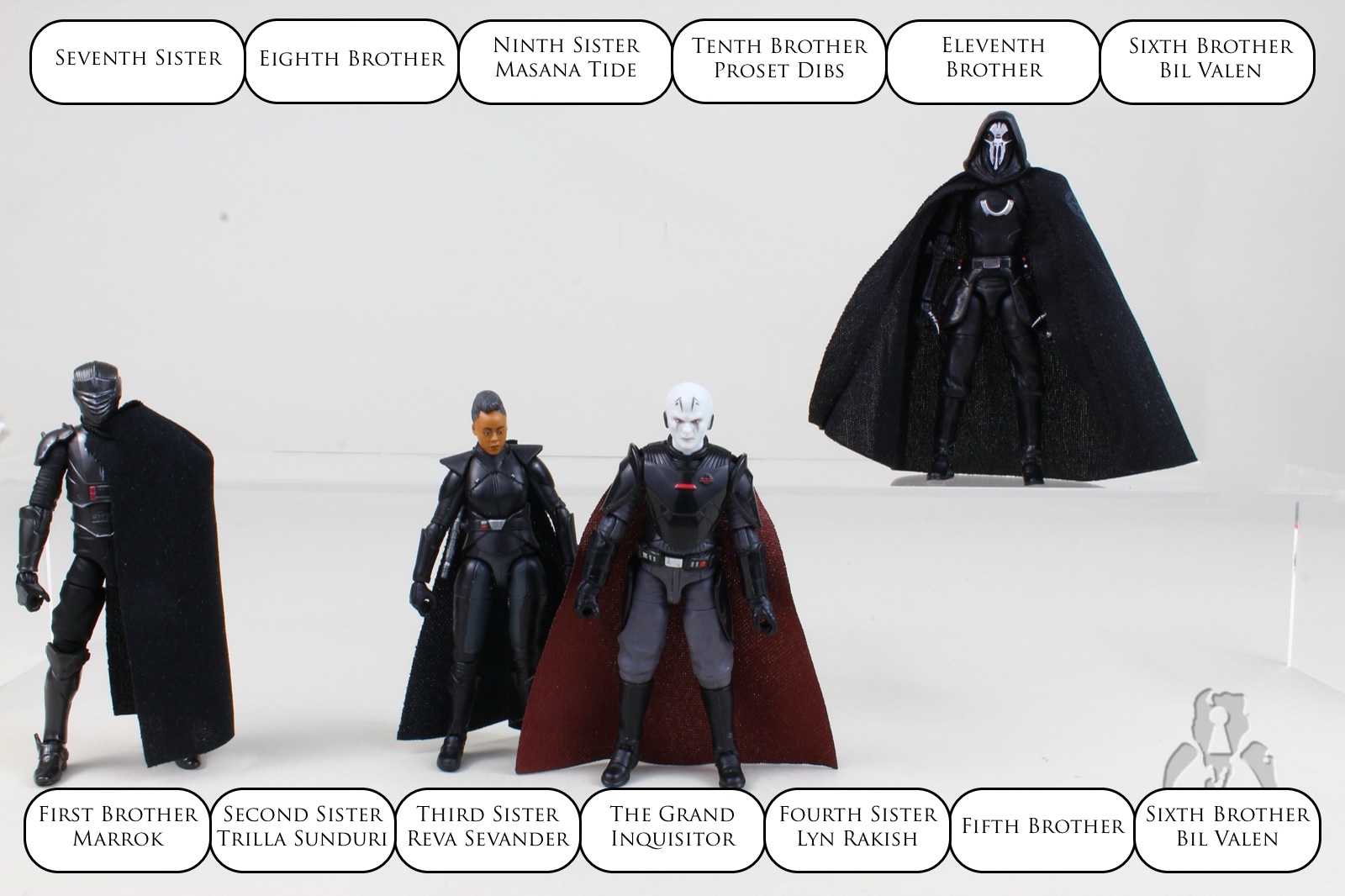 I the idea of the Inquisitors more than I actually like them. But aside from the helicopter lightsabers, they’re not too bad. I particularly enjoyed the ones that were in the Jedi video games, like Second Sister and Ninth Sister, as well as the live action version of Fifth Brother. But for whatever reason, I’ve become somewhat obsessed with completing this crew. They’re nicely numbered, and easily identifiable…mostly. There are a few weird discrepancies and contradictions within canon sources, which is amazing that even today, with all the attention placed on detail and a crew of official “keepers” of the canon within LFL, they still can’t get it right. While I don’t think there’s specifically a set number of members of the Inquisitorius, for whatever reason, I feel that twelve shalt be the number. No more. No less. Twelve shalt be the number of Inquisitors thou shalt count, and the number of the counting shalt be twelve. Thirteen shalt thou not count, nor either count thou eleven, excepting that thou then proceed to twelve. Fourteen is right out. But of course, LFL being what it is, there are problems. There’s apparently mention of a Third Brother, but it came to nothing. There’s no Twelfth person, but there is a Thirteenth Sister, as well as a handful of unnumbered members - such as Barris Offee. Nevertheless, I find myself wanting all of the numbered Inquisitors, and that’s it. And Barriss. That’s all I need. And also the other unnumbered members. But that’s all of them. Except maybe the prospective members who didn’t make the cut. But that’s where I draw the line. So we’ve got the Grand dude, and 3 of 12 numbered (1 through 13, except 12) members. Based on things like Rogue One crew, the skiffs, etc., I can calculate that it would take until the year 2525, if man is still alive, to make the rest of the Inquisitors.